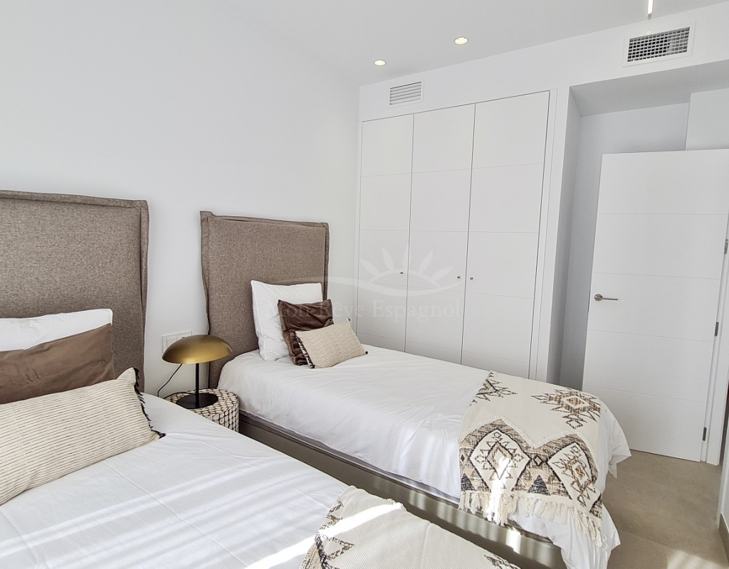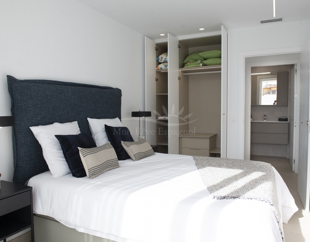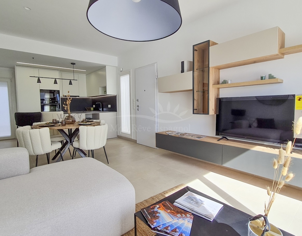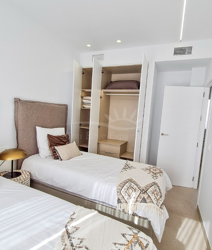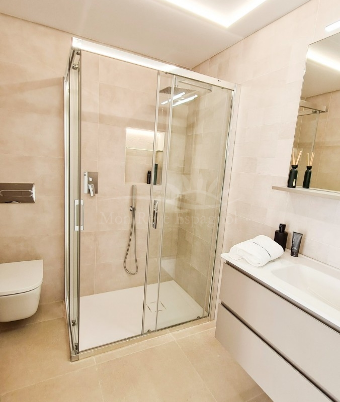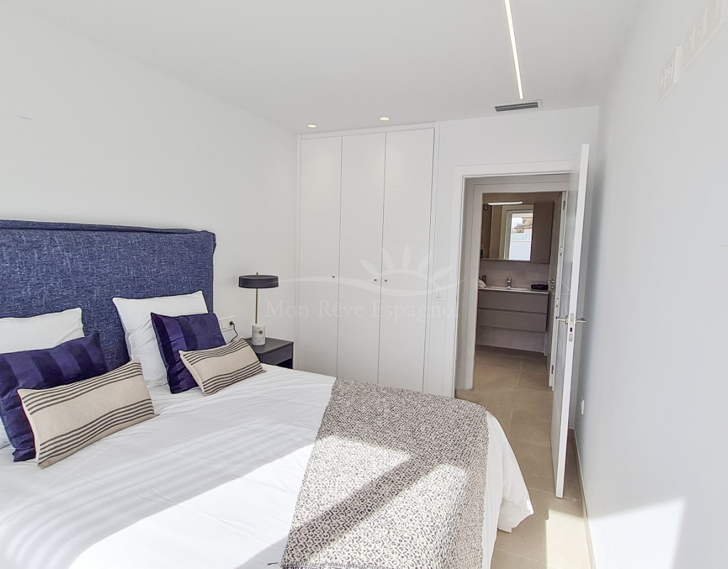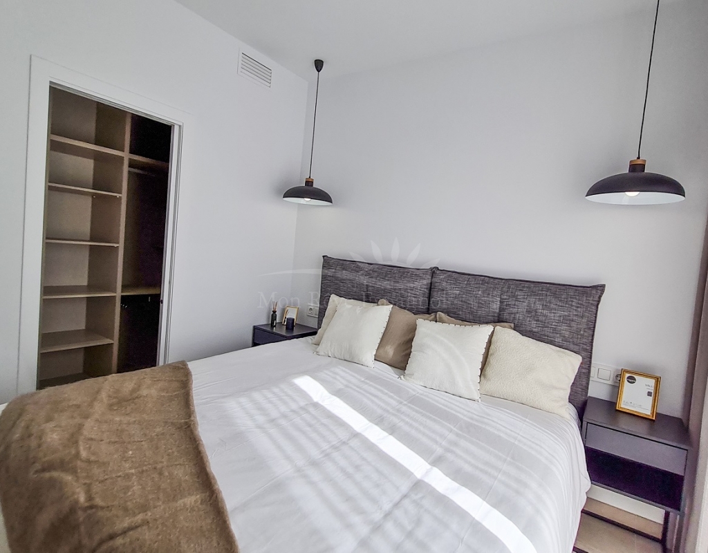 Modern open plan design ground floor consists of living/dining/kitchen with large patio doors leading from the living room to the patio and pool, bedroom again with patio doors to the patio and pool and a bathroom. 1st floor a further 2 bedrooms with access to a large terrace, and a bathroom. Bathrooms come fully fitted, a fully equipped kitchen including (induction hob, extractor fan, oven, microwave, built in fridge, built in dishwasher, washing machine), Bedrooms come with built in wardrobes with LED lighting with the master having a walk in wardrobe, patio, and private pool, and off road parking.