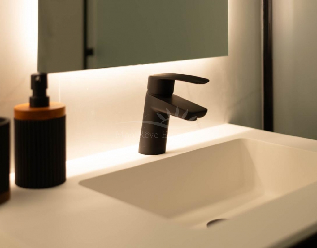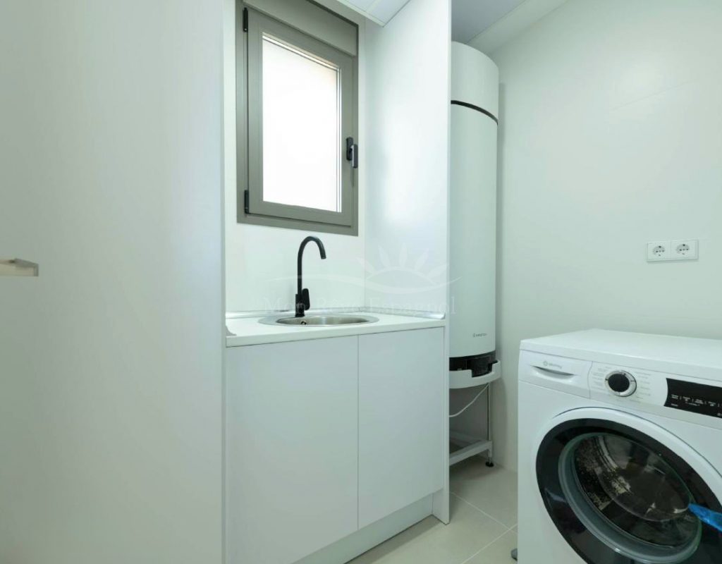 Each villa is set on a plot of 800m2 with private pool, off street parking and solarium. These family villas are set on one level with a large open plan lounge/dining area with kitchen, two double bedrooms, family bathroom, WC, utility room and master bedroom with en suite bathroom and dressing room.