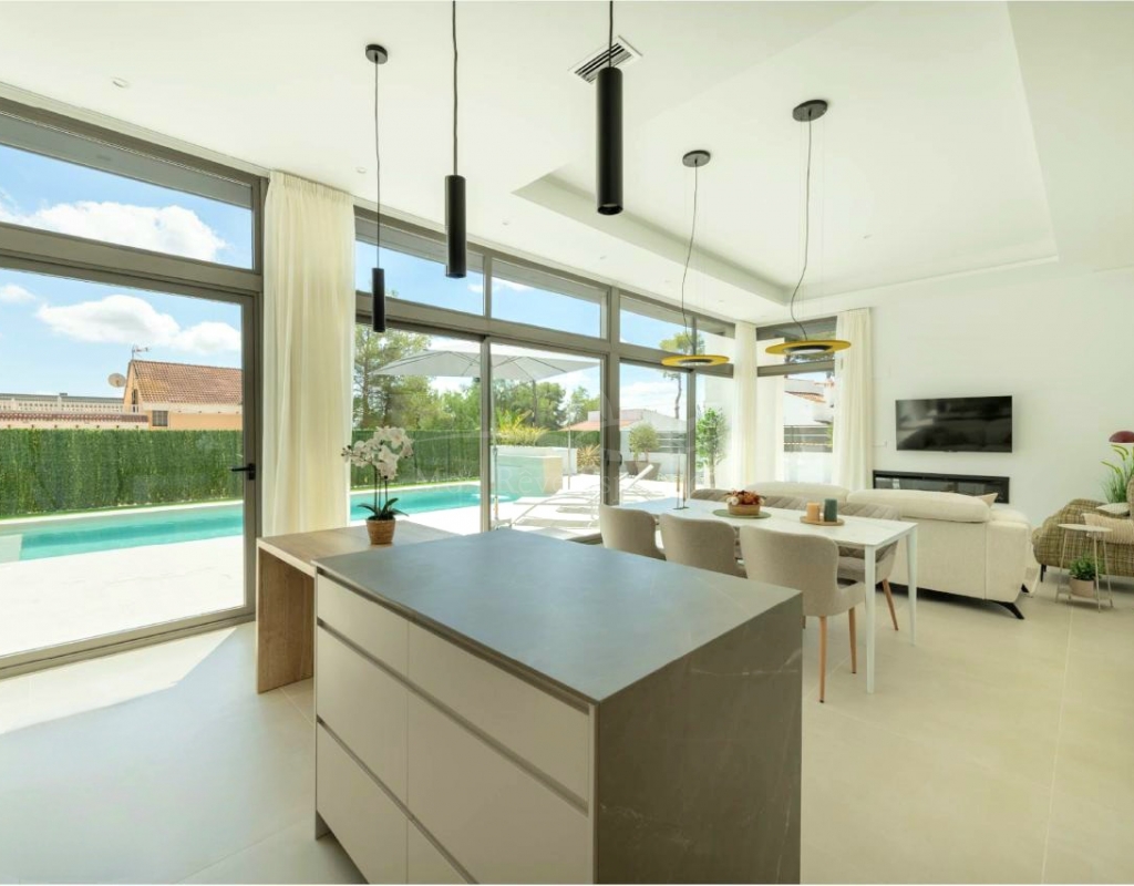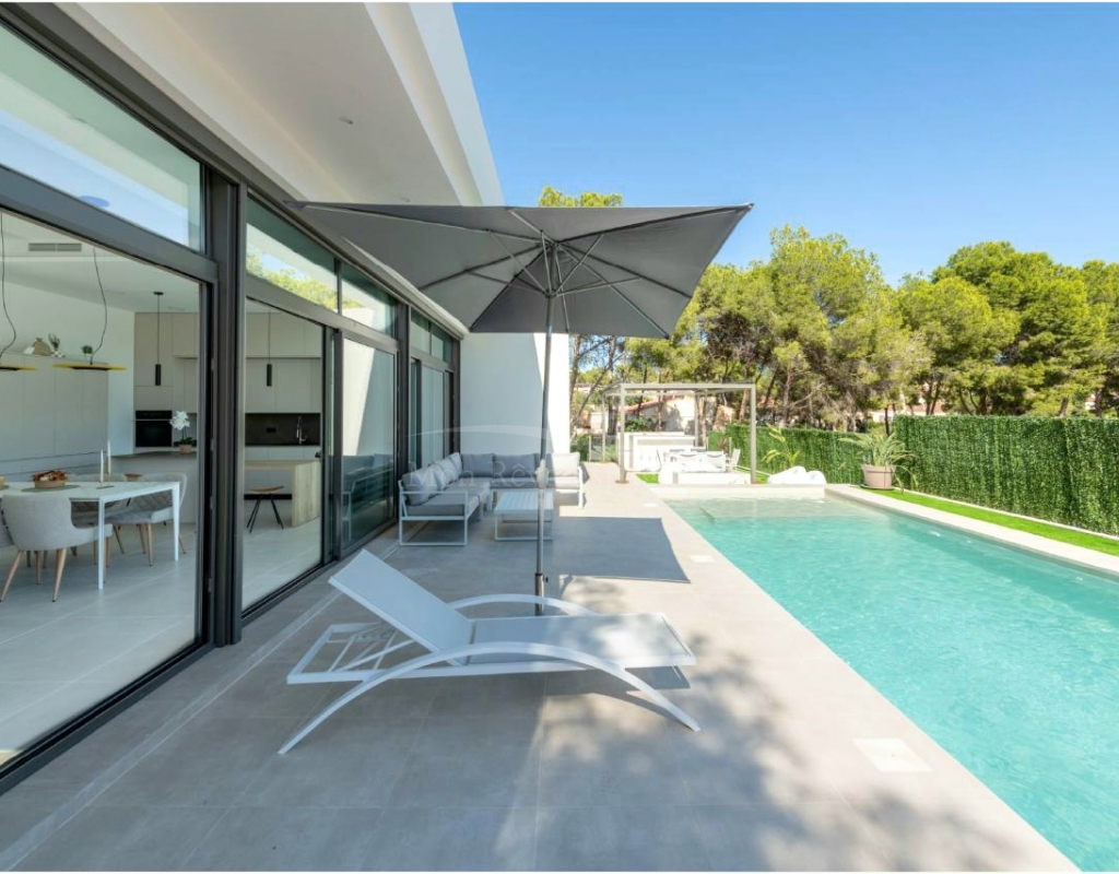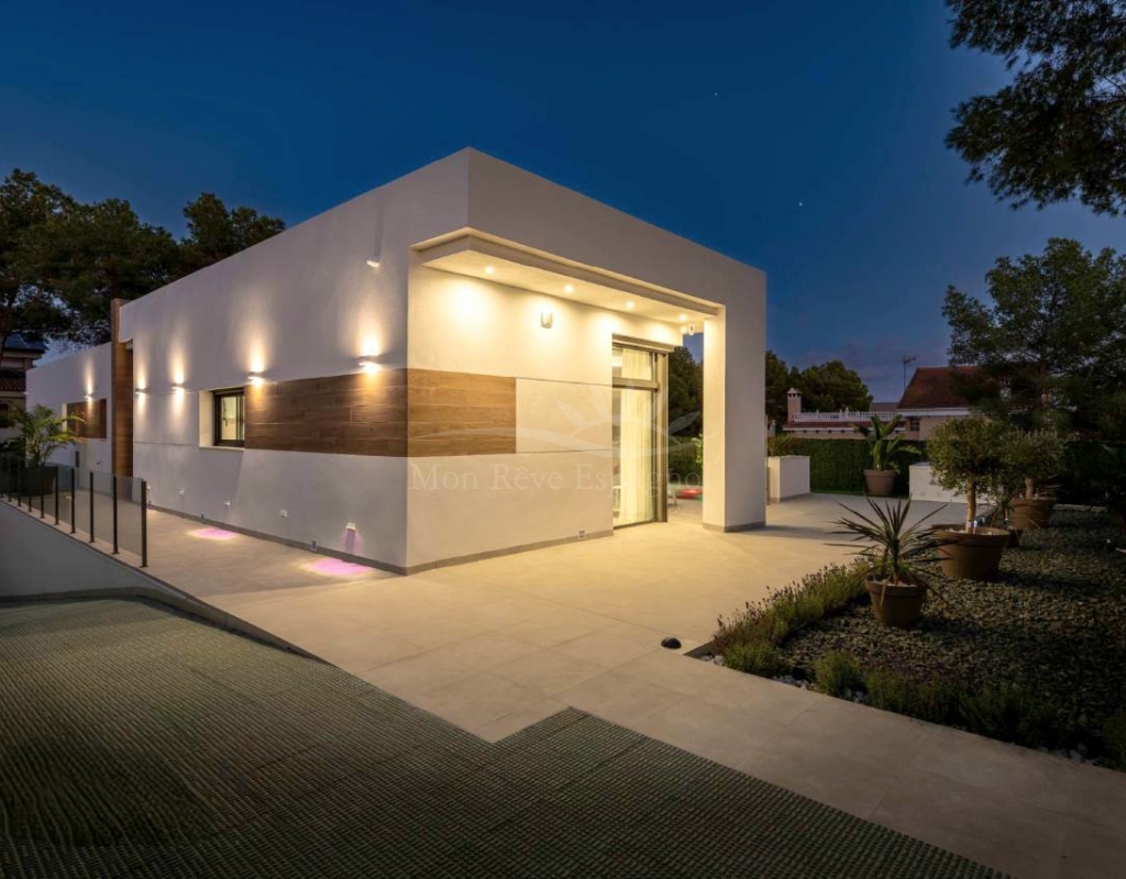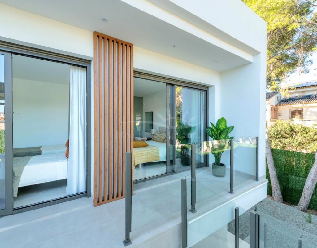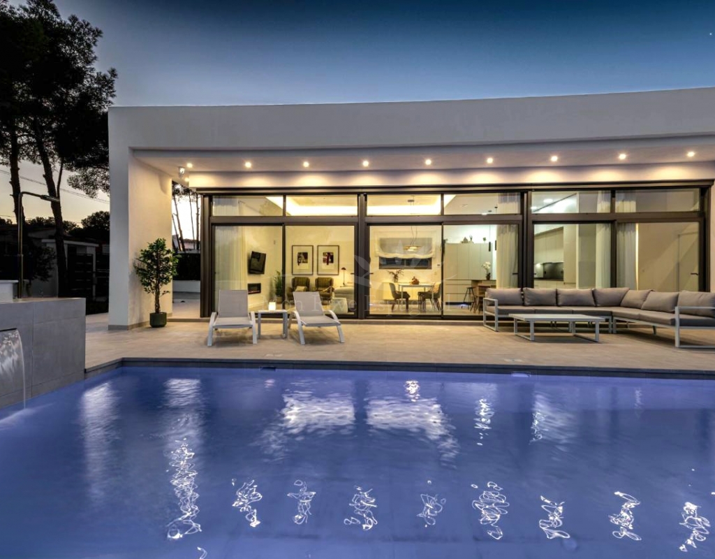 Fantastic opportunity to purchase a stunning new build detached villa on a development of just 5 properties located within walking distance to a range of amenities in the pretty leafy village of Pinar de Campoverde. Just 10km from the famous Blue Flag beaches of Torre de la Horadada and Mil Palmeras and less than 10 minutes drive from the bustling Spanish town of Pilar de la Horadada.