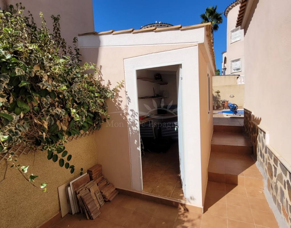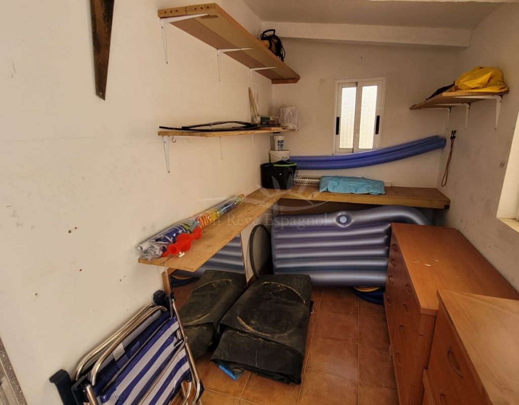 The plot has ample space to park 2-3 cars, a barbecue area, a storage room and a private pool. This property also has access to a communal pool.