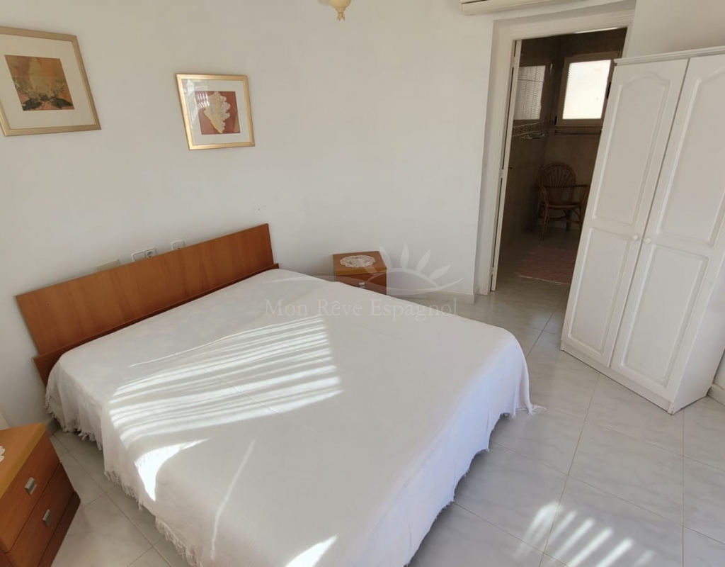 Ground floor: Living/dining room, a separate kitchen with access to a glazed terrace and pool area, two bedrooms with fitted wardrobes and a bathroom. All rooms have air conditioning.