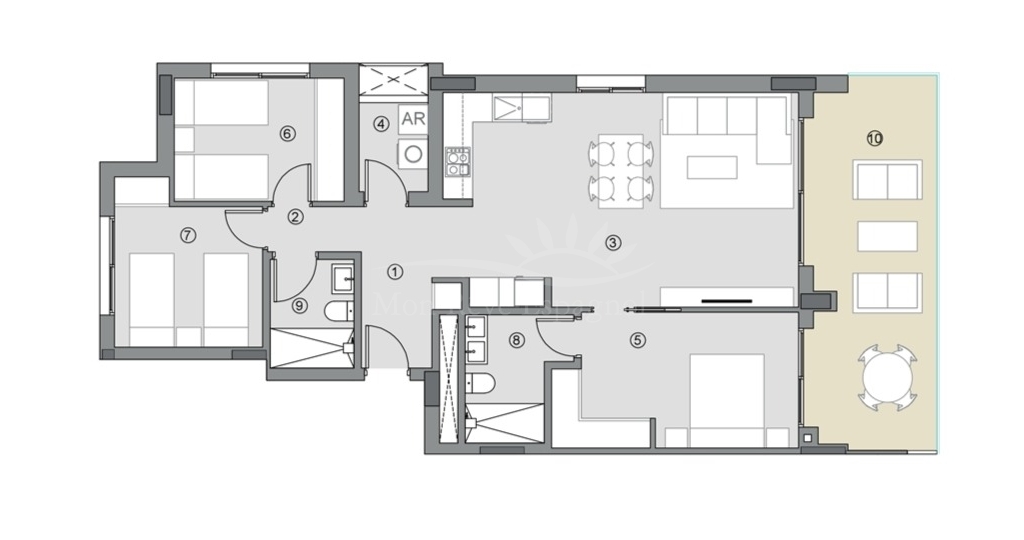 220 apartments, with availability of magnificent penthouses with sea views, ground floor apartments with a splendid garden, typologies of 2 and 3 bedrooms, with different layouts. Garage space and storage room.