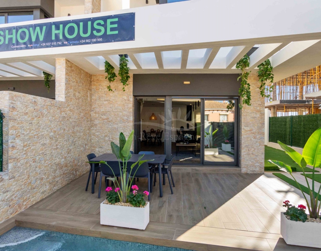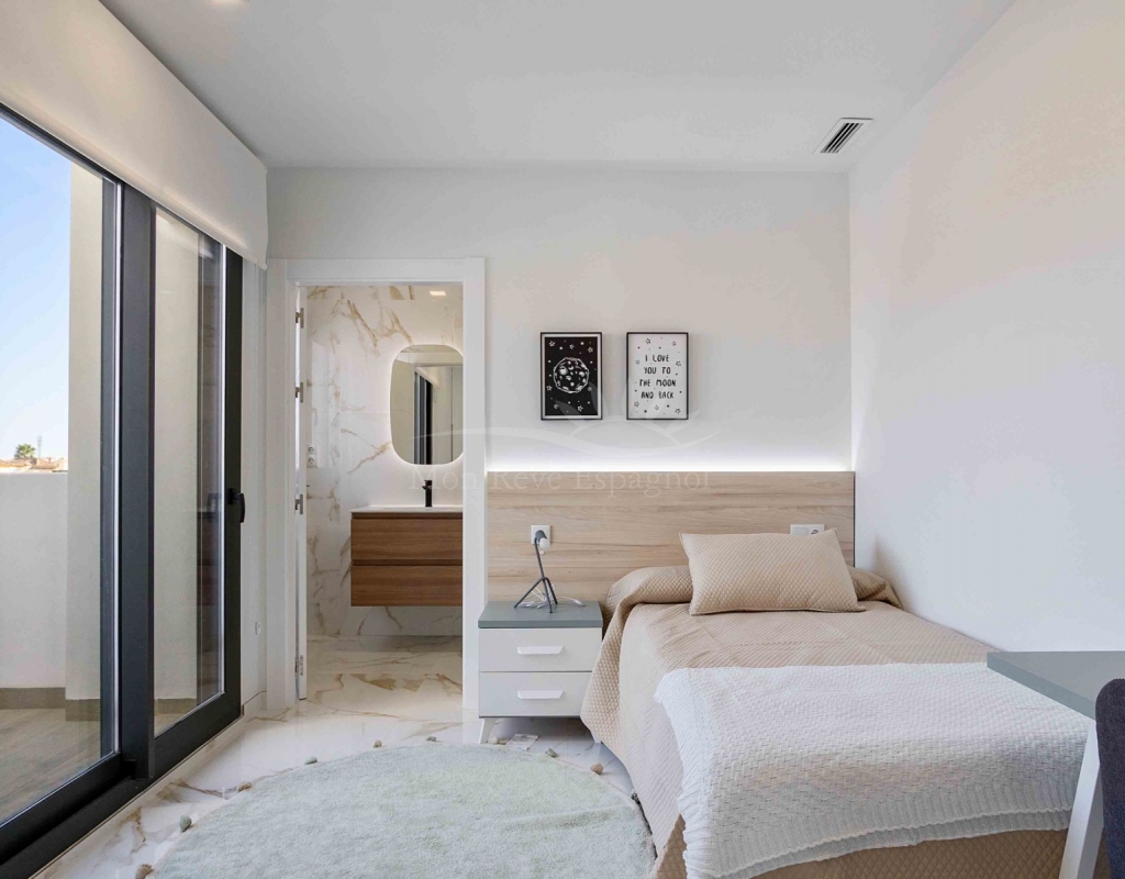 Essence La Herrada is an elegant residential complex combining detached villas and semi-detached houses, all designed with 3 bedrooms, located in the quiet and privileged area of La Herrada, in Los Montesinos (Alicante). This enclave offers a residential environment that combines quality of life, comfort, and access to essential services on the Costa Blanca.