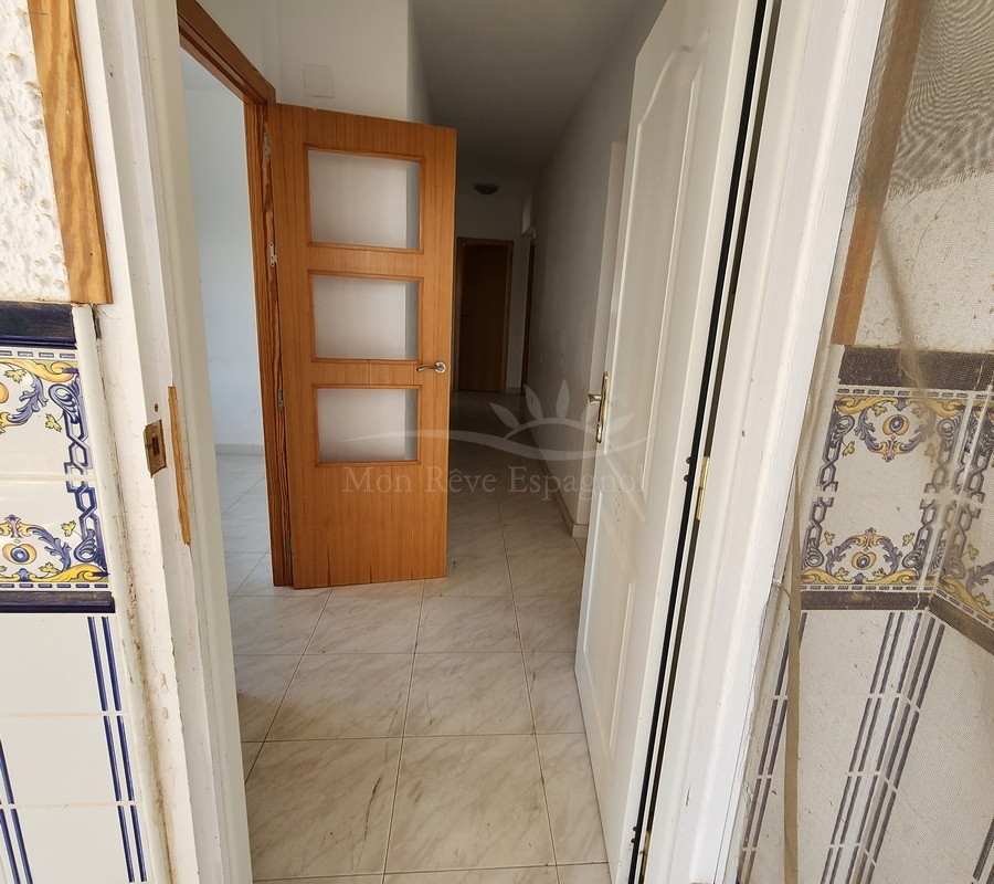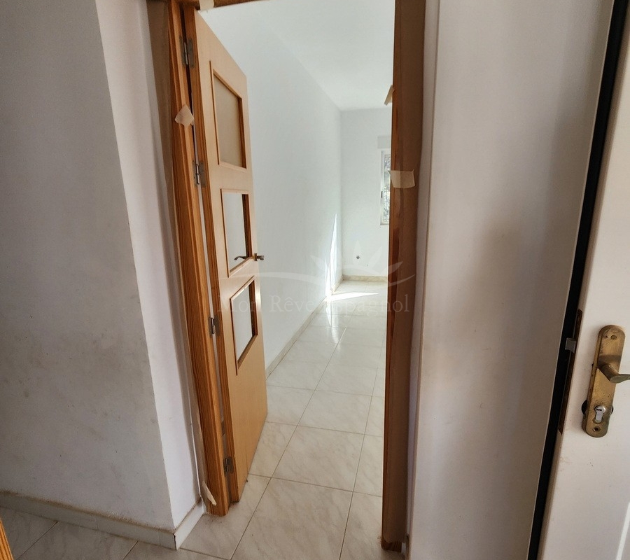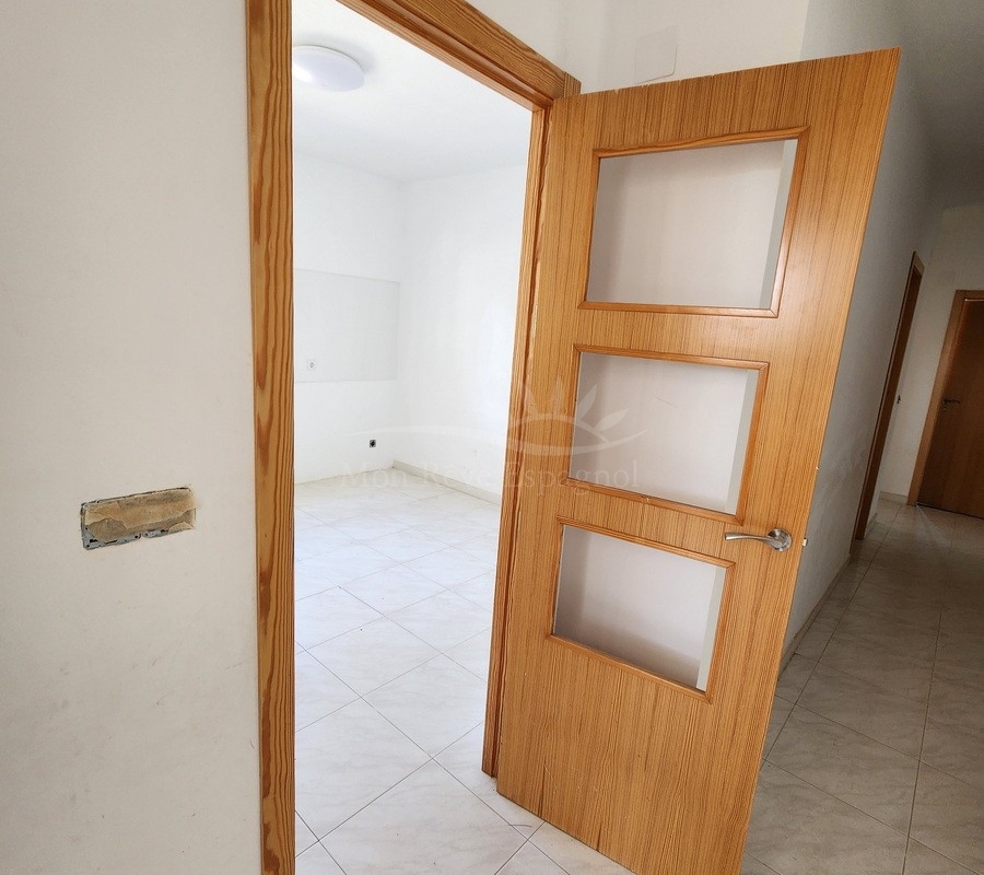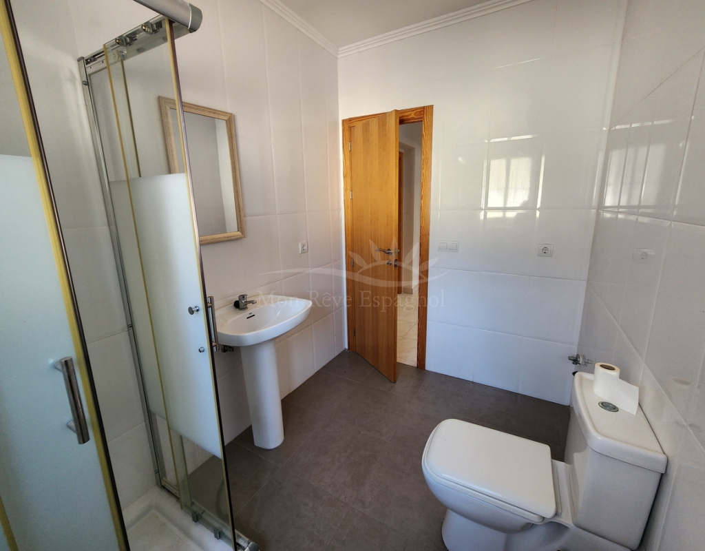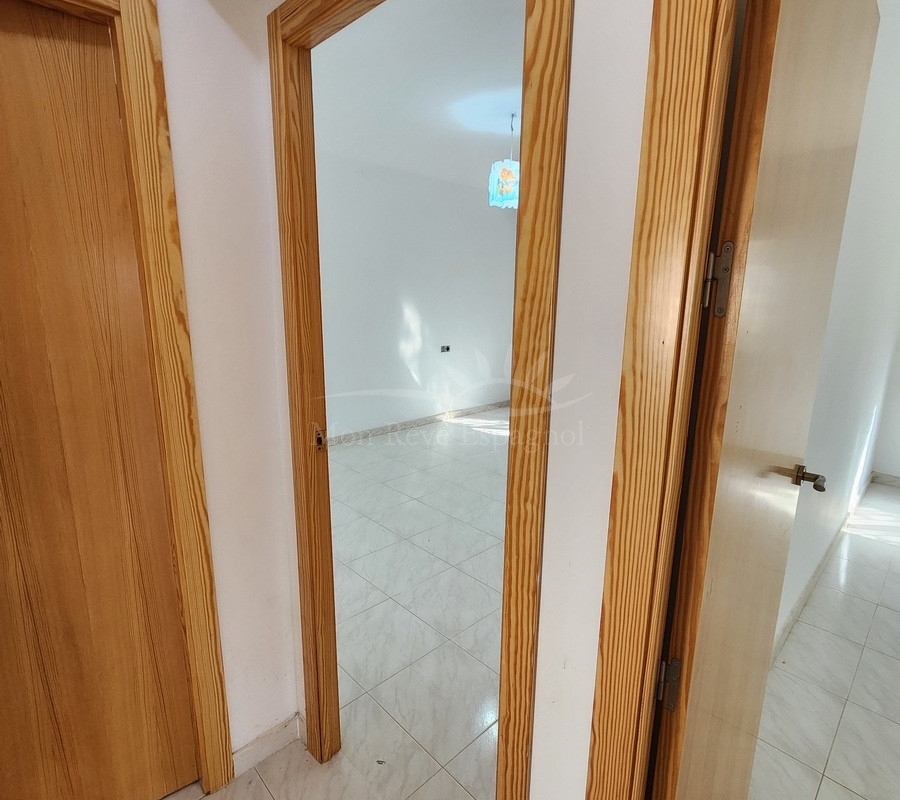 Through the main entrance, you also access the spacious living-dining room with a fireplace, the three bedrooms, and the two bathrooms.