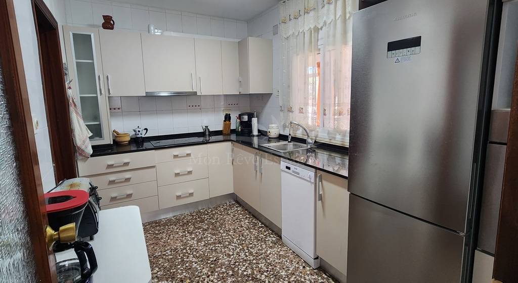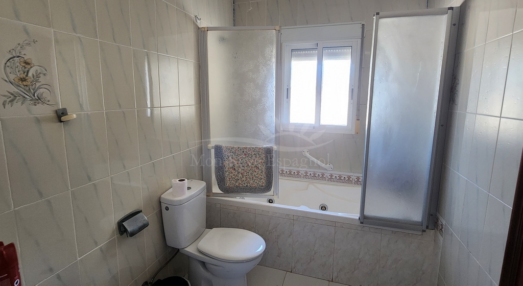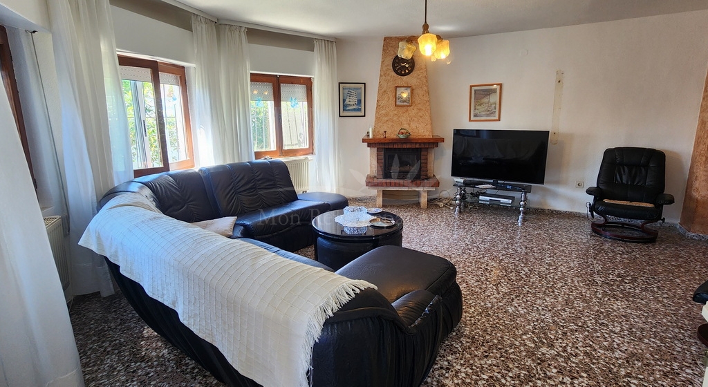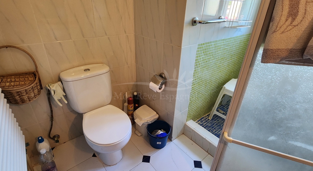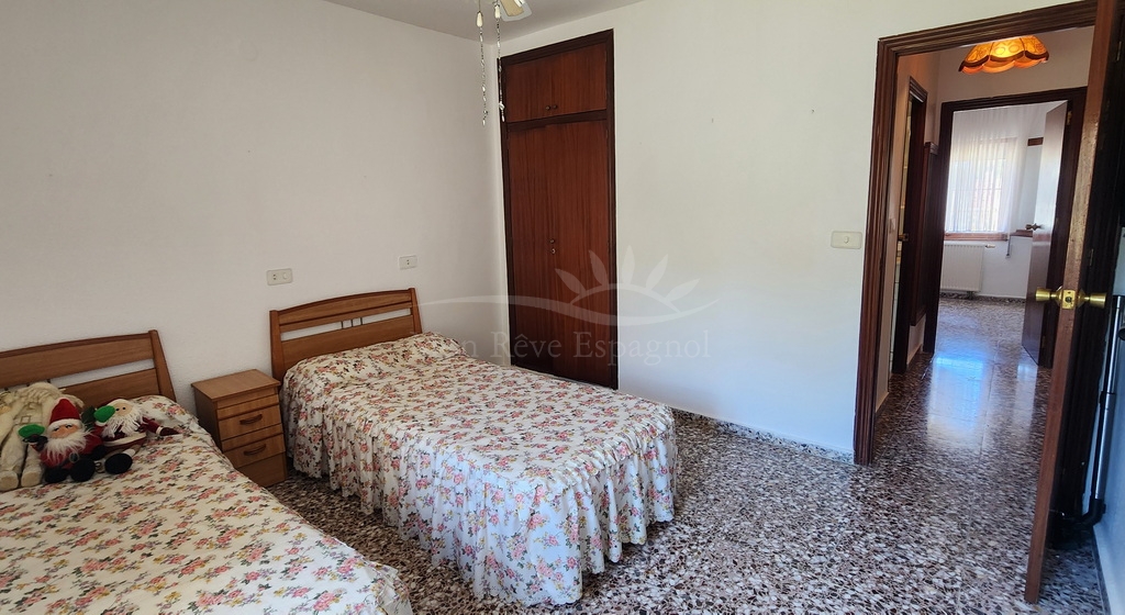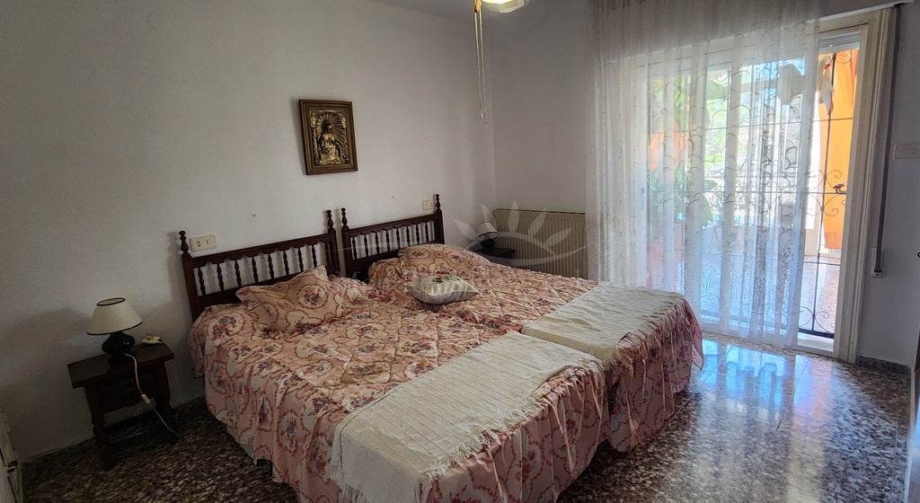 The house has a large glazed terrace, living room with fireplace, dining room, kitchen, three bedrooms and two bathrooms. From the glazed terrace you also have access to an open terrace and the pool.