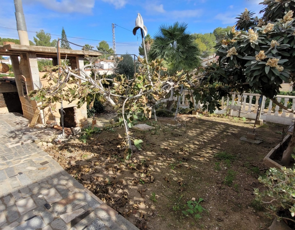 The plot has a private pool, a variety of fruit trees, plants and space to enlarge the house.