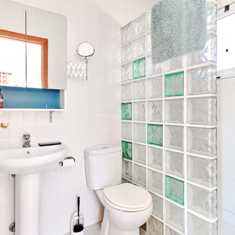 Stairs from the living room lead to the first floor where the spacious and bright master bedroom is located. There is an en-suite bathroom, a wardrobe, and French doors leading to a roof terrace with beautiful views of the surrounding countryside.