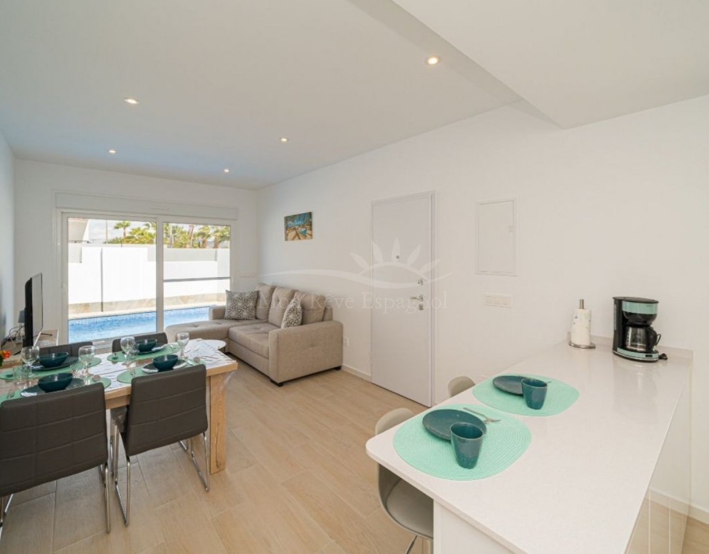 The villa is sold fully furnished and equipped: indoor and outdoor furniture, appliances: ceramic hob, refrigerator, microwave, oven, freezer, dishwasher, washing machine, iron, hairdryer, etc., air conditioning/central heating, mosquito nets, etc.