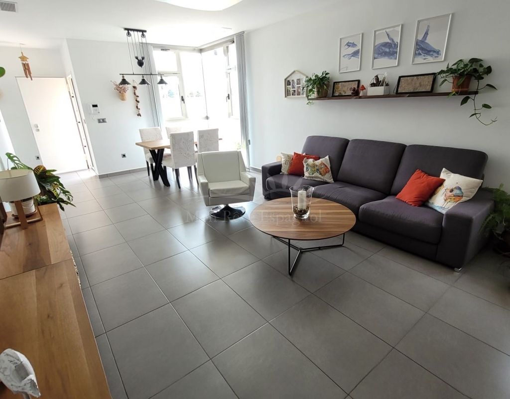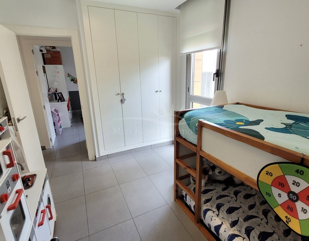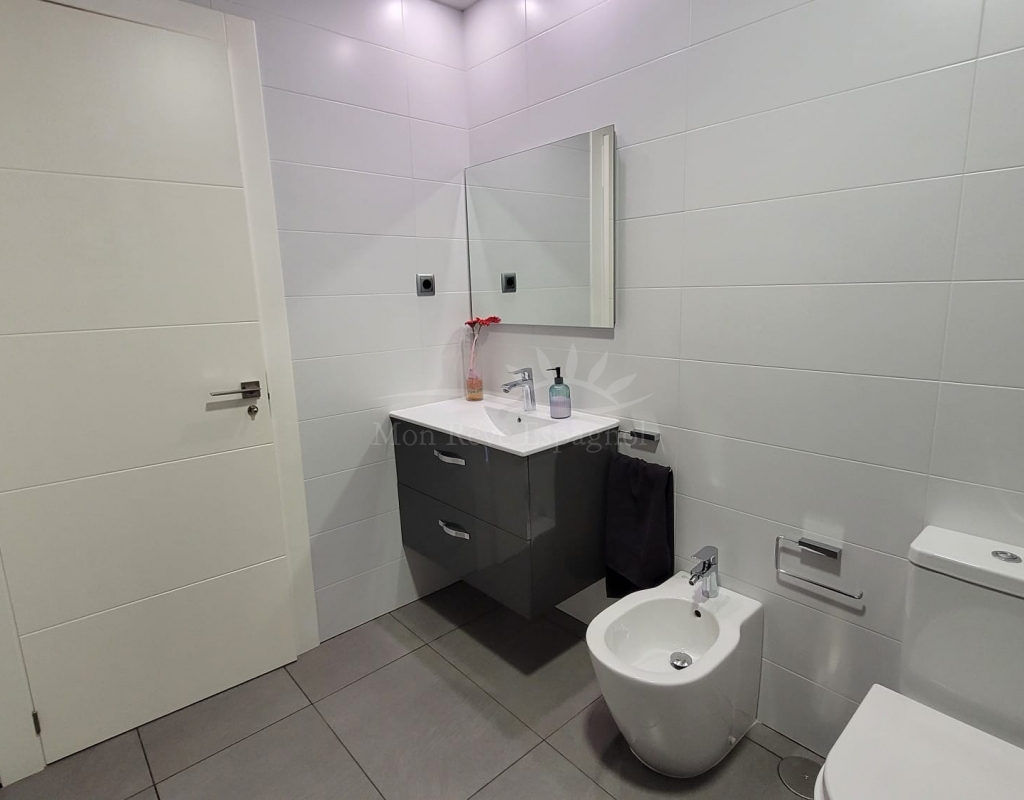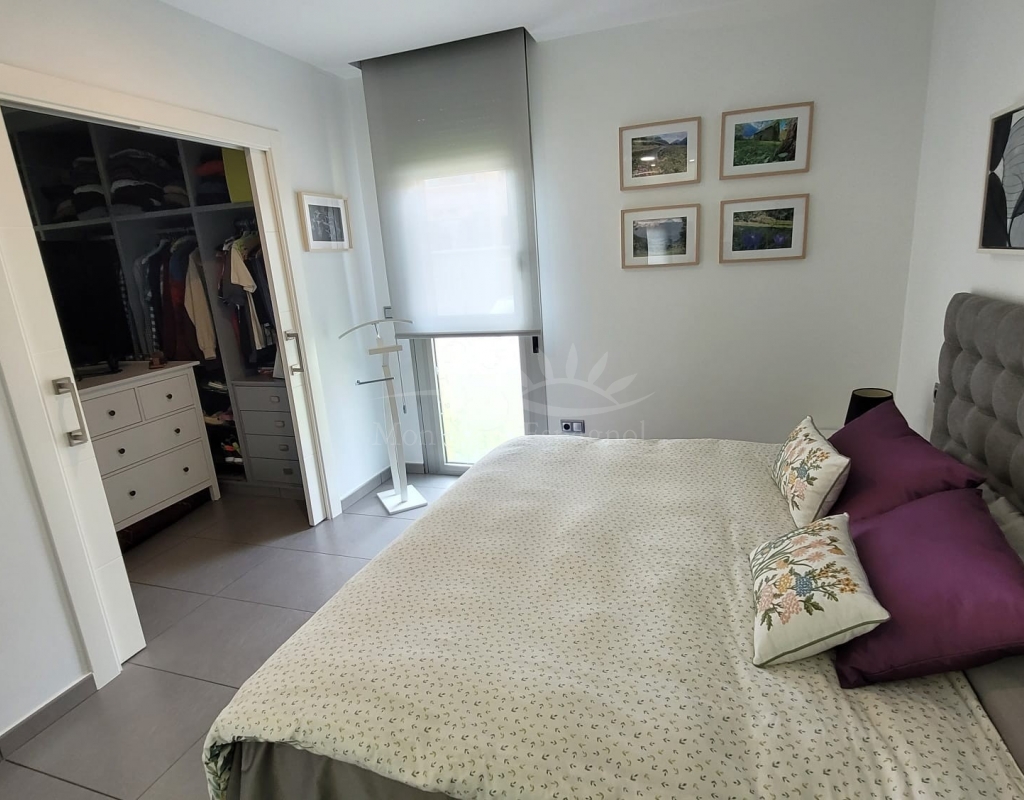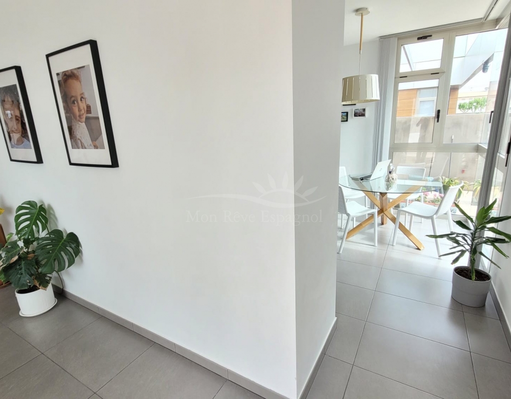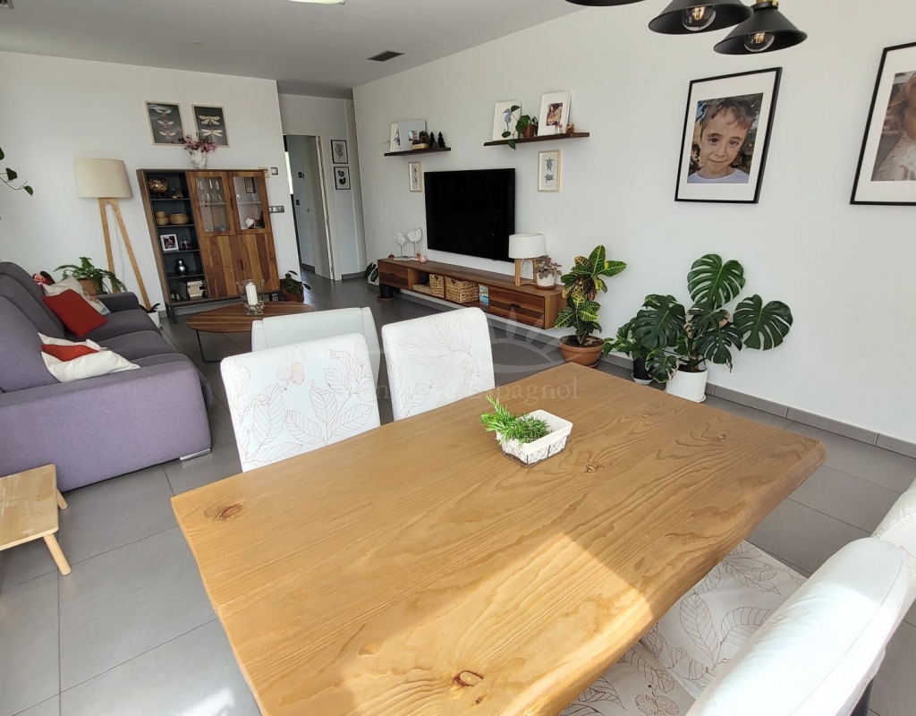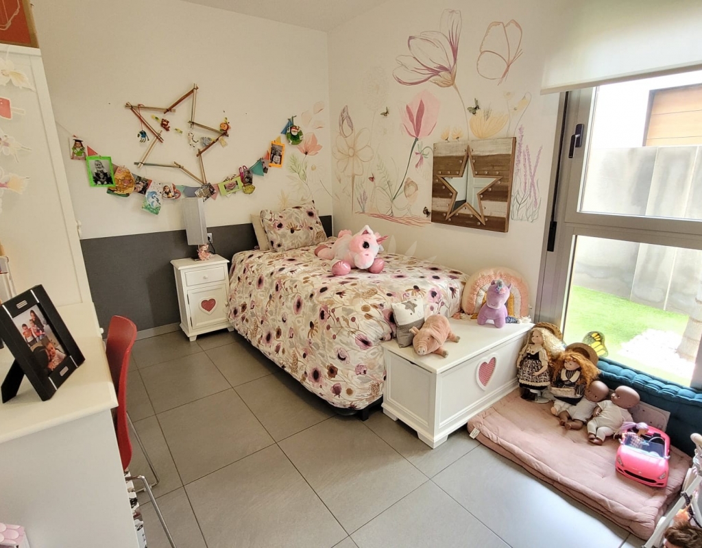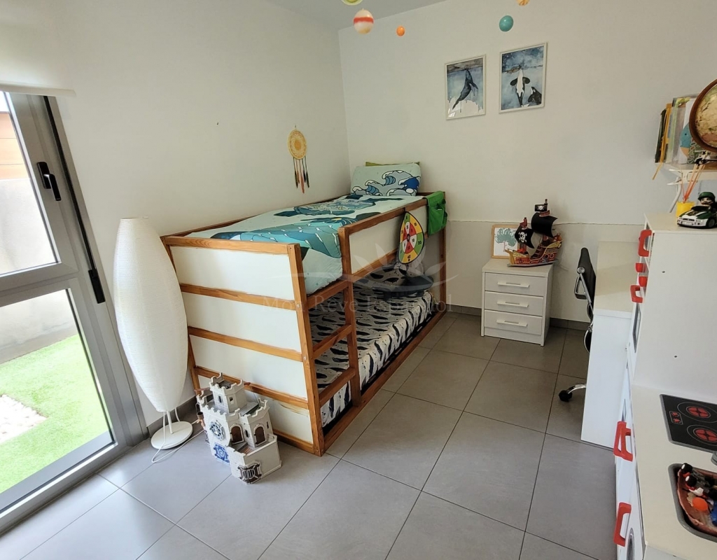 It consists of an entrance hall, a spacious living-dining room, 3 double bedrooms with built-in wardrobes (one of them with a dressing room and a private bathroom ), one other bathroom, a fully equipped kitchen with a dining area, and a laundry room with access to the garden.