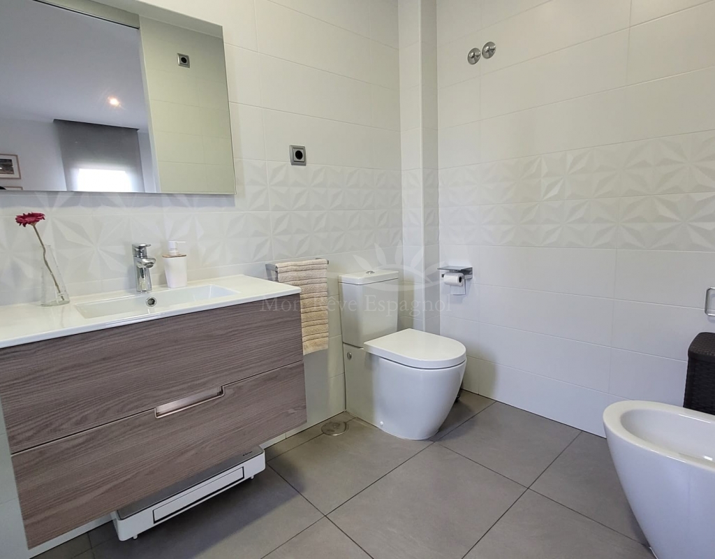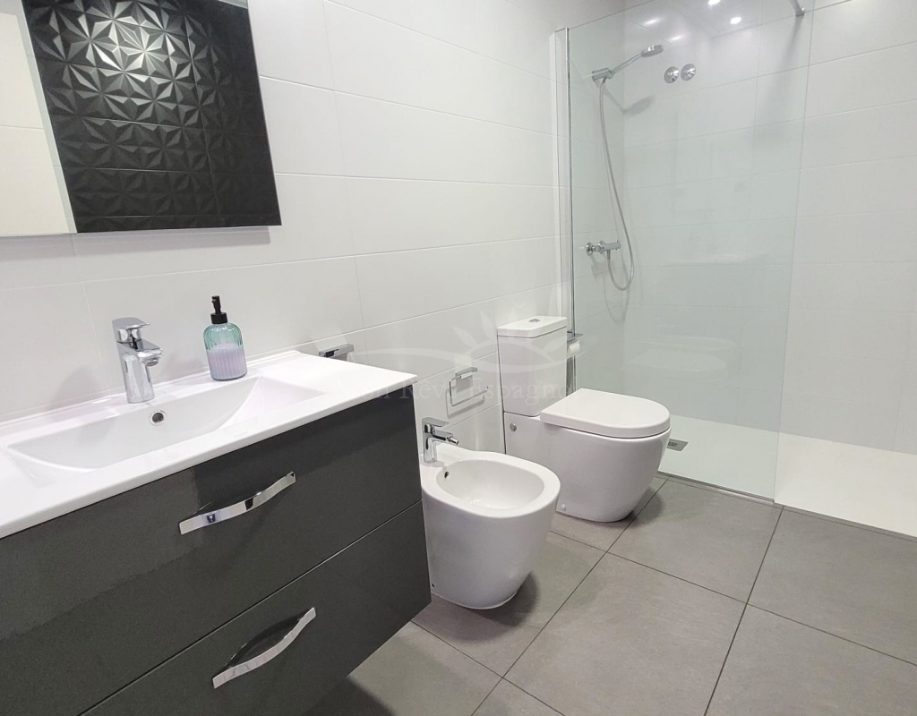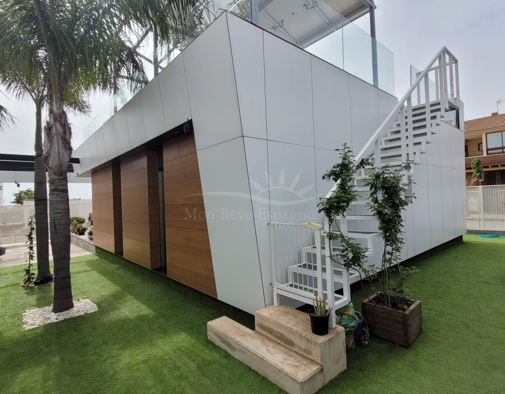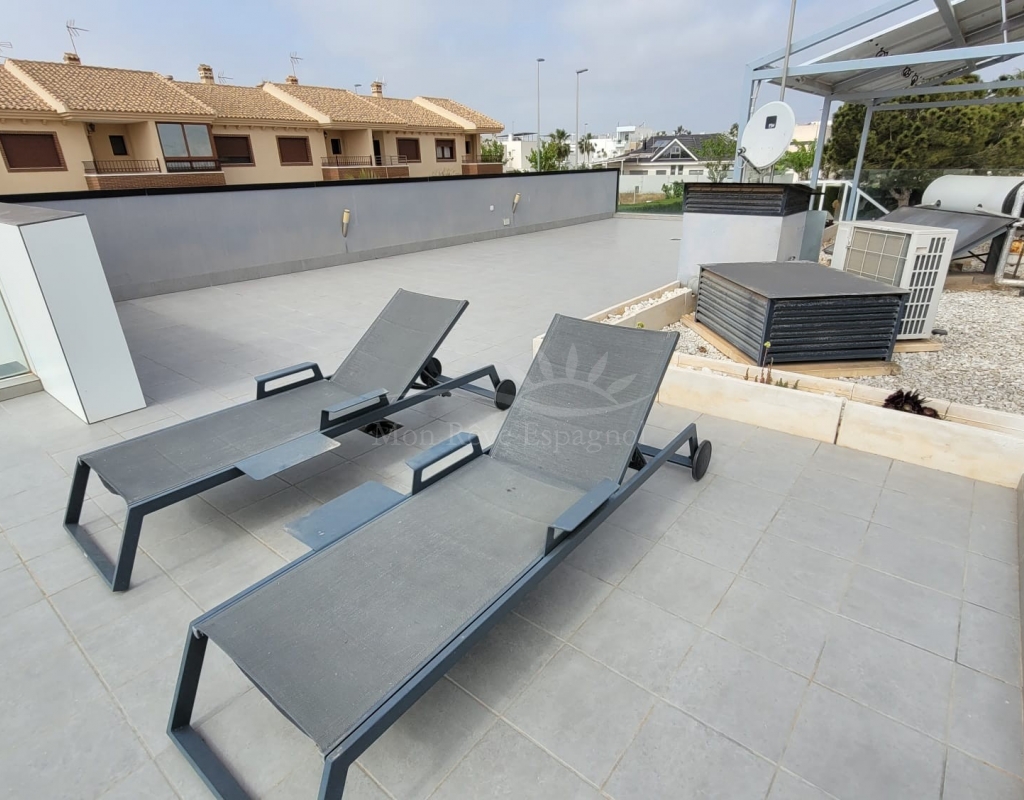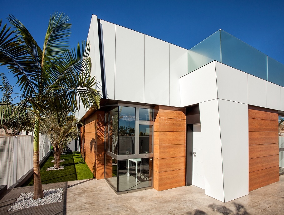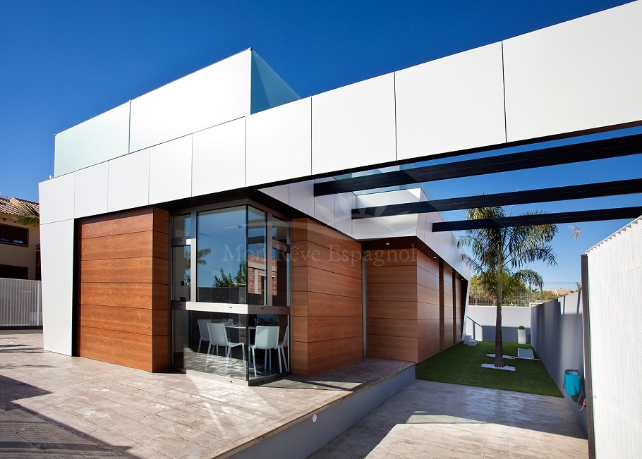 Modern three-bedroom villa with a high energy rating, located in Pilar de la Horadada, one of the best areas of the Costa Blanca.