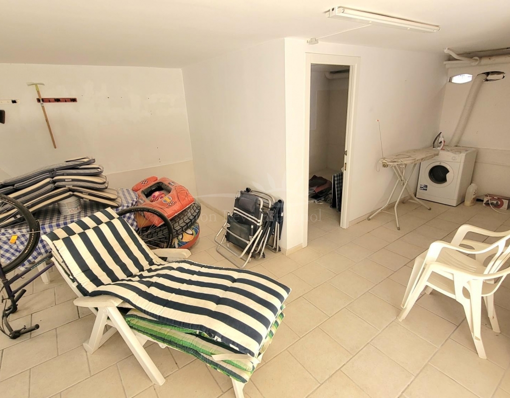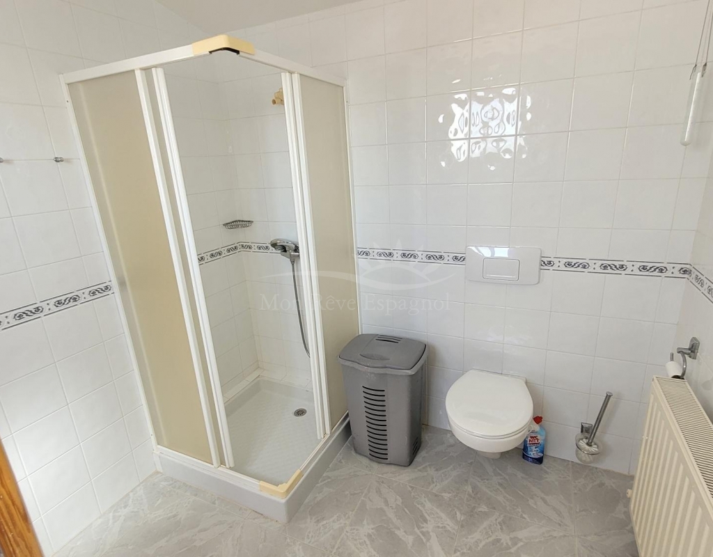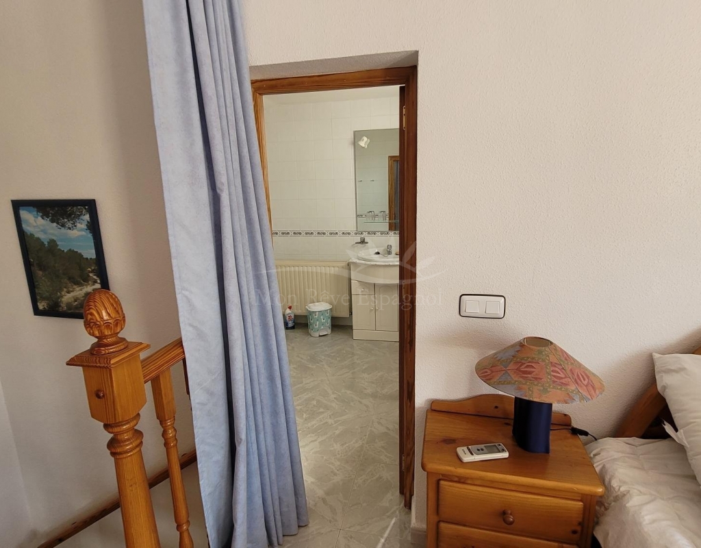 Upstairs, there is a second bedroom with a shower room and a terrace offering unobstructed sea views.