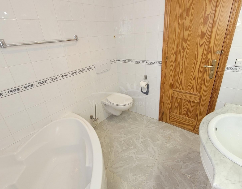 The house is sold furnished and is equipped with air conditioning, gas central heating, covered patios, and mosquito nets.