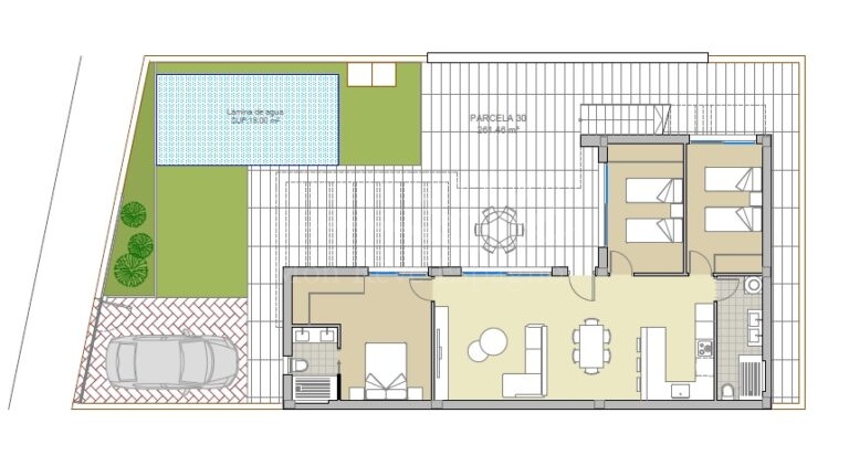 New single-story 3-bedroom villas with private pools located in Los Montesinos, close to shops and restaurants. Price: €399,900