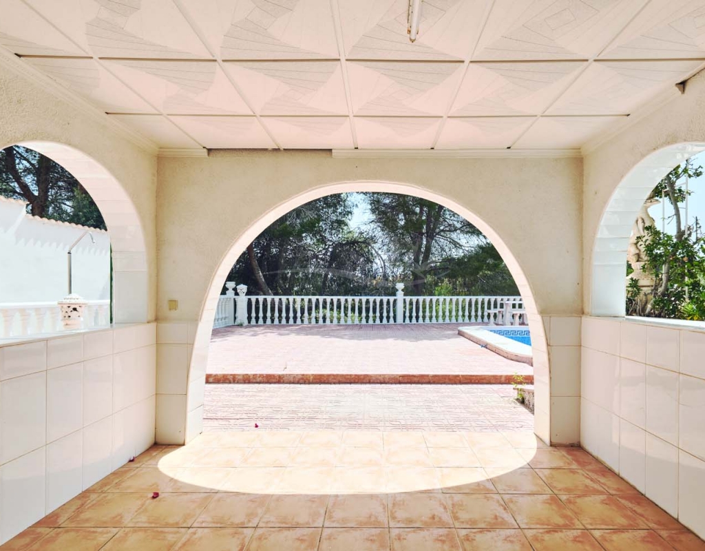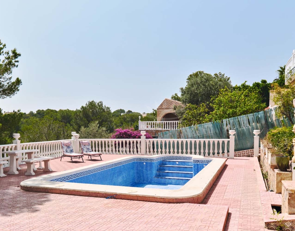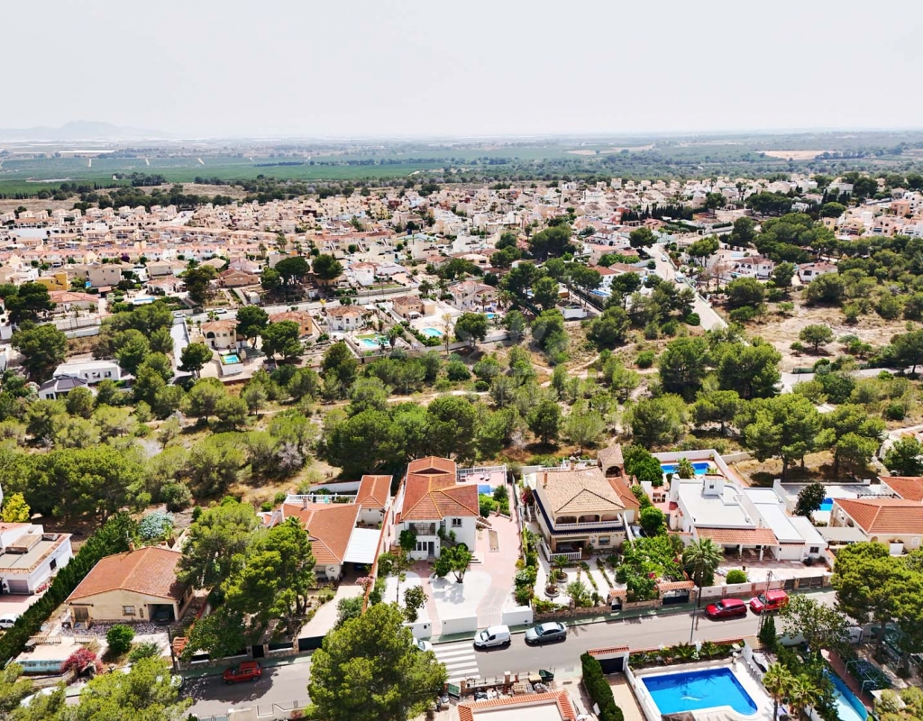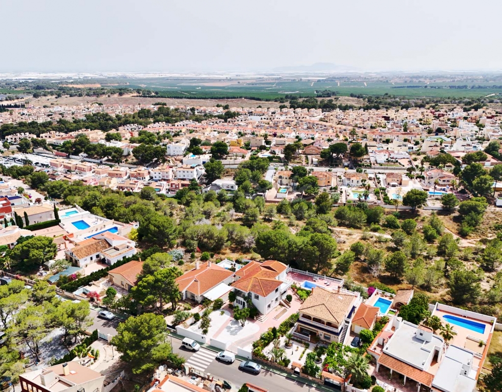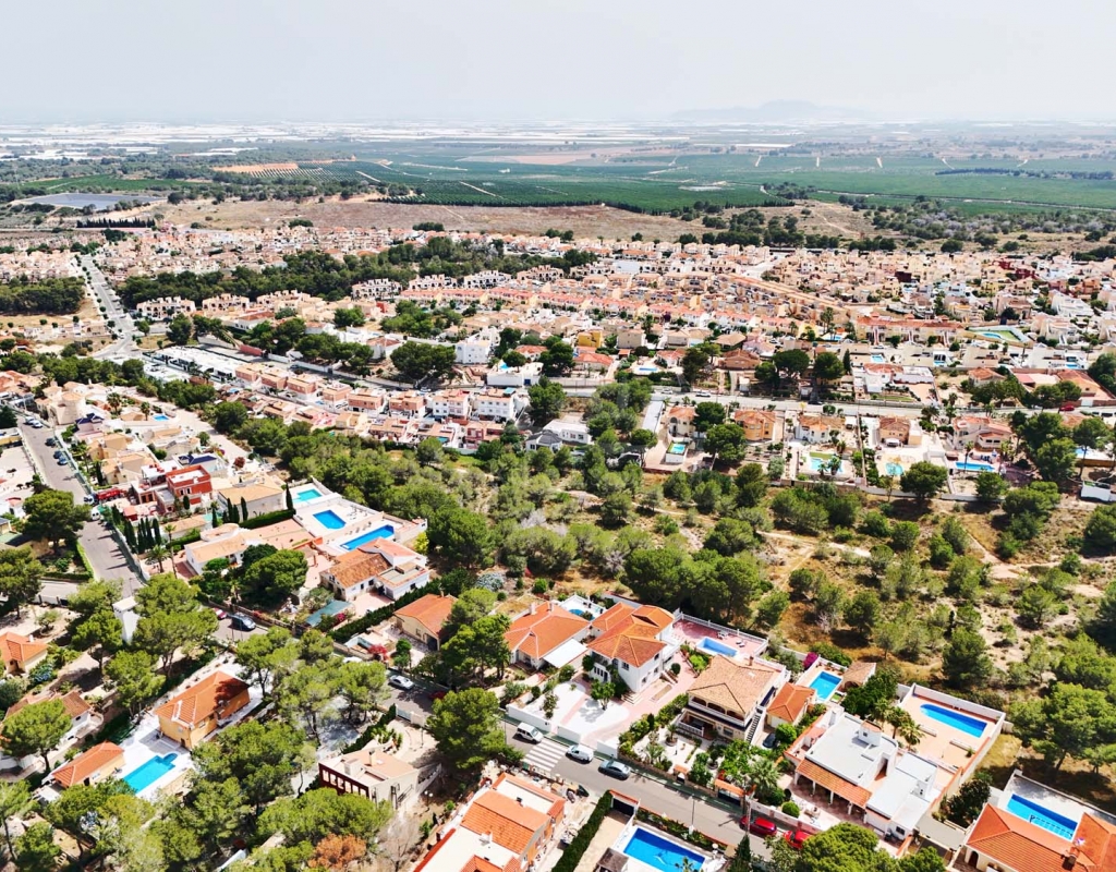 Fantastic opportunity to purchase a large family villa on a 992m2 plot with private swimming pool, off street parking and overlooking a green zone for stunning countryside views in the sought after village of Pinar de Campoverde, located within walking distance to all amenities this spacious villa is only 10km from the popular blue flag beaches of Mil Palmeras and Torre de la Horadada.