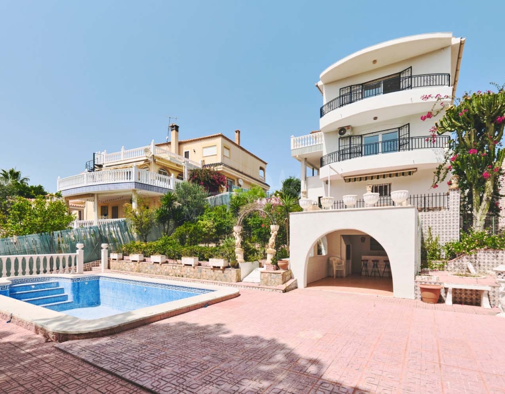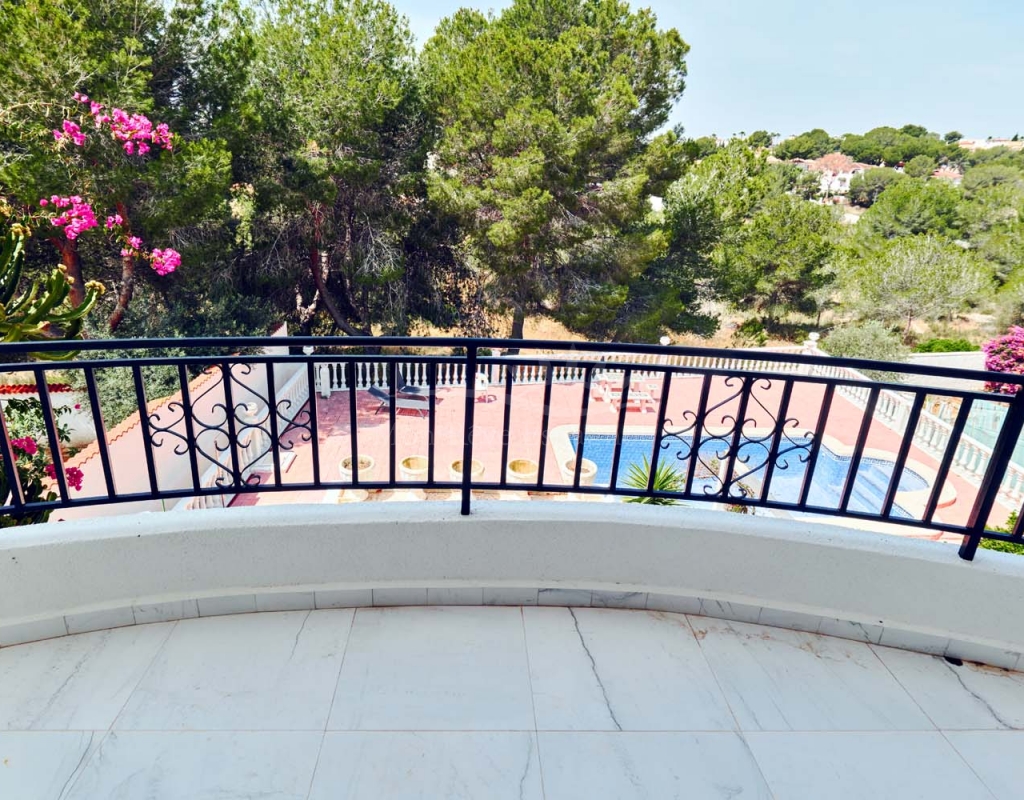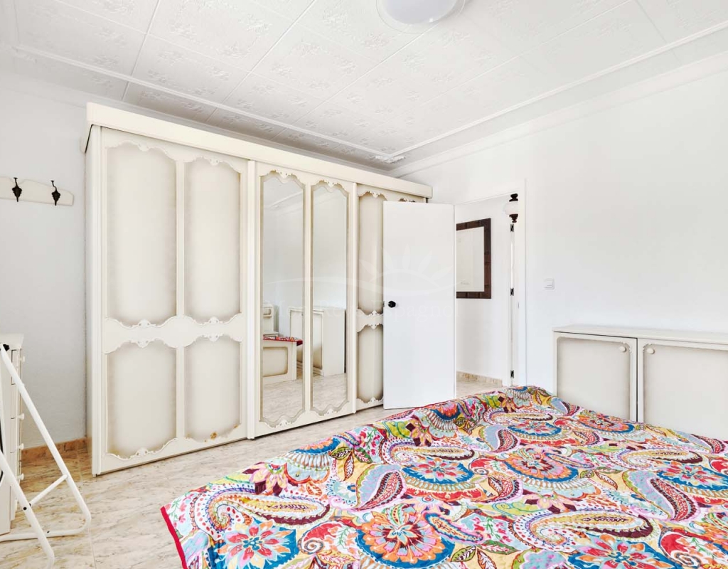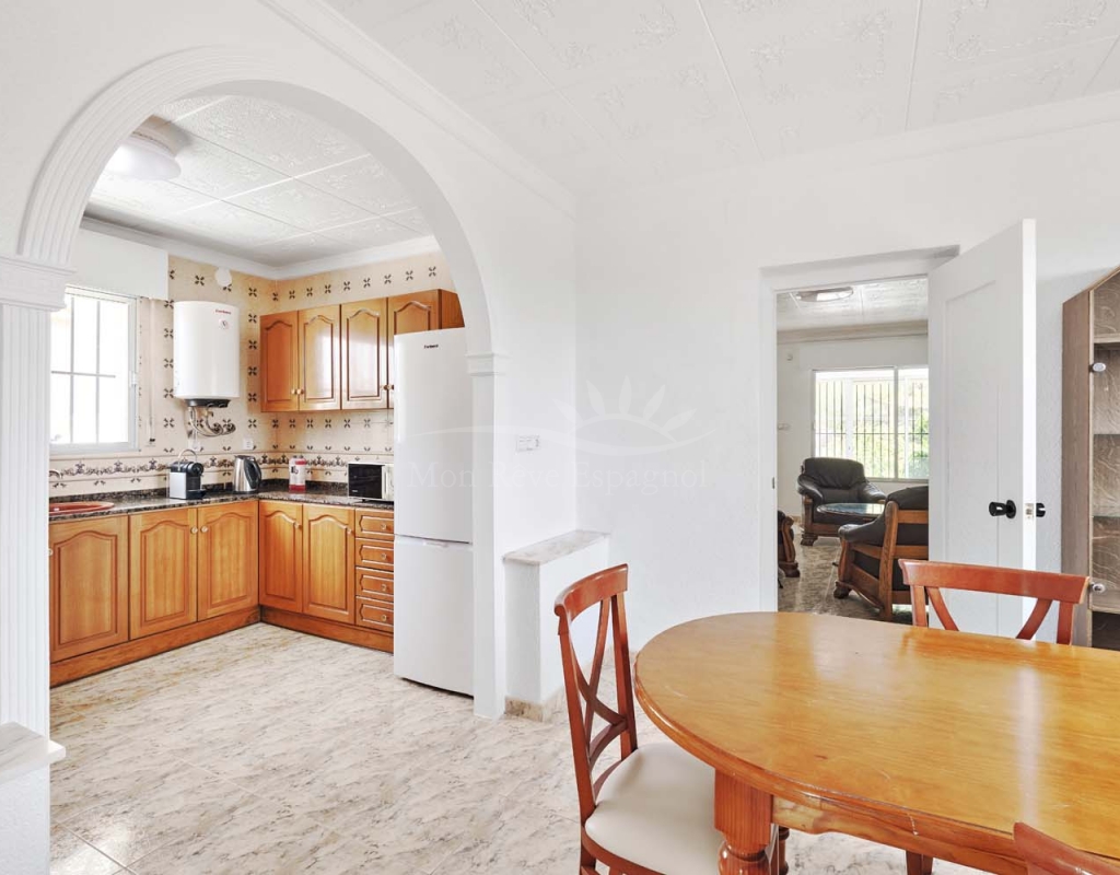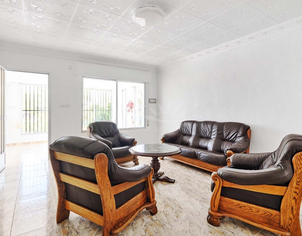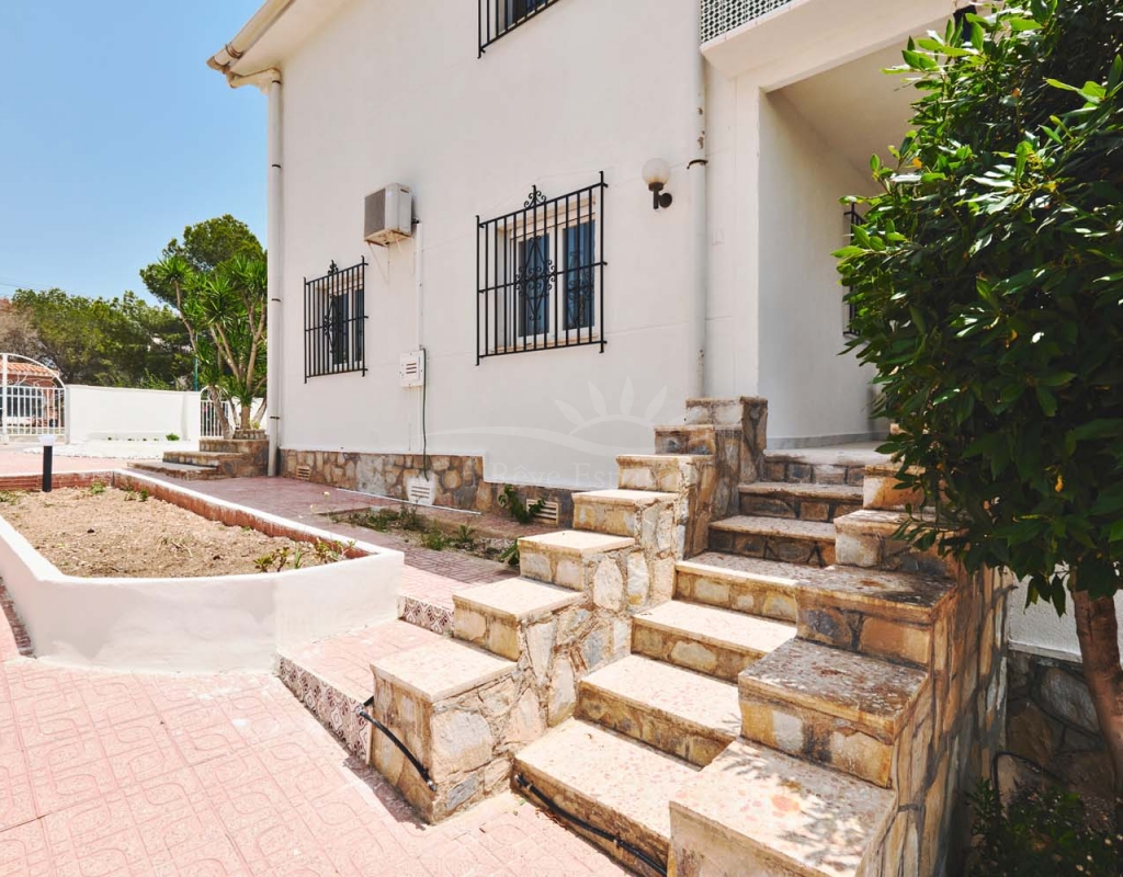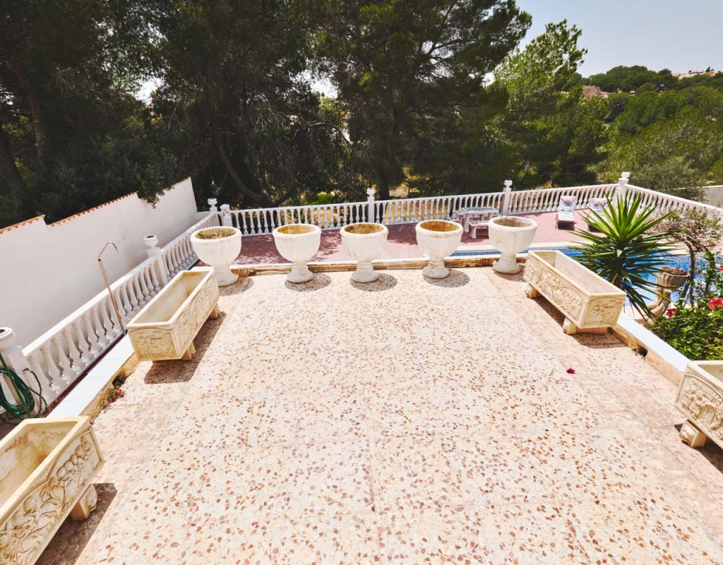 A few steps at the side of the villa lead down to the pool area which located at the rear of the plot backs onto the green area and there is even a gate to give you direct access. The pool area is full tiled and there is a outside bar with brick built BBQ and covered seating area, this space is ideal for entertaining or spending the day by the pool with family and friends. There is a large storage area below the pool and the owner will be selling the property furnished.