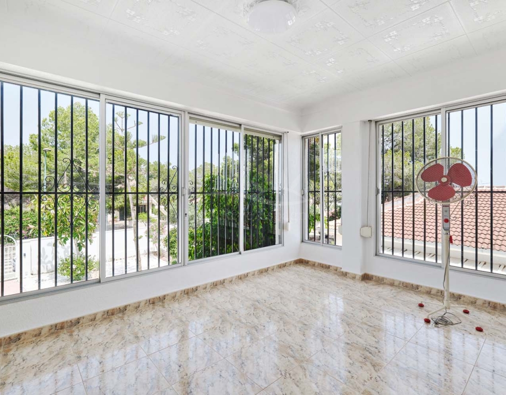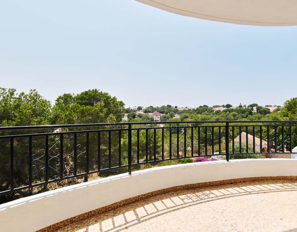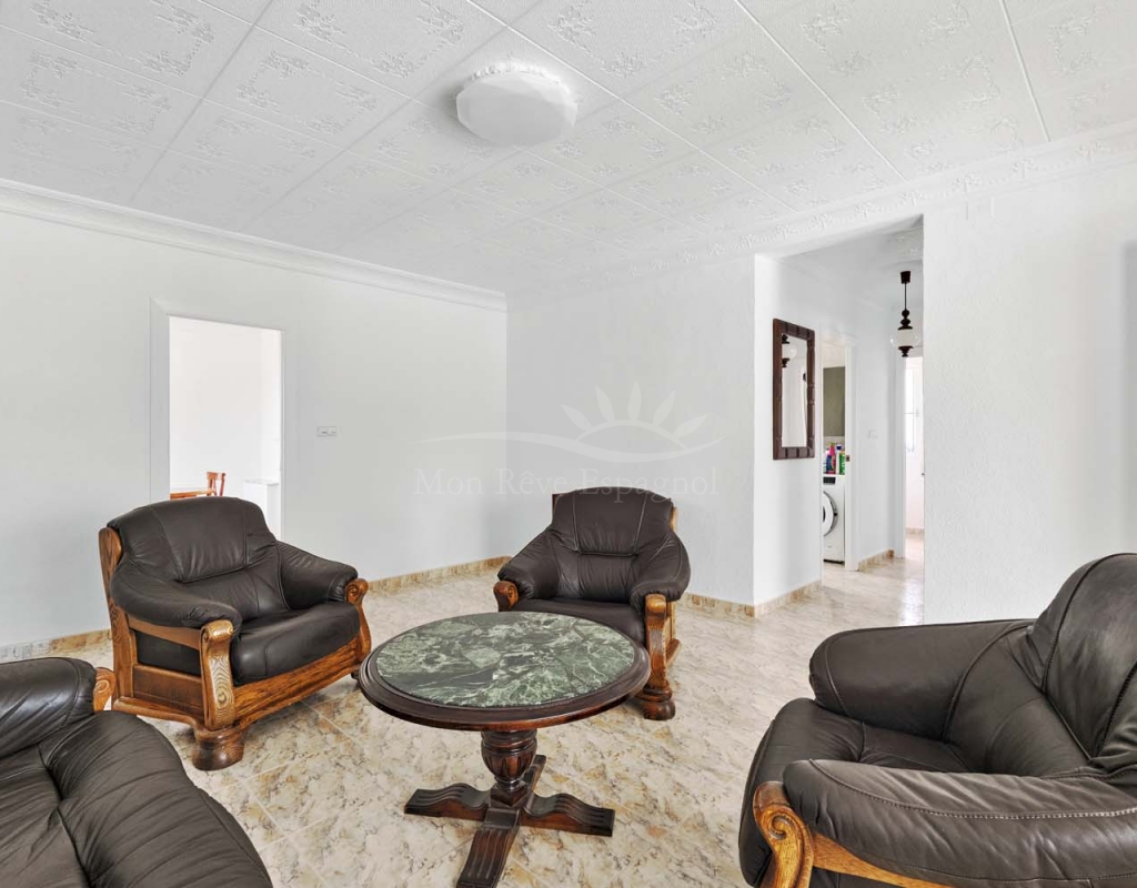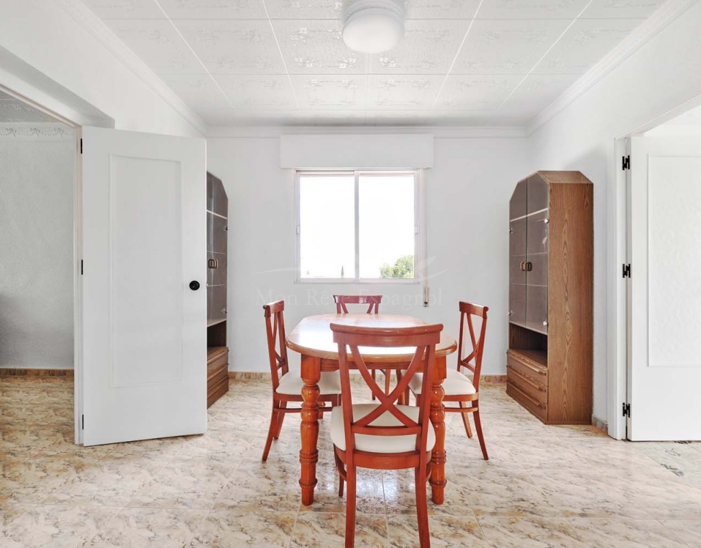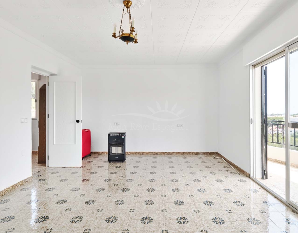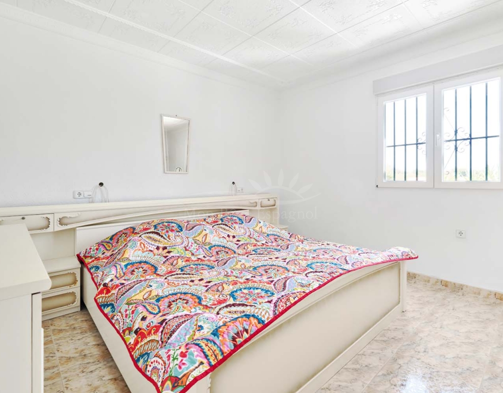 A set of external stairs from the front of the villa lead to the top floor of the property and the second half of the living space, this space is ideal for visitors as it can be locked up when not in use but allows any guests plenty of space with their own independent access. The top floor consists of a glazed room at the front which overlooks the garden, a spacious living room, large separate fully fitted kitchen, family bathroom, double bedroom and smaller single bedroom as with the ground floor. At the rear of the property is another large master bedroom with patio doors onto a terrace to enjoy those lovely countryside views at the rear, there is also a second door leading to another terrace with sun awning.