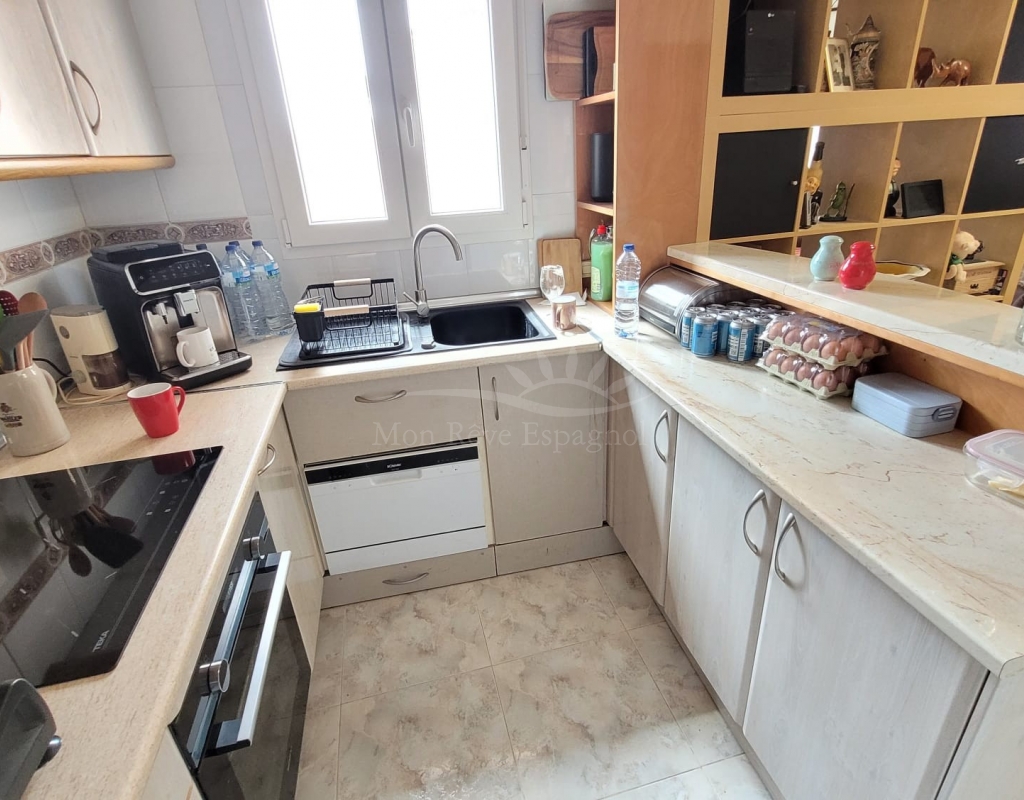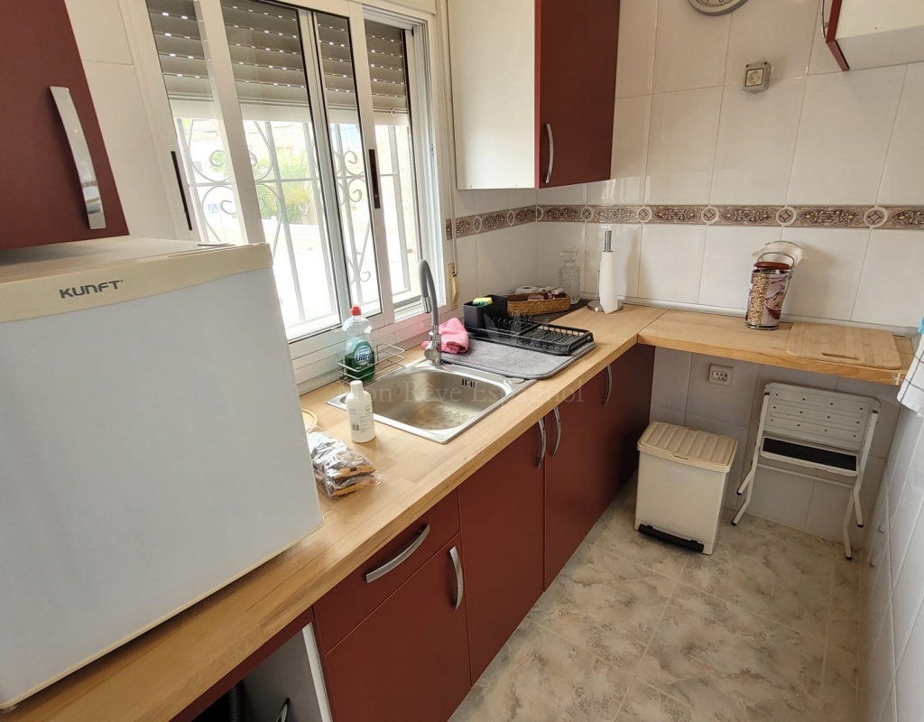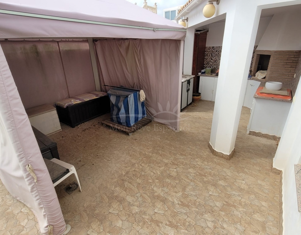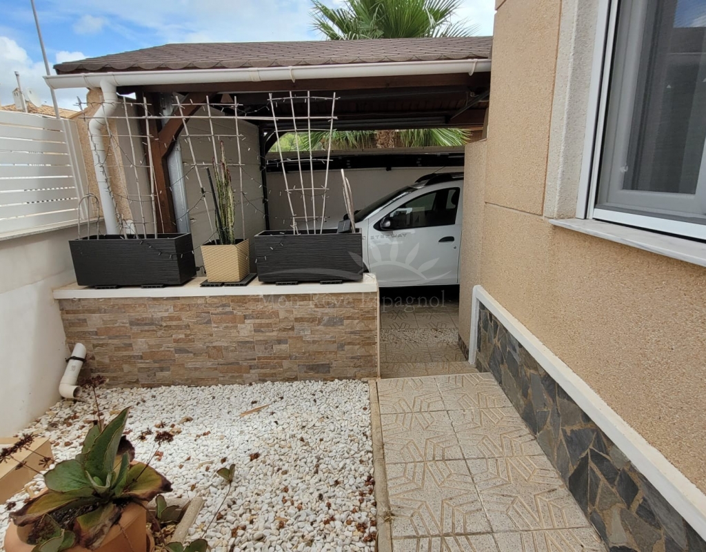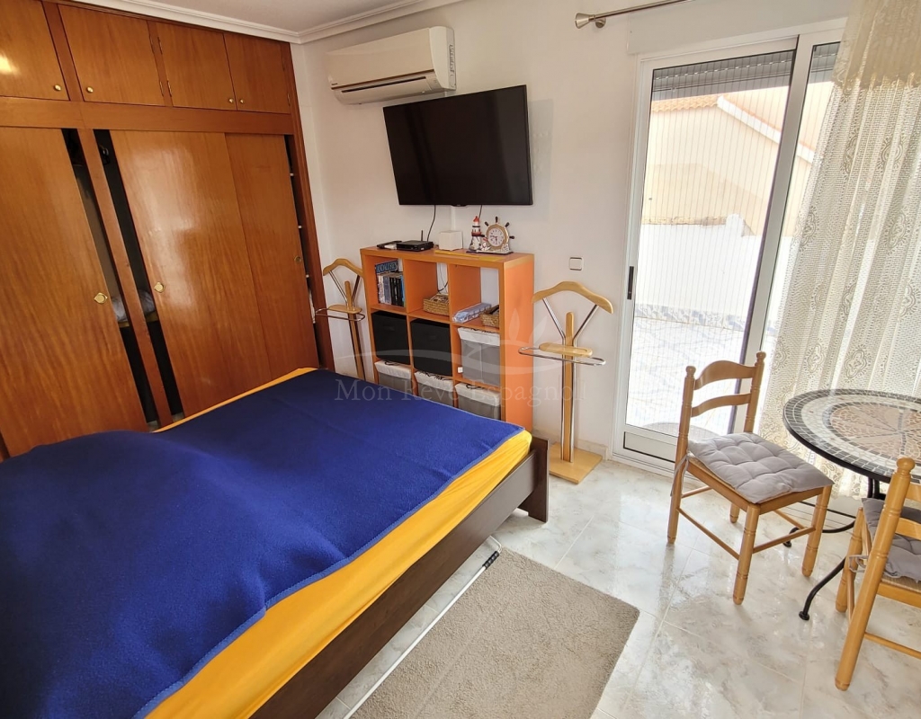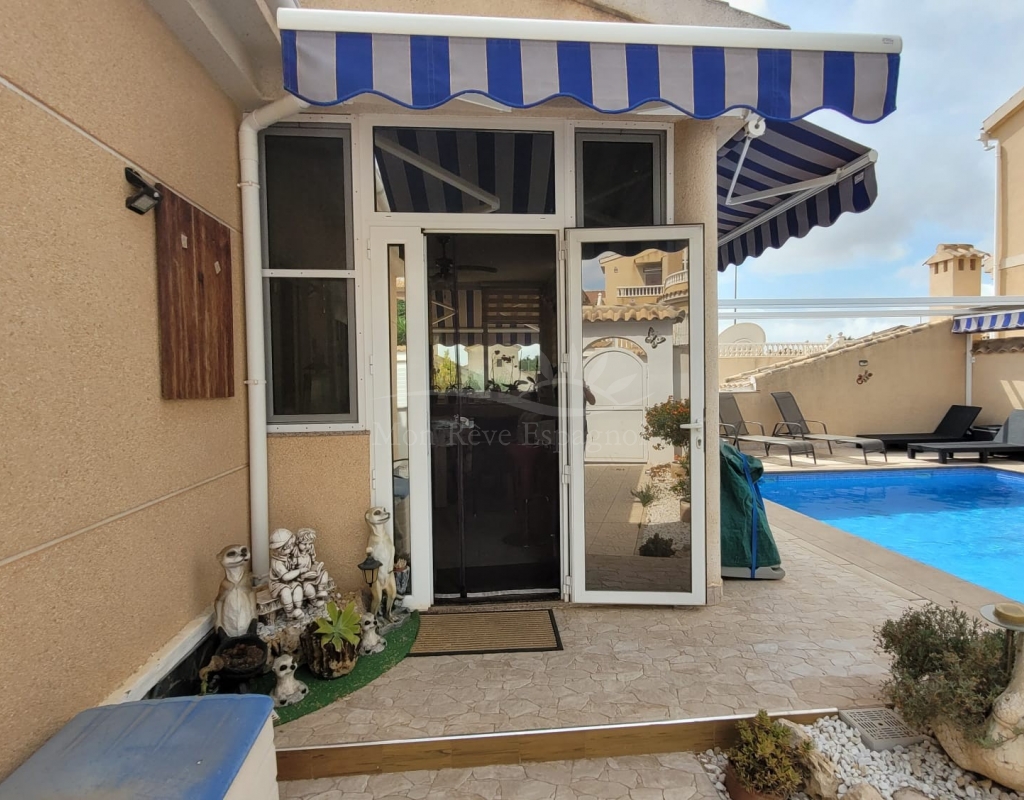 South-facing villa with sea views from the solarium, a separate guest apartment, and a private pool in Pinar de Campoverde. This south-facing property enjoys an ideal location within walking distance of green areas and the Río Seco River. The property sits on a flat, easy-maintain garden of approximately 365 m².