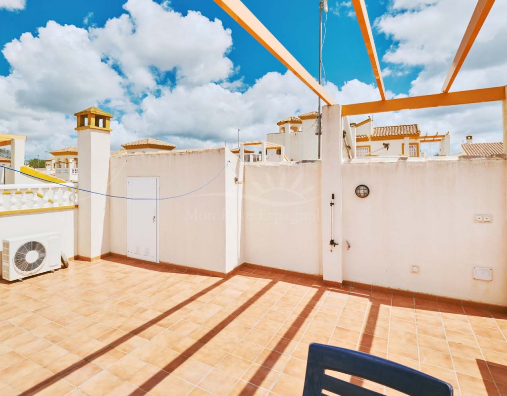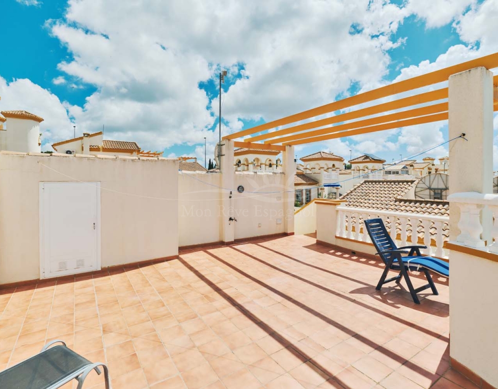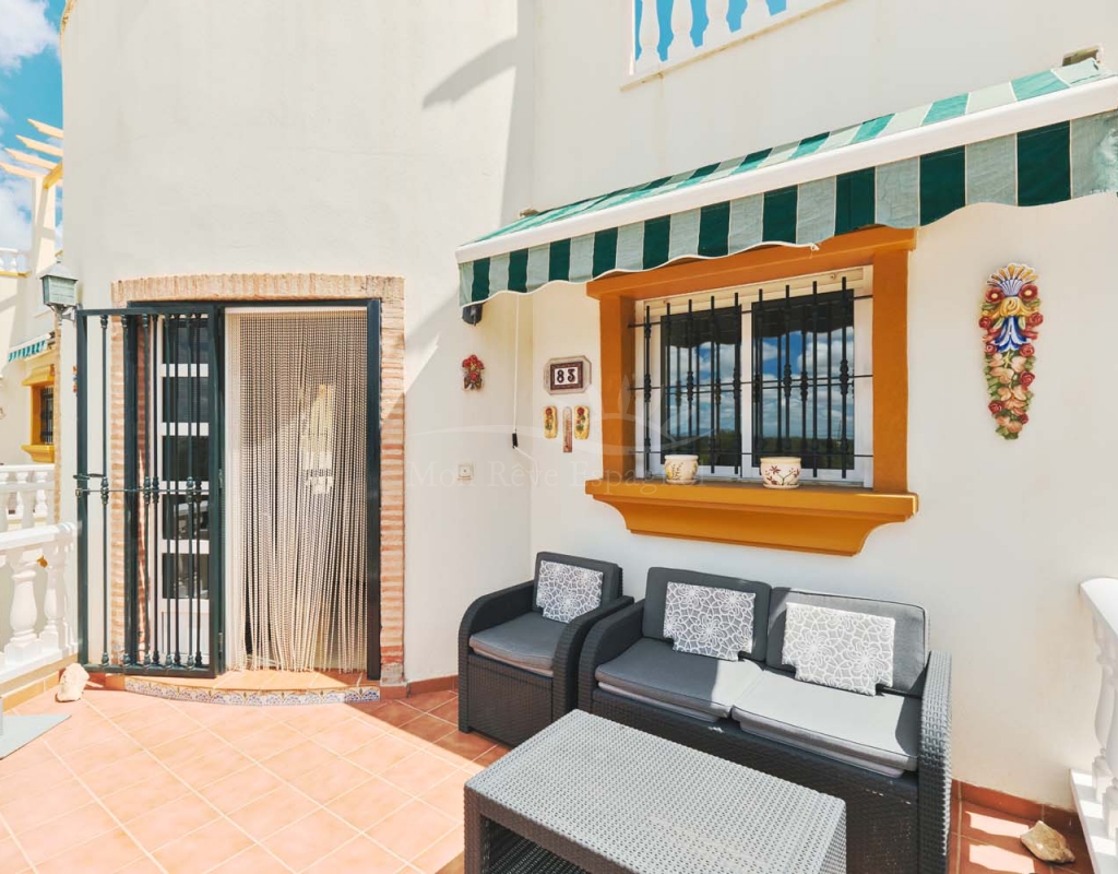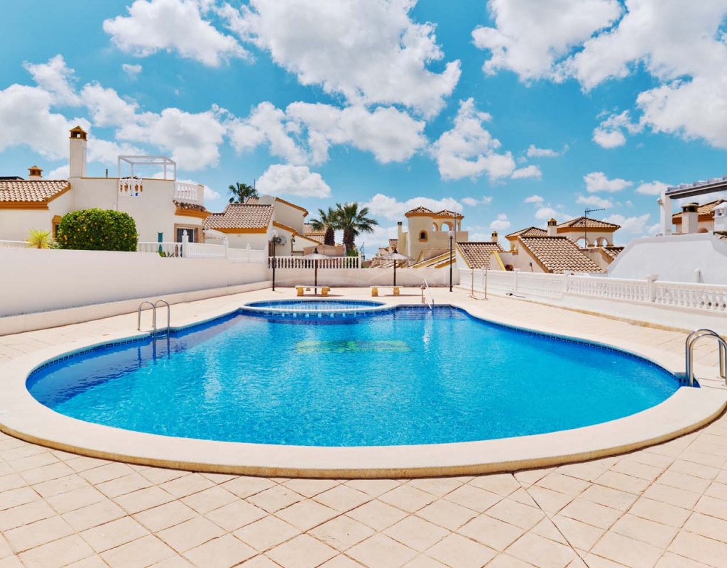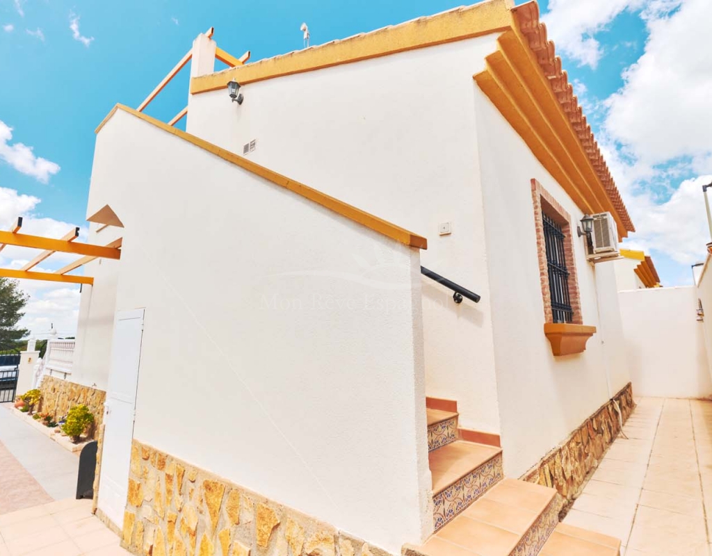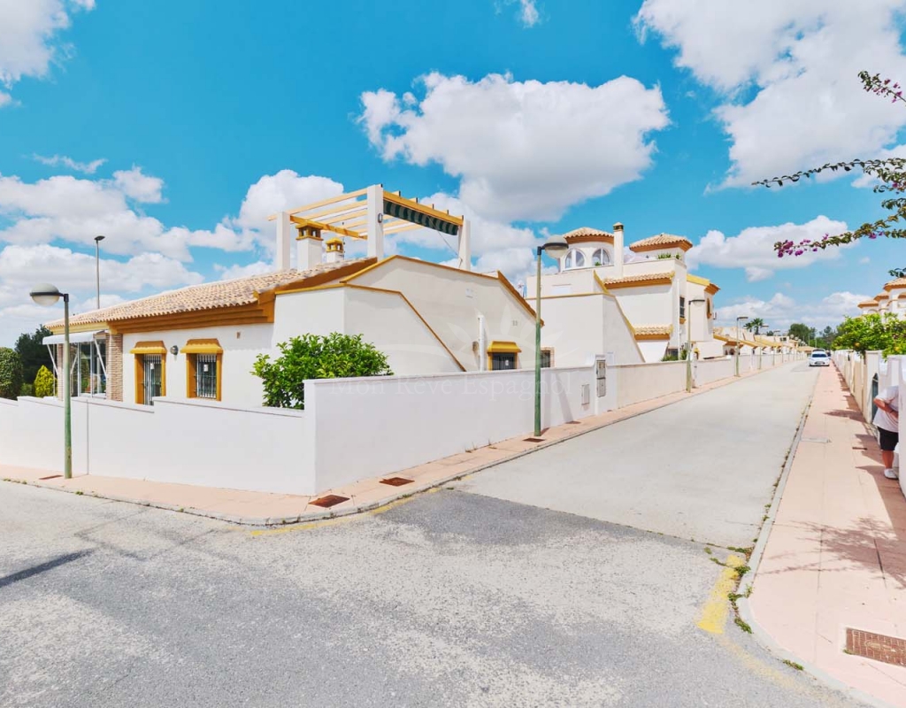 South-facing, 2-bedroom, 2-bathroom detached house with stunning countryside views and access to a large communal swimming pool, located in the pretty, leafy village of Pinar de Campoverde. Situated on an easy-to-maintain plot of 185m², this fabulous villa is just a few minutes' walk from amenities and only 10km from the famous Blue Flag beaches of Torre de la Horadada and Mil Palmeras.