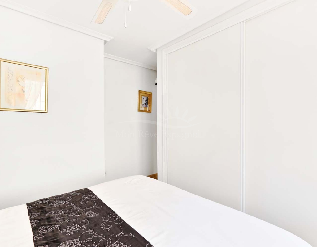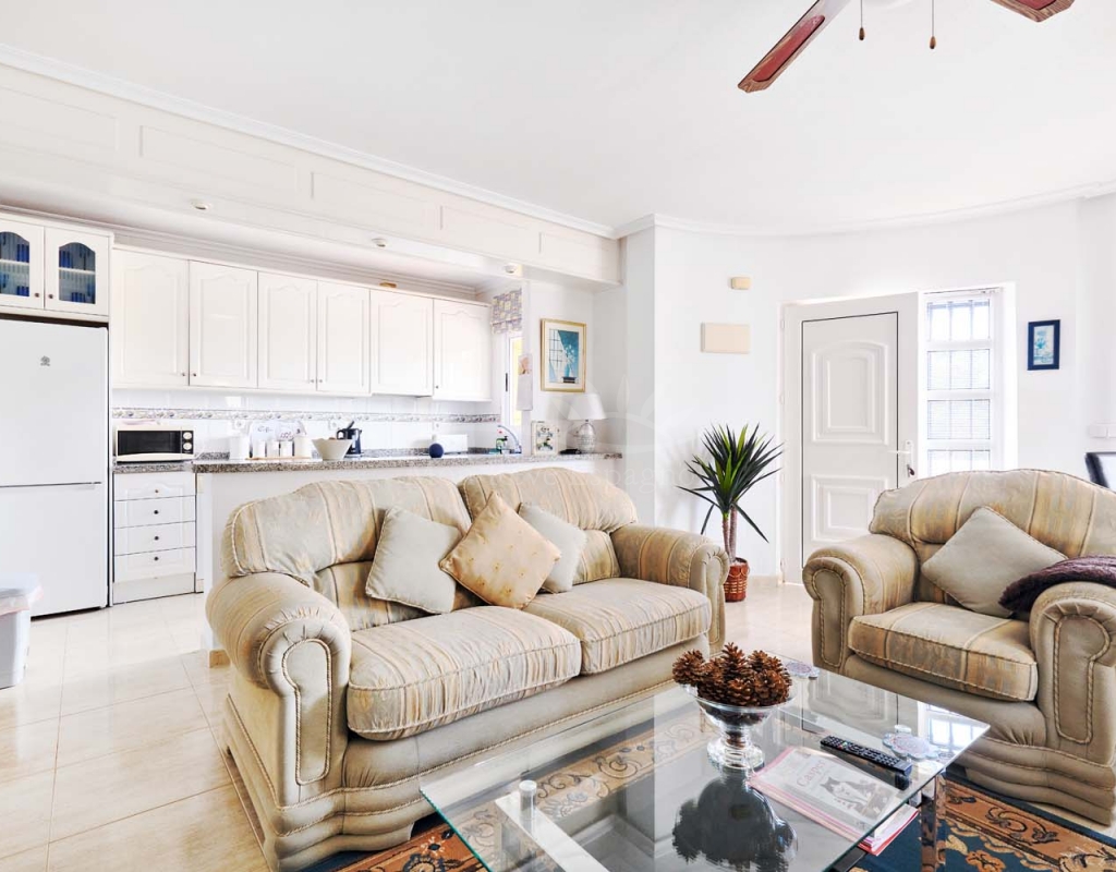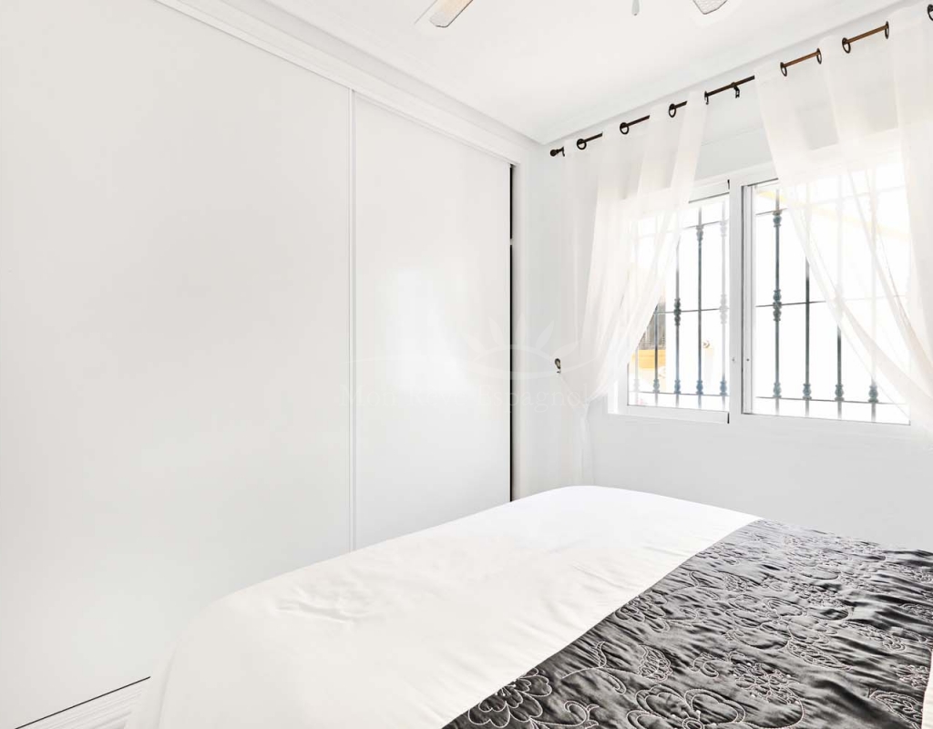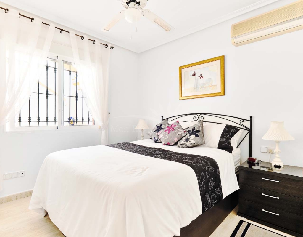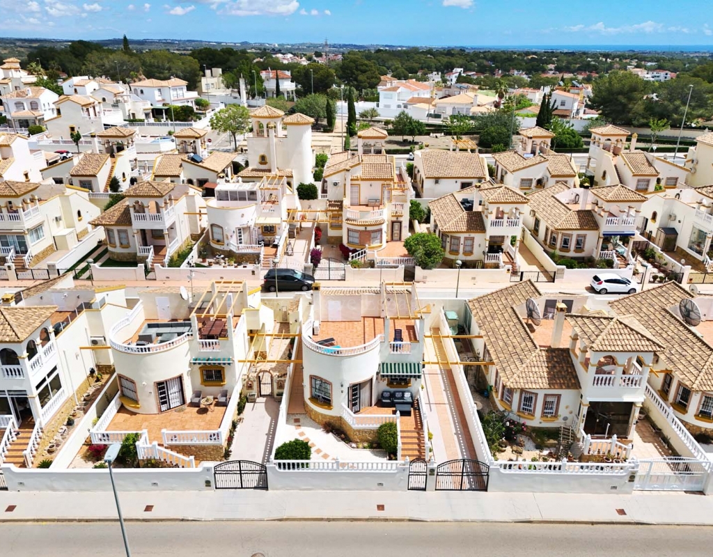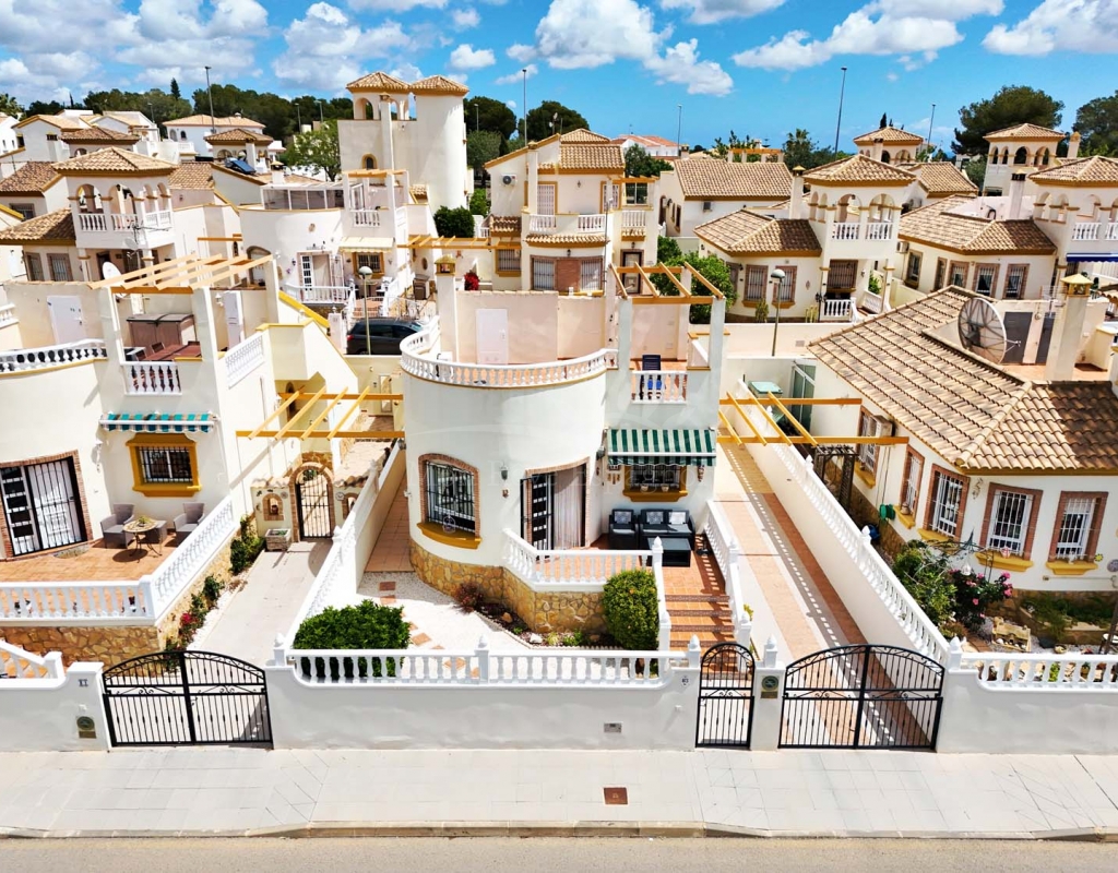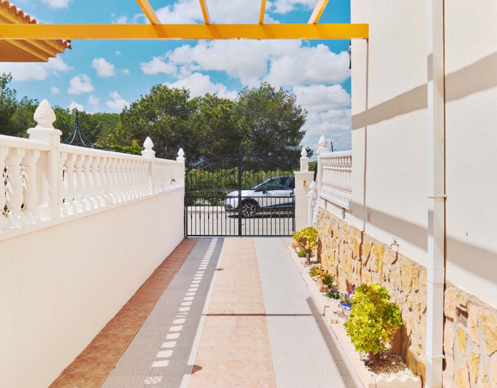 South-facing, 2-bedroom, 2-bathroom detached house with stunning countryside views and access to a large communal swimming pool, located in the pretty, leafy village of Pinar de Campoverde. Situated on an easy-to-maintain plot of 185m², this fabulous villa is just a few minutes' walk from amenities and only 10km from the famous Blue Flag beaches of Torre de la Horadada and Mil Palmeras.
