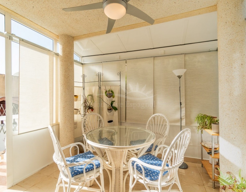 It comprises a ground floor with a glass-enclosed terrace serving as a dining room, a spacious air-conditioned living room, a fully equipped kitchen, 3 bedrooms, and 1 bathroom.