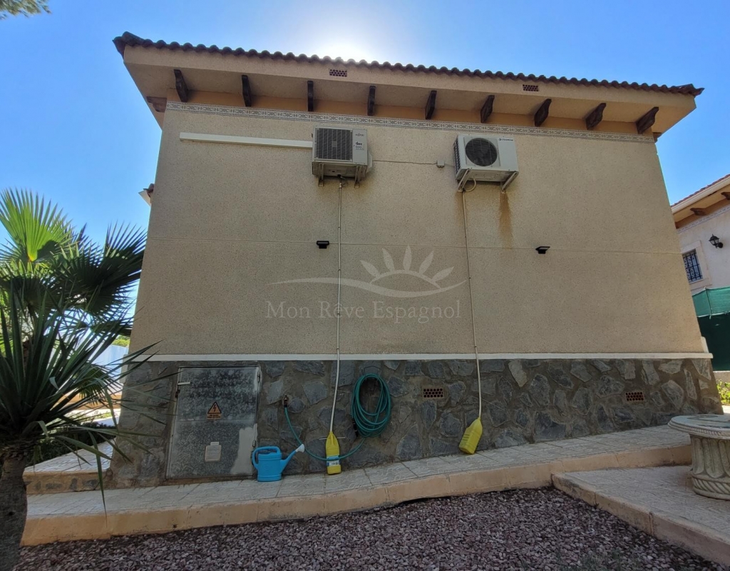 The house is equipped with solar panels, air conditioning, mosquito nets, a sun awning, and is sold furnished.