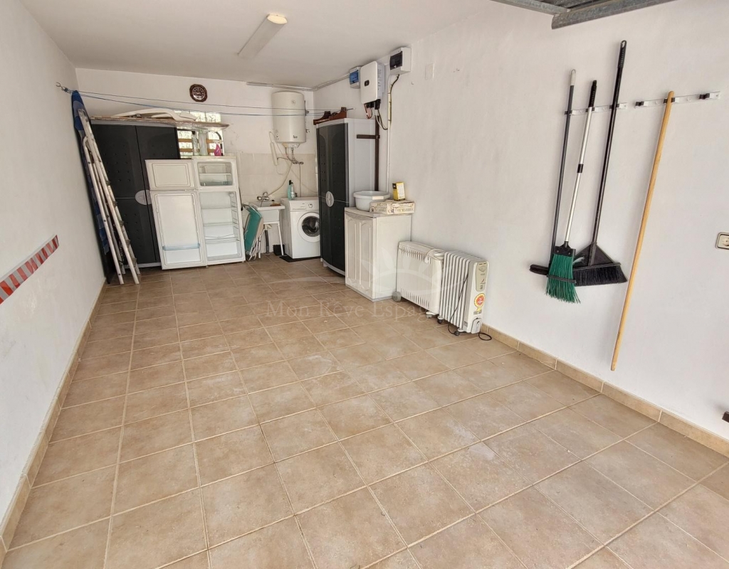 Outside, you can enjoy a large covered terrace, a barbecue area, a spacious garage (which could be converted into a third bedroom) with a laundry area, indoor parking, and a basement converted into a workshop.