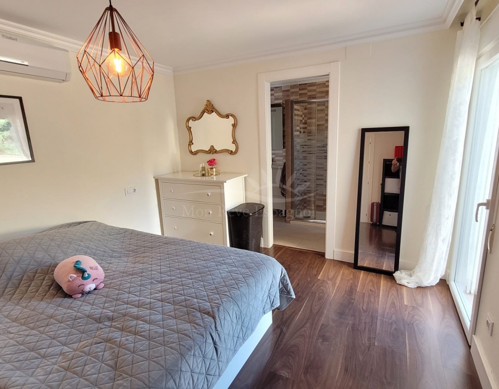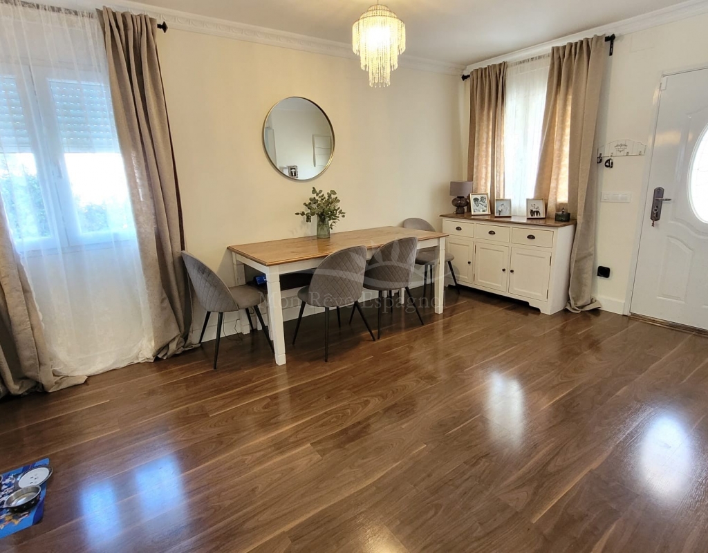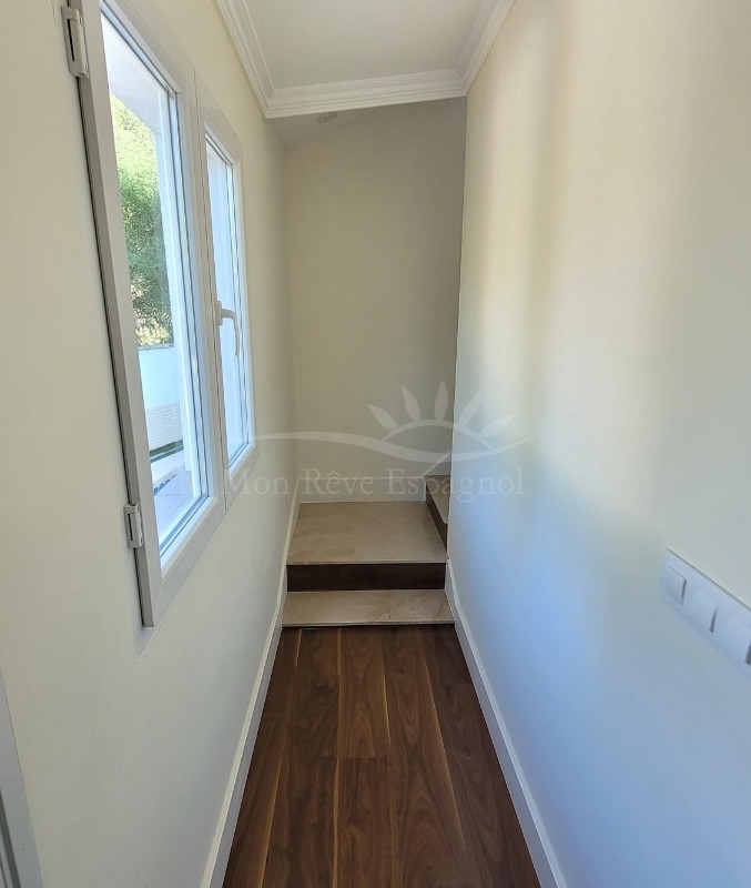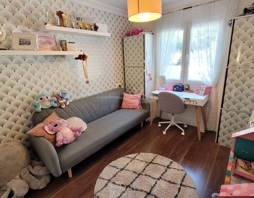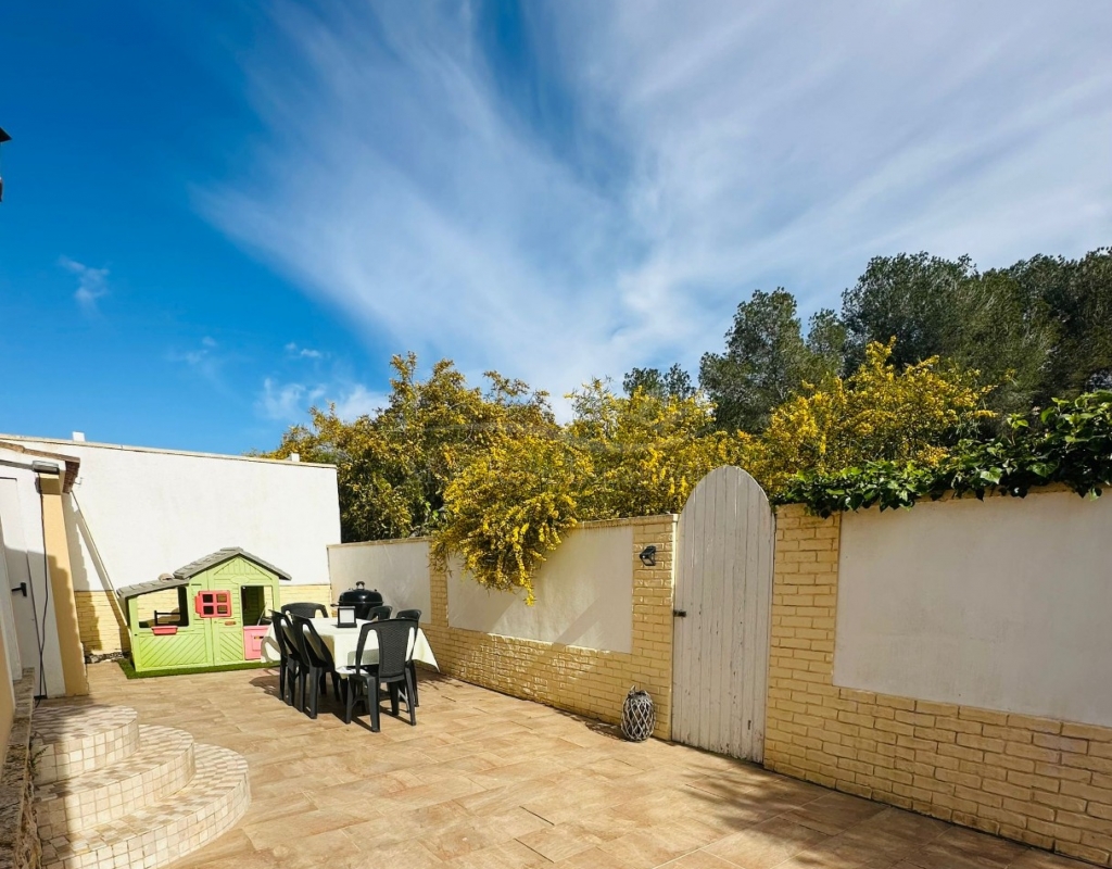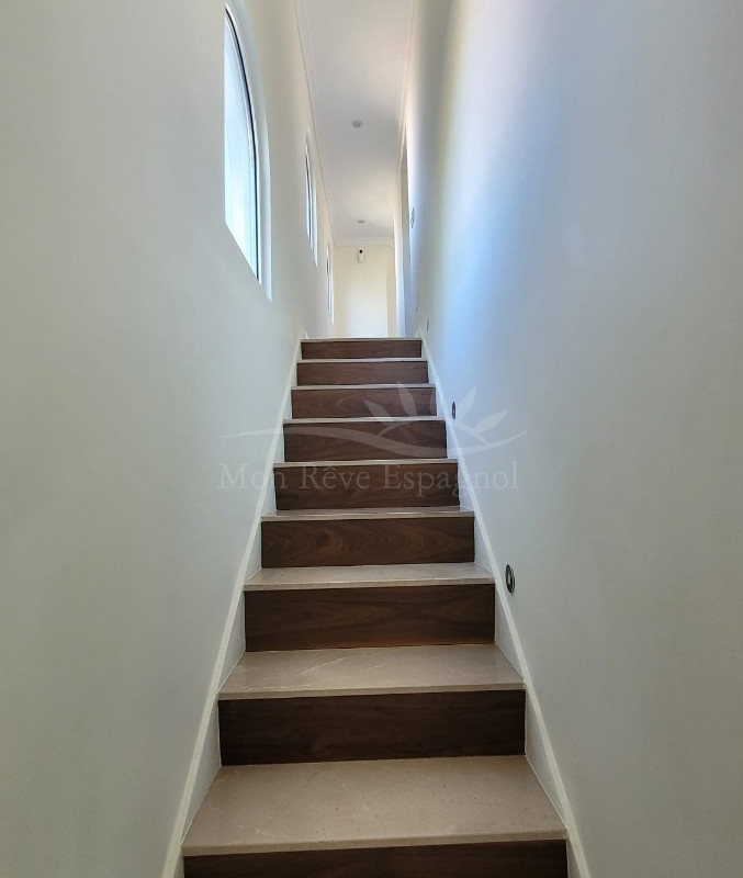 Adjoining the ground floor, you'll discover a covered terrace that provides access to the lower level of the home. Ground Floor: Welcomes you with a spacious and bright living-dining room, open-plan kitchen, a bedroom with a built-in wardrobe, and a bathroom. From the kitchen, a door leads to an interior staircase that leads to the upper floor. On this floor, there are three additional bedrooms and a bathroom. Two of the bedrooms are spacious and bright. Two private terraces accessible from the bedrooms offer charming views of the garden. They are the perfect spot to enjoy a morning coffee or a peaceful moment at sunset.