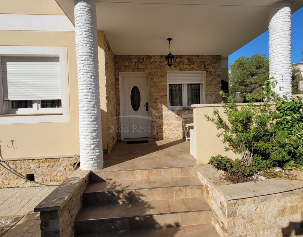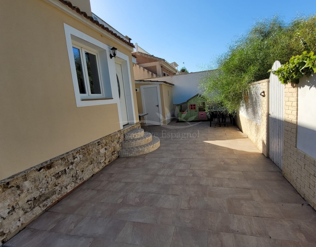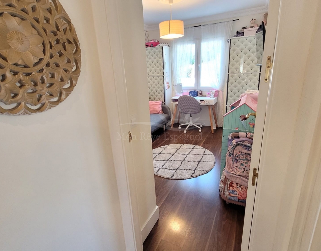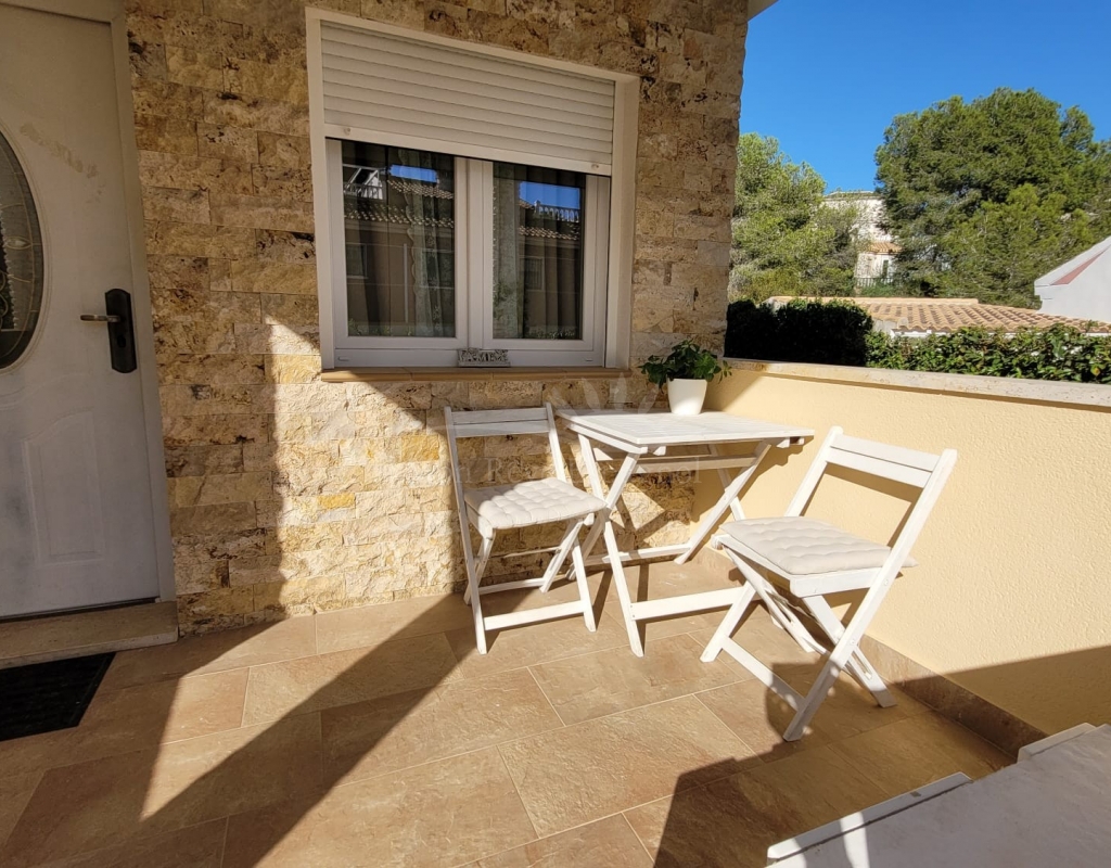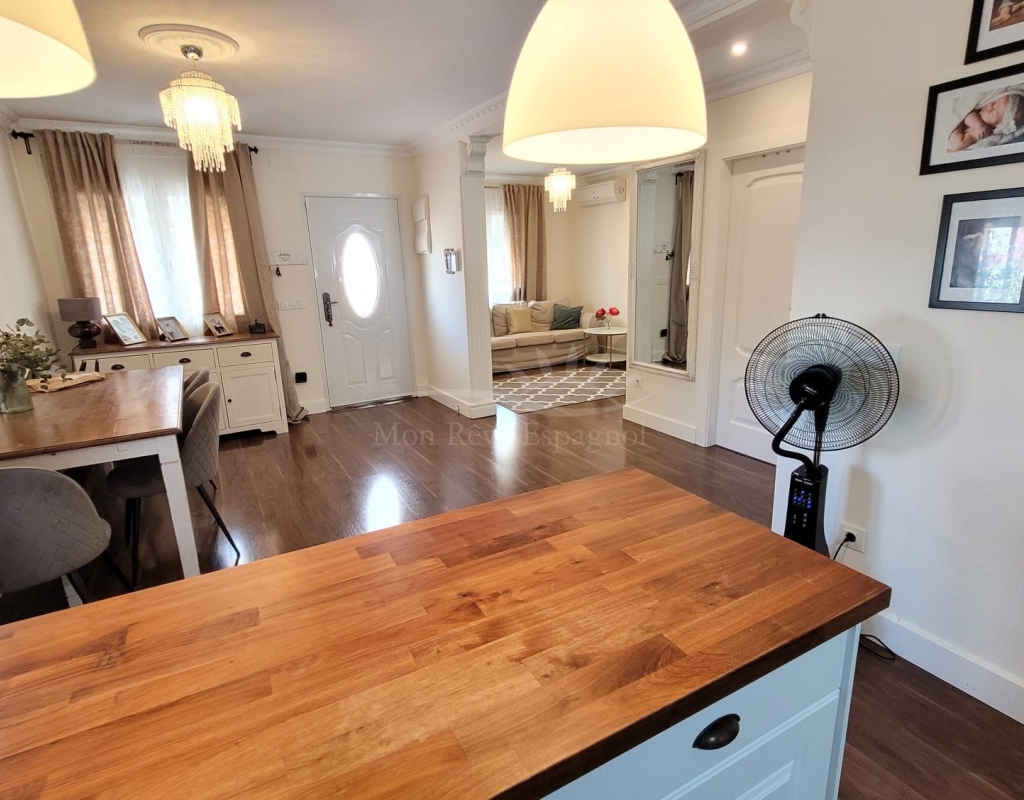 Adjoining the ground floor, you'll discover a covered terrace that provides access to the lower level of the home. Ground Floor: Welcomes you with a spacious and bright living-dining room, open-plan kitchen, a bedroom with a built-in wardrobe, and a bathroom. From the kitchen, a door leads to an interior staircase that leads to the upper floor. On this floor, there are three additional bedrooms and a bathroom. Two of the bedrooms are spacious and bright. Two private terraces accessible from the bedrooms offer charming views of the garden. They are the perfect spot to enjoy a morning coffee or a peaceful moment at sunset.
