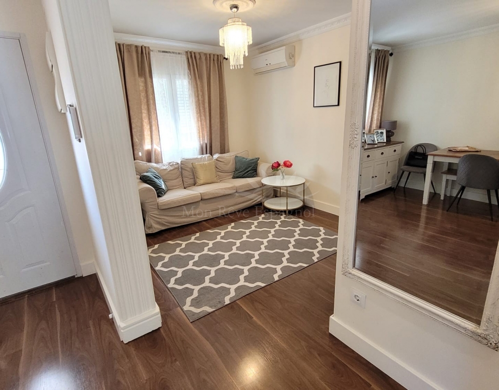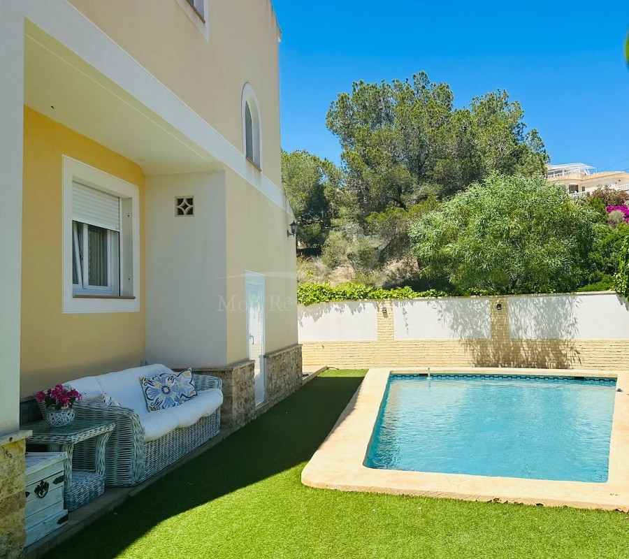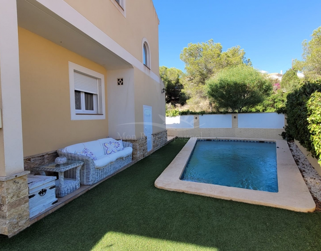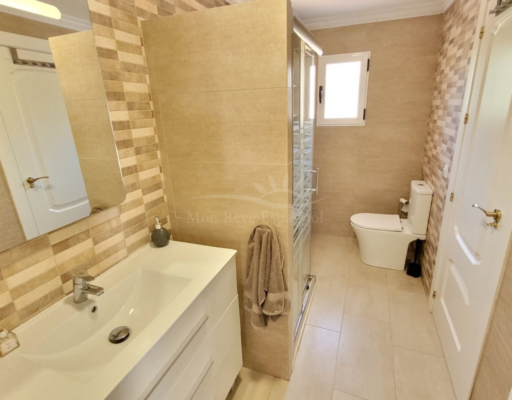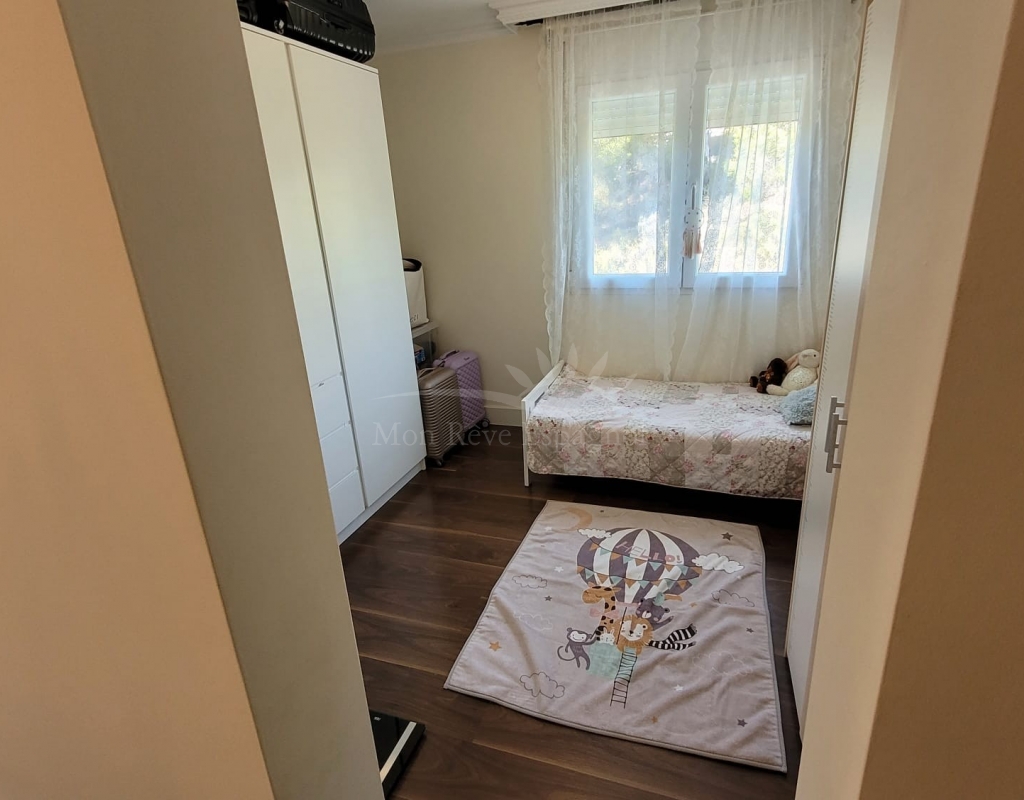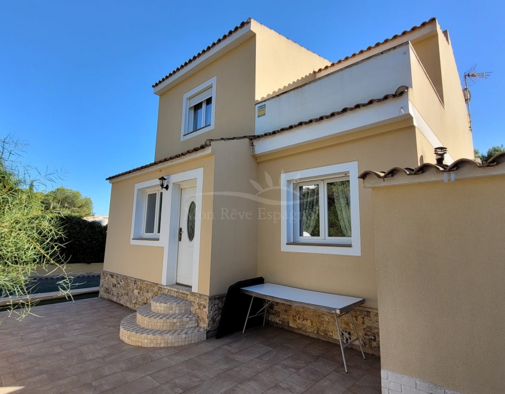 Adjoining the ground floor, you'll discover a covered terrace that provides access to the lower level of the home. Ground Floor: Welcomes you with a spacious and bright living-dining room, open-plan kitchen, a bedroom with a built-in wardrobe, and a bathroom. From the kitchen, a door leads to an interior staircase that leads to the upper floor. On this floor, there are three additional bedrooms and a bathroom. Two of the bedrooms are spacious and bright. Two private terraces accessible from the bedrooms offer charming views of the garden. They are the perfect spot to enjoy a morning coffee or a peaceful moment at sunset.