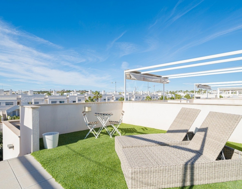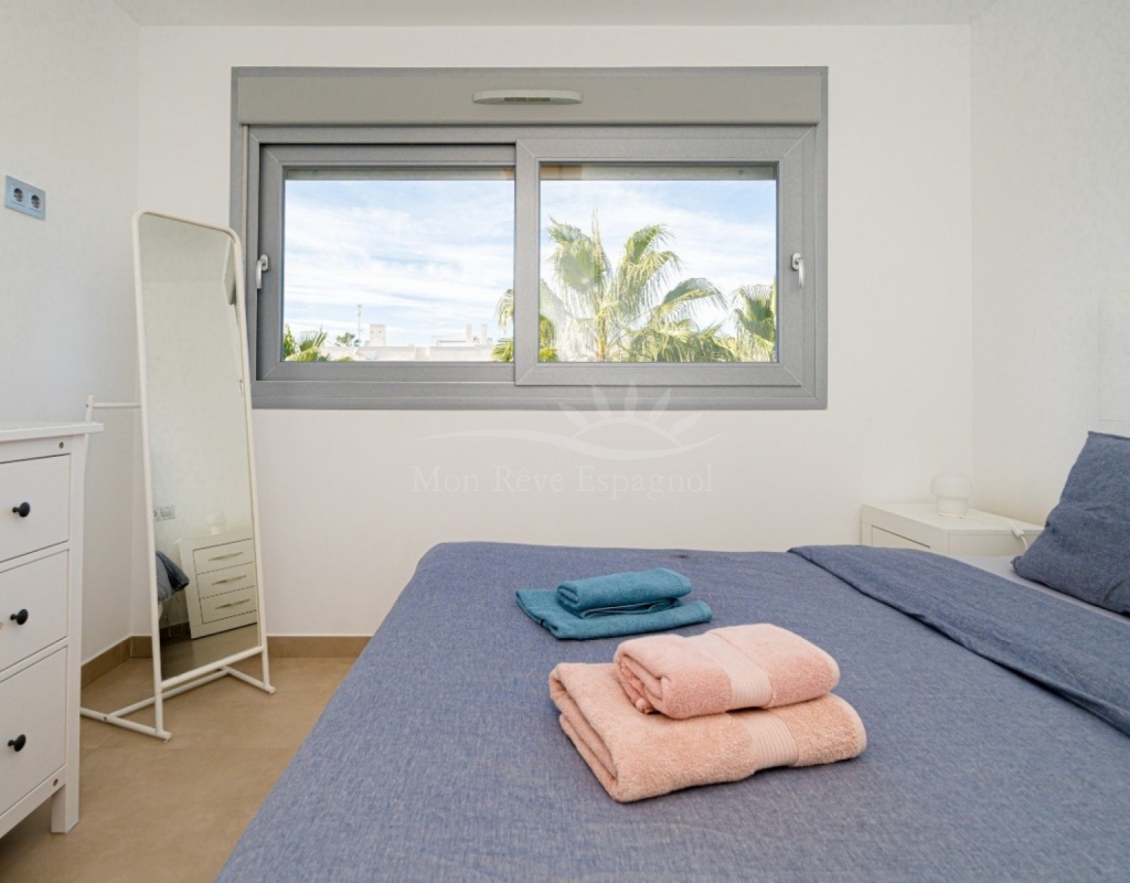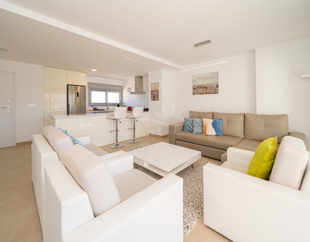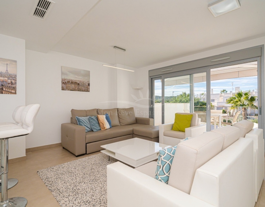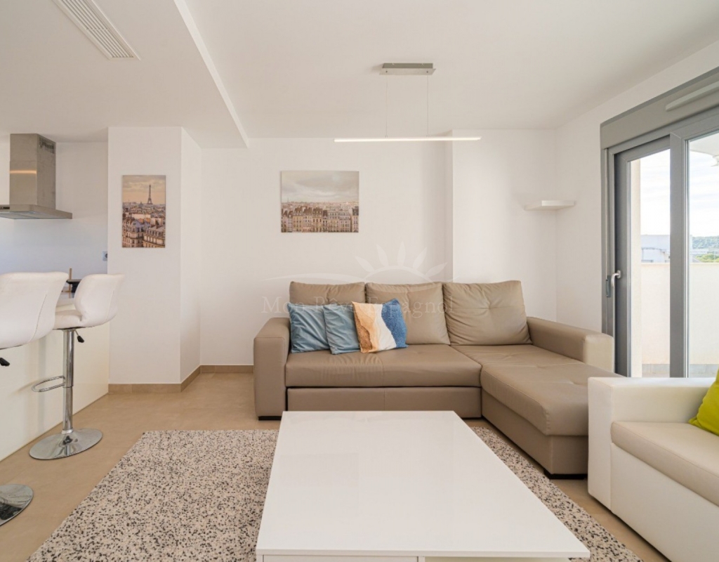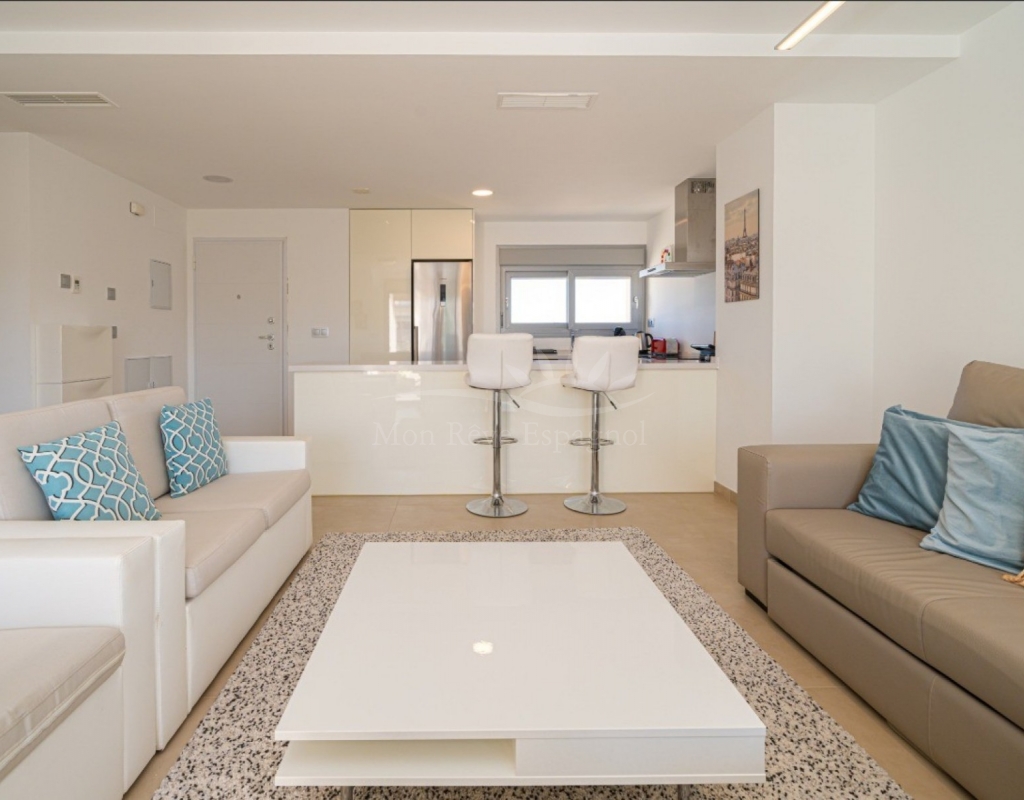 2-bedroom, 2-bathroom apartment with a large rooftop terrace. Located in the pleasant residential area of Vistabella Golf, which, in addition to its beautiful golf course, offers a full range of services within walking distance: supermarket, restaurants, pharmacy, hairdresser, paddle tennis courts, etc.