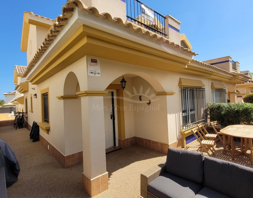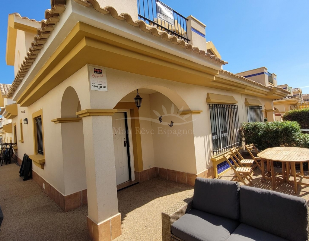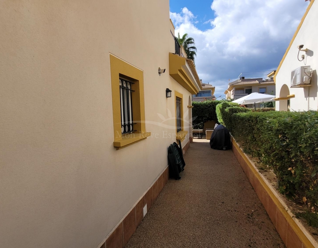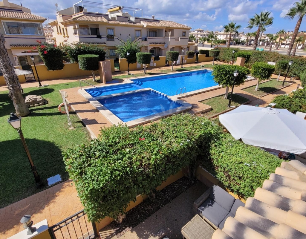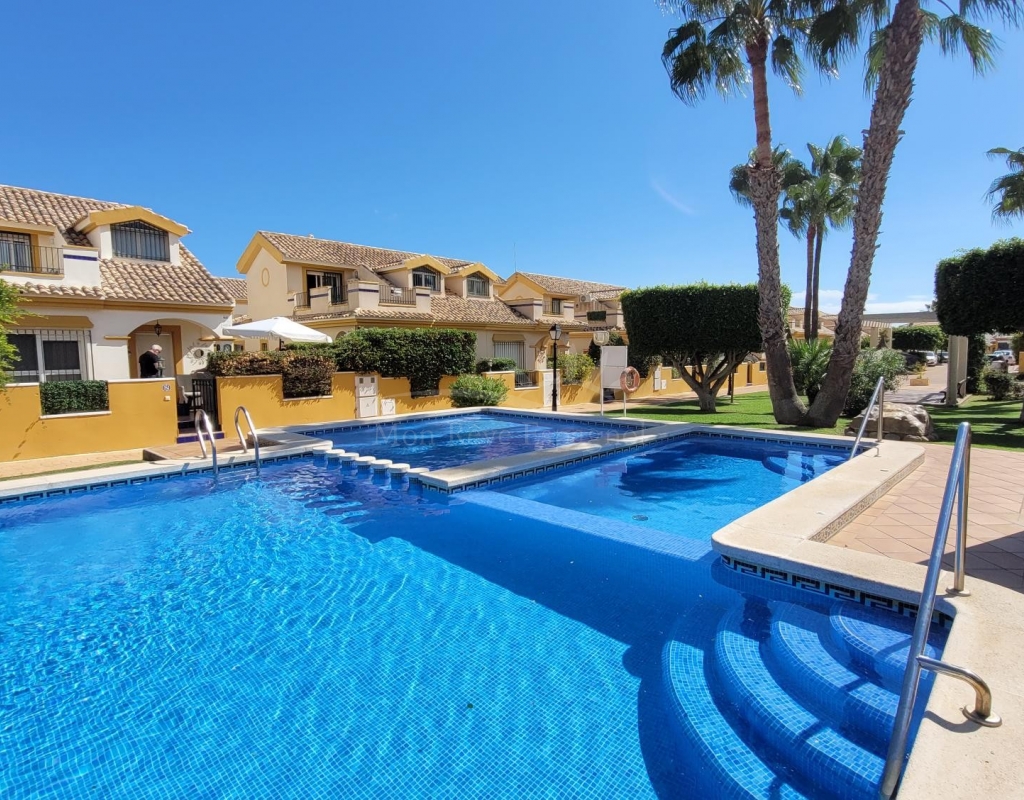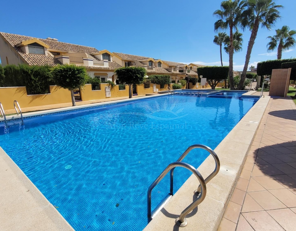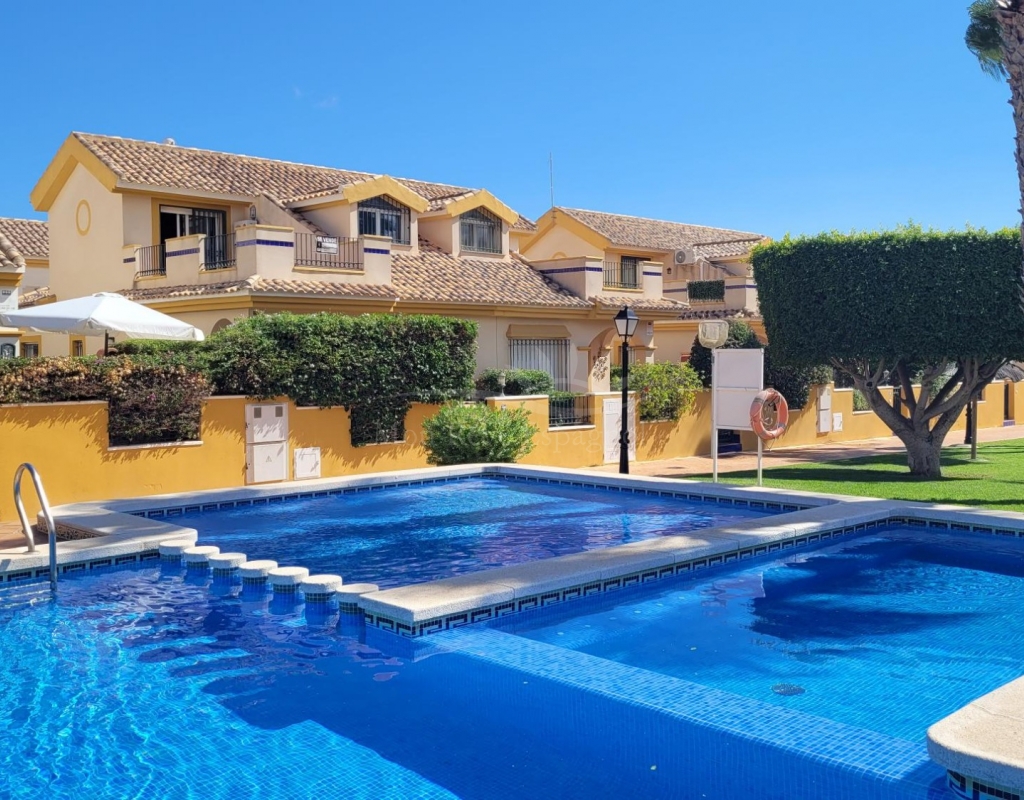 A charming 3-bedroom house with a south-facing orientation, situated in front of a lovely park with a communal swimming pool.