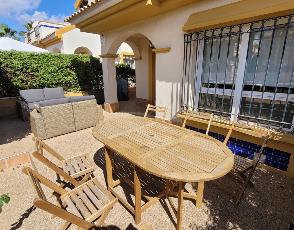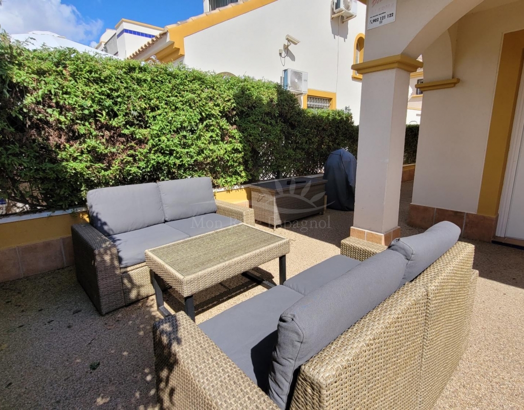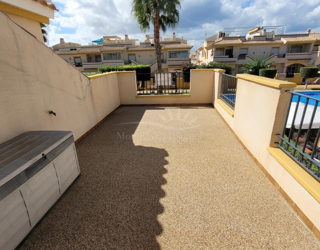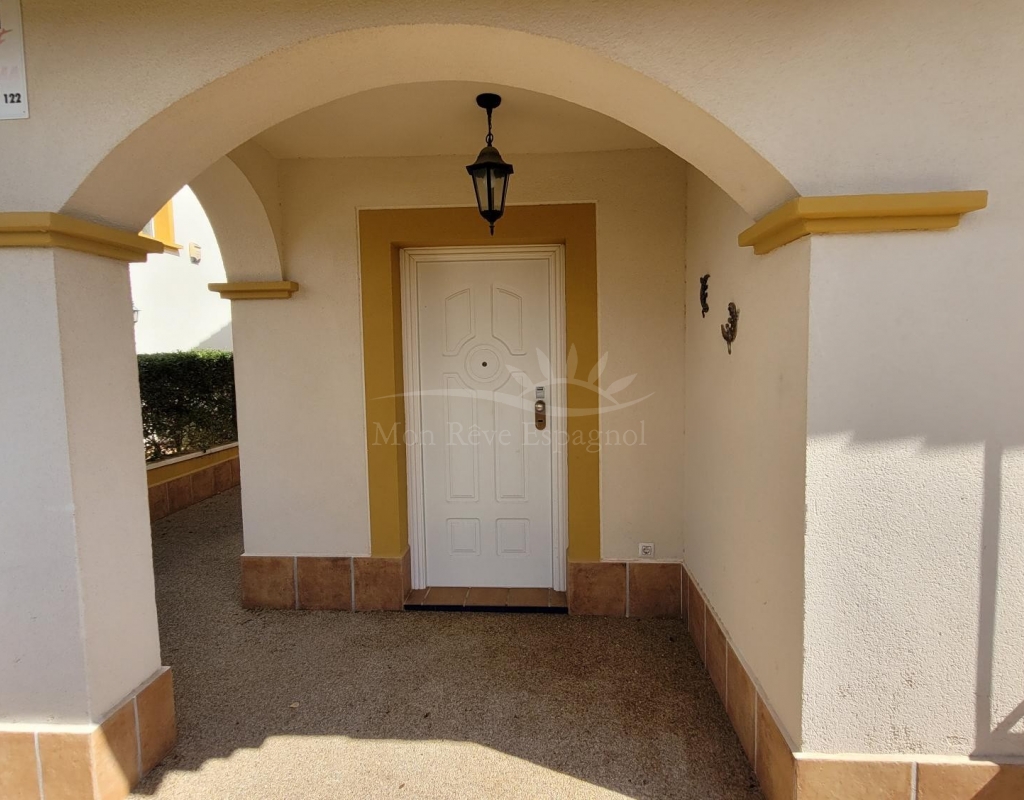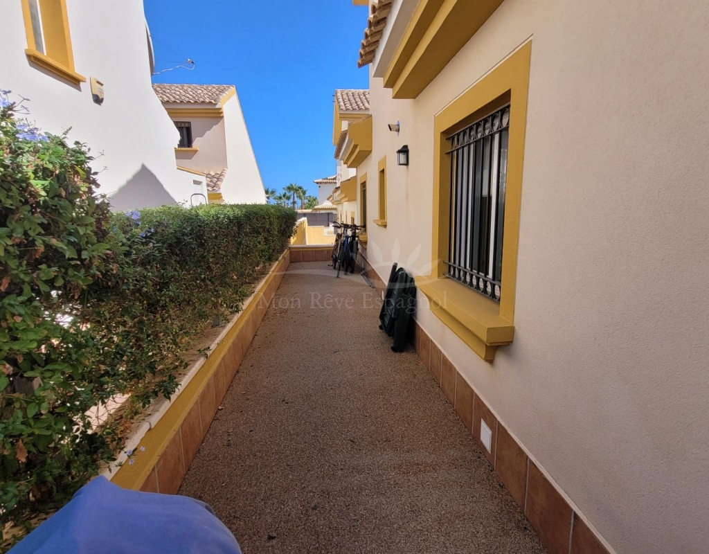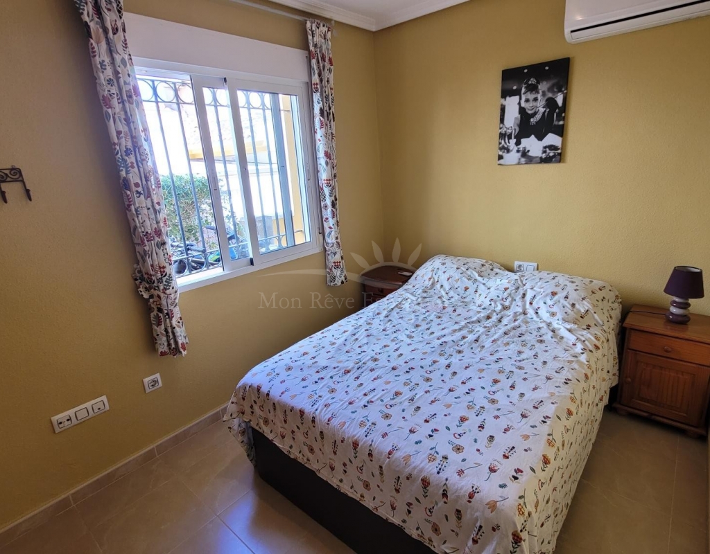 A charming 3-bedroom house with a south-facing orientation, situated in front of a lovely park with a communal swimming pool.