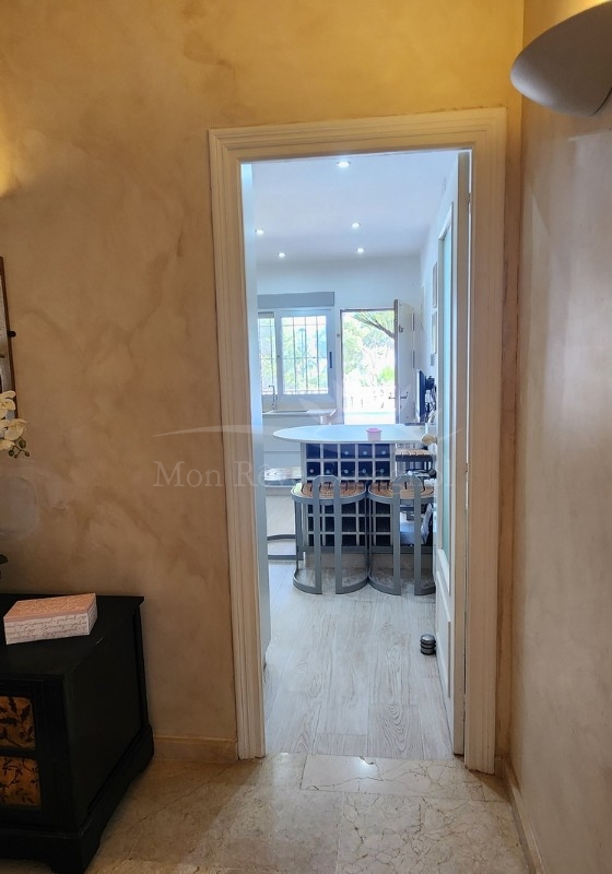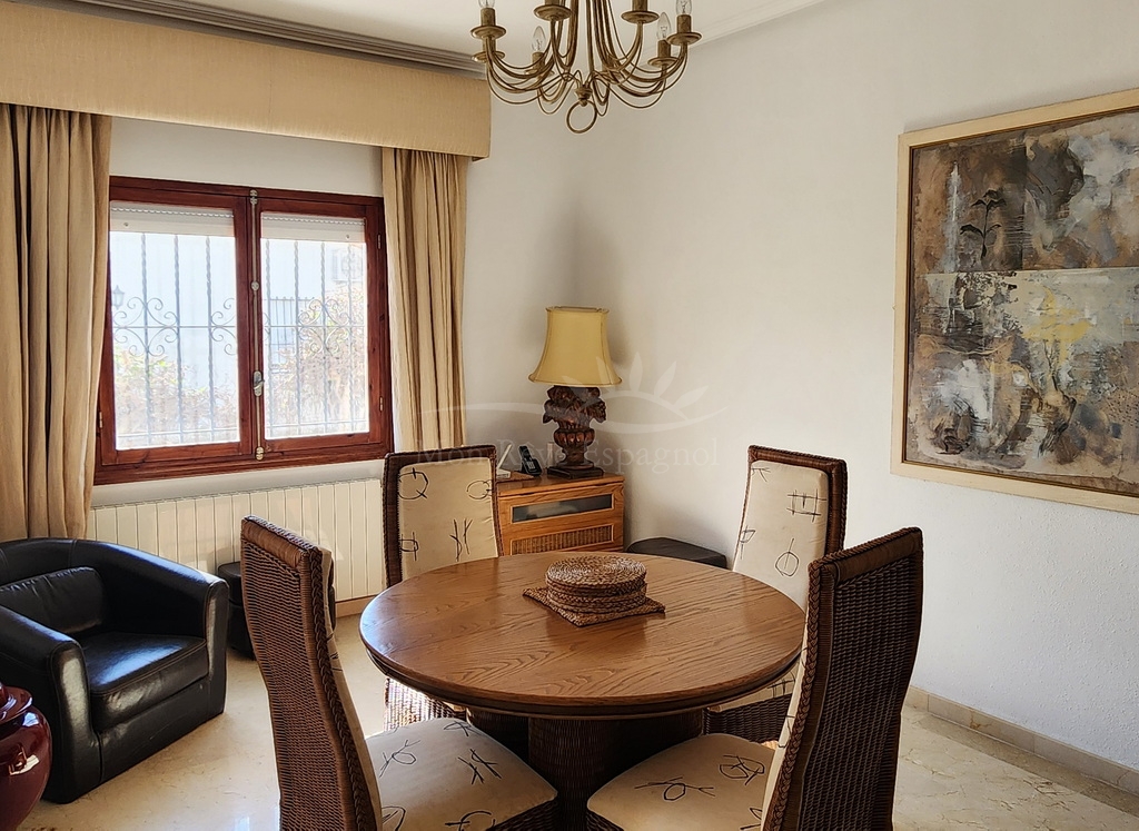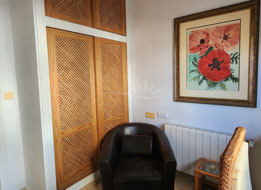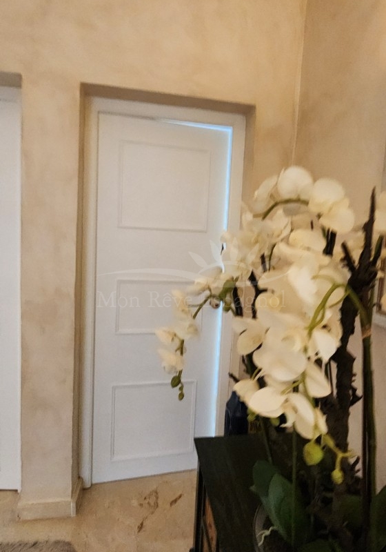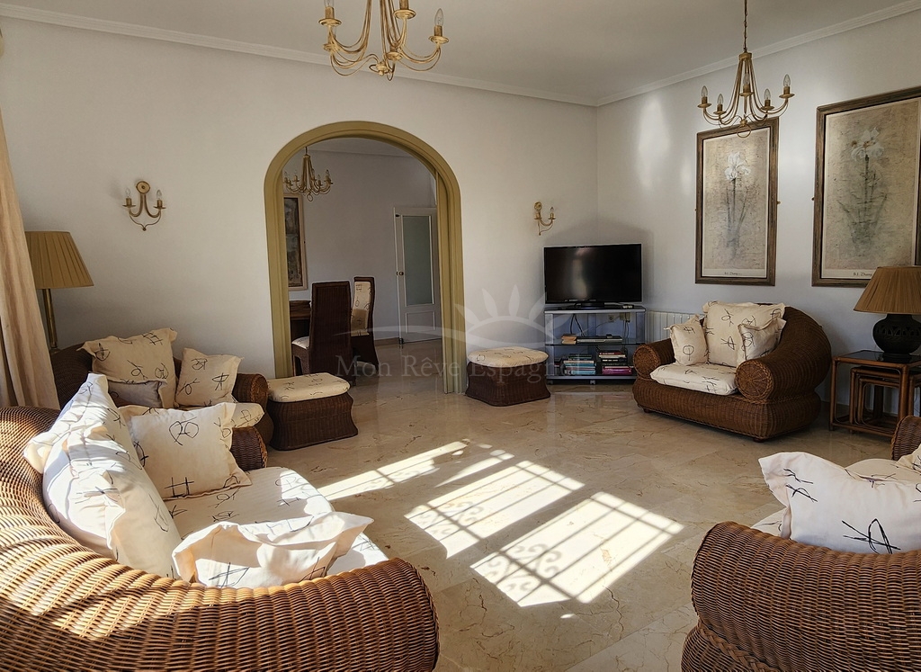 This beautiful property, laid out entirely on one level, offers a bright and functional living space. The spacious living room with fireplace – as well as the kitchen – has direct access to a large covered terrace, ideal for year-round enjoyment.