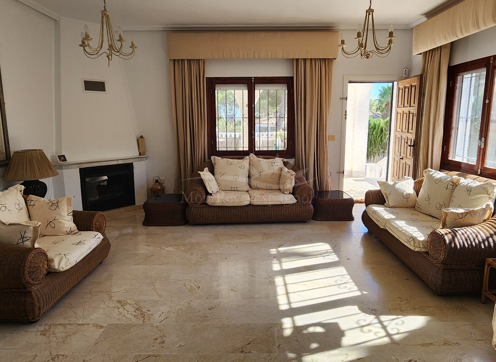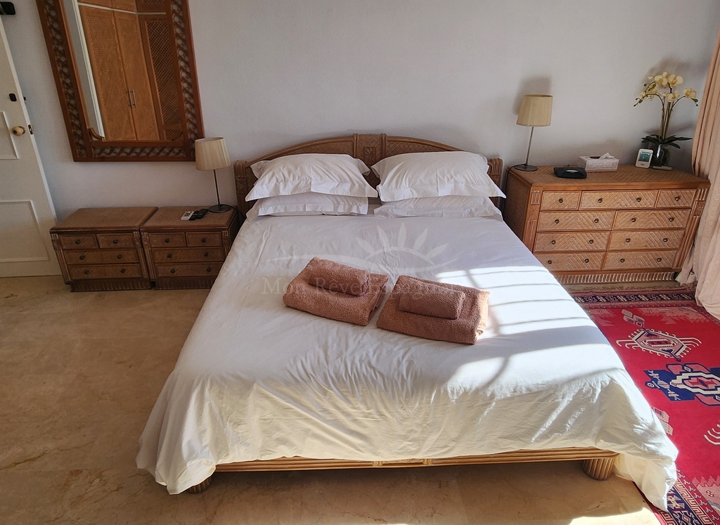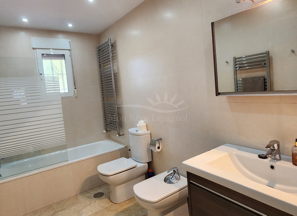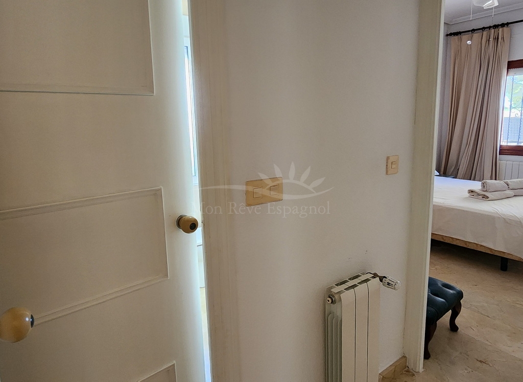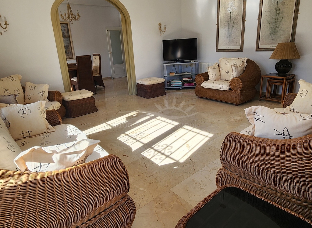 This beautiful property, laid out entirely on one level, offers a bright and functional living space. The spacious living room with fireplace – as well as the kitchen – has direct access to a large covered terrace, ideal for year-round enjoyment.