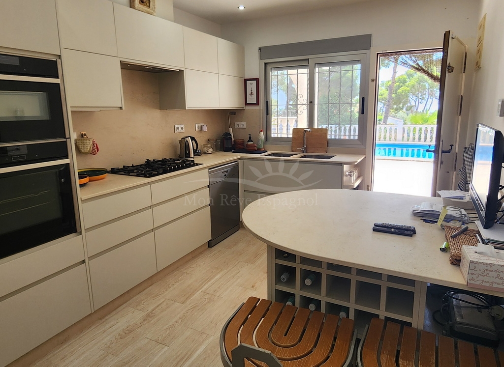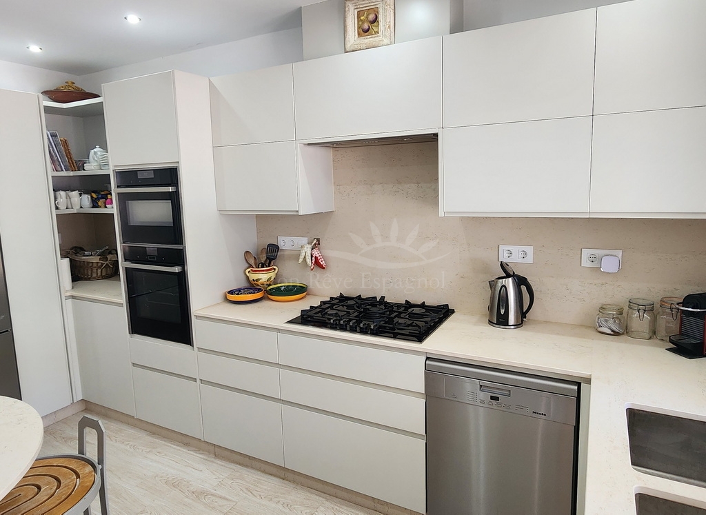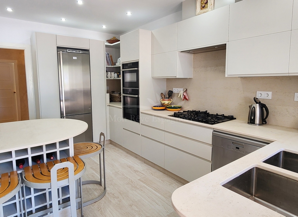 The house features a dining room, 4 bedrooms with built-in wardrobes (one of which is currently used as an office), and 3 bathrooms, two of them en suite – ensuring maximum privacy and comfort. As exceptional extras, it includes a summer kitchen for outdoor gatherings, a laundry room, several storage rooms, and a boiler room.