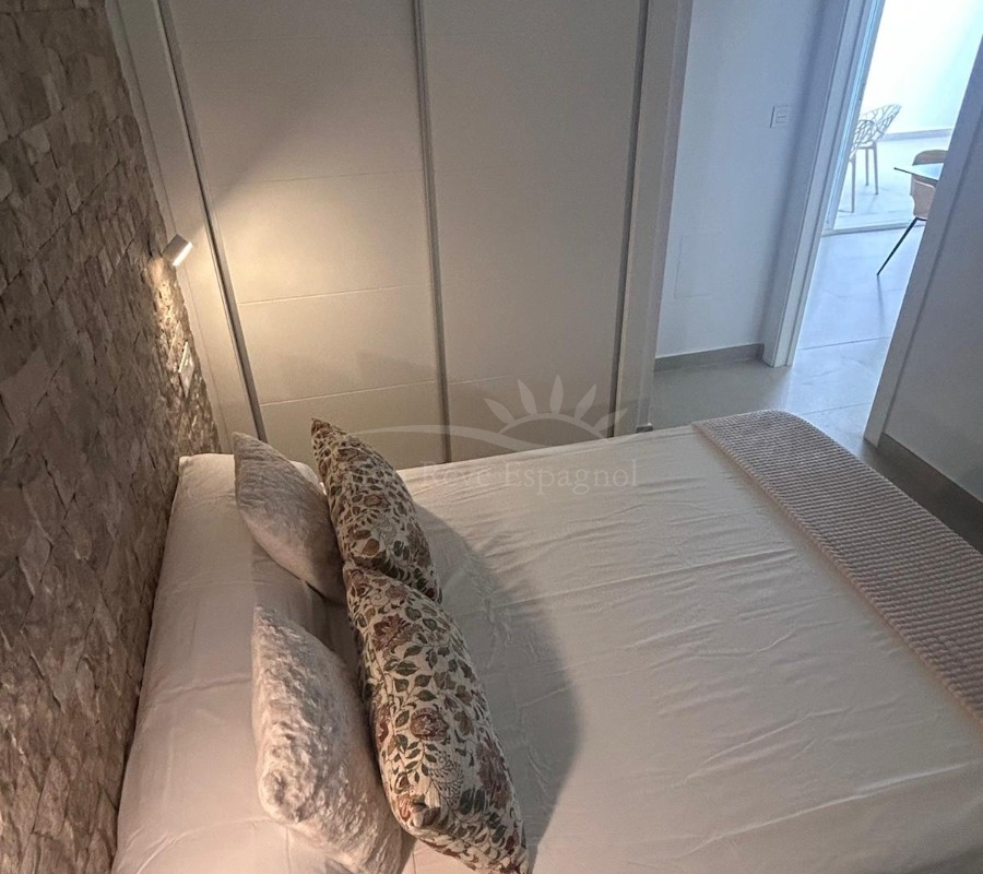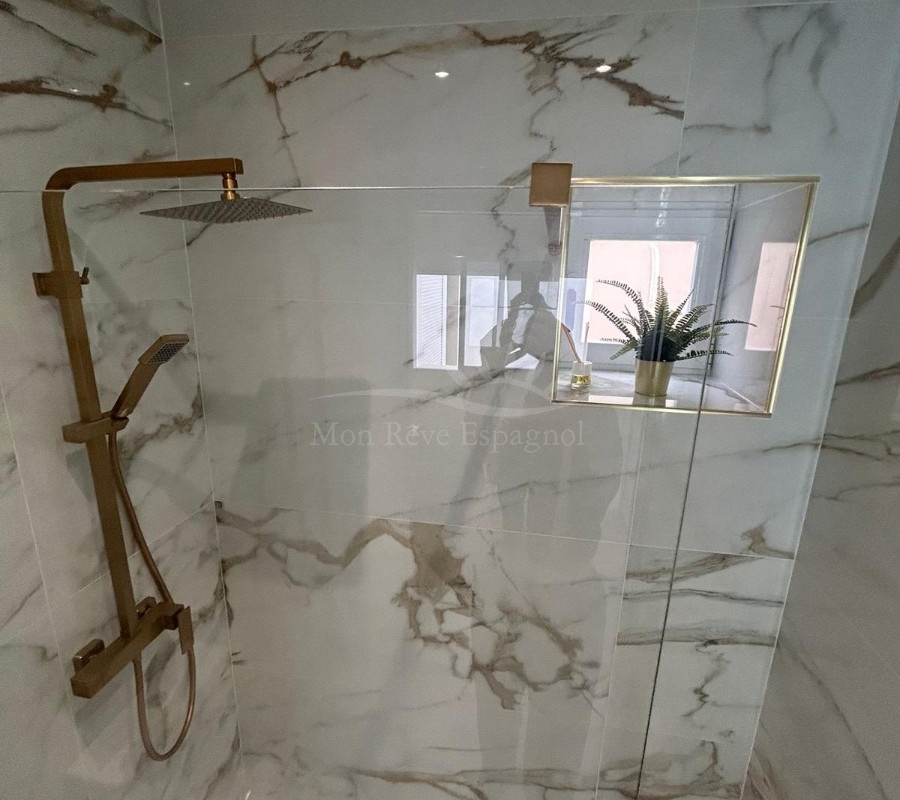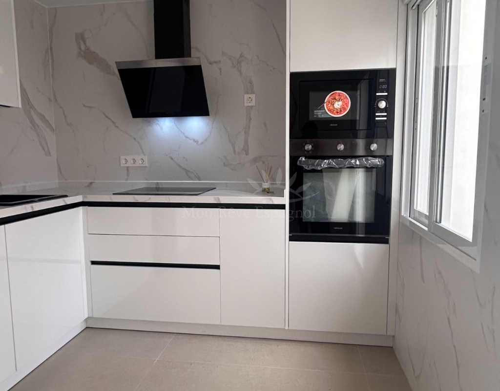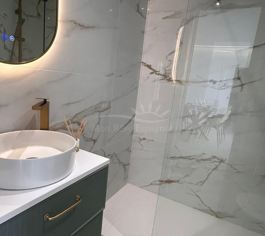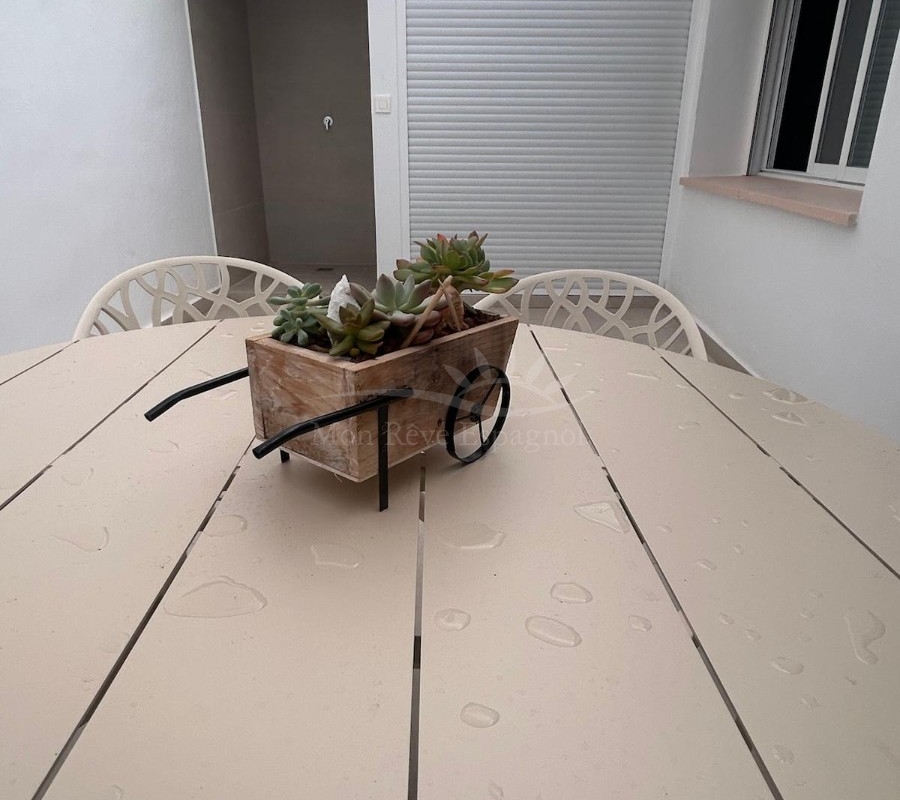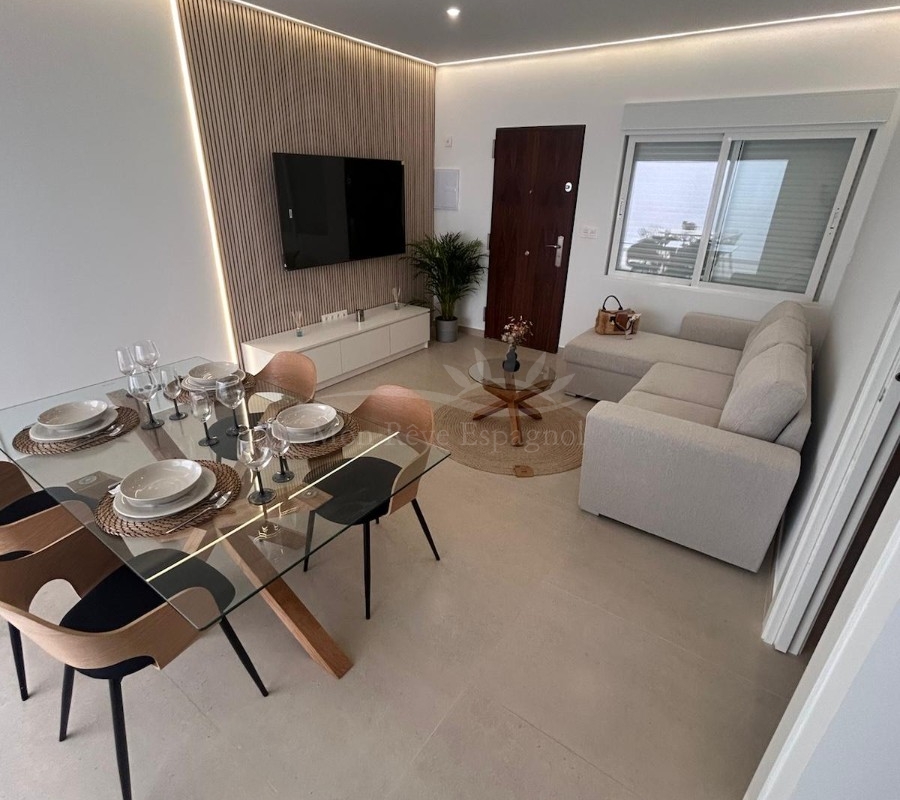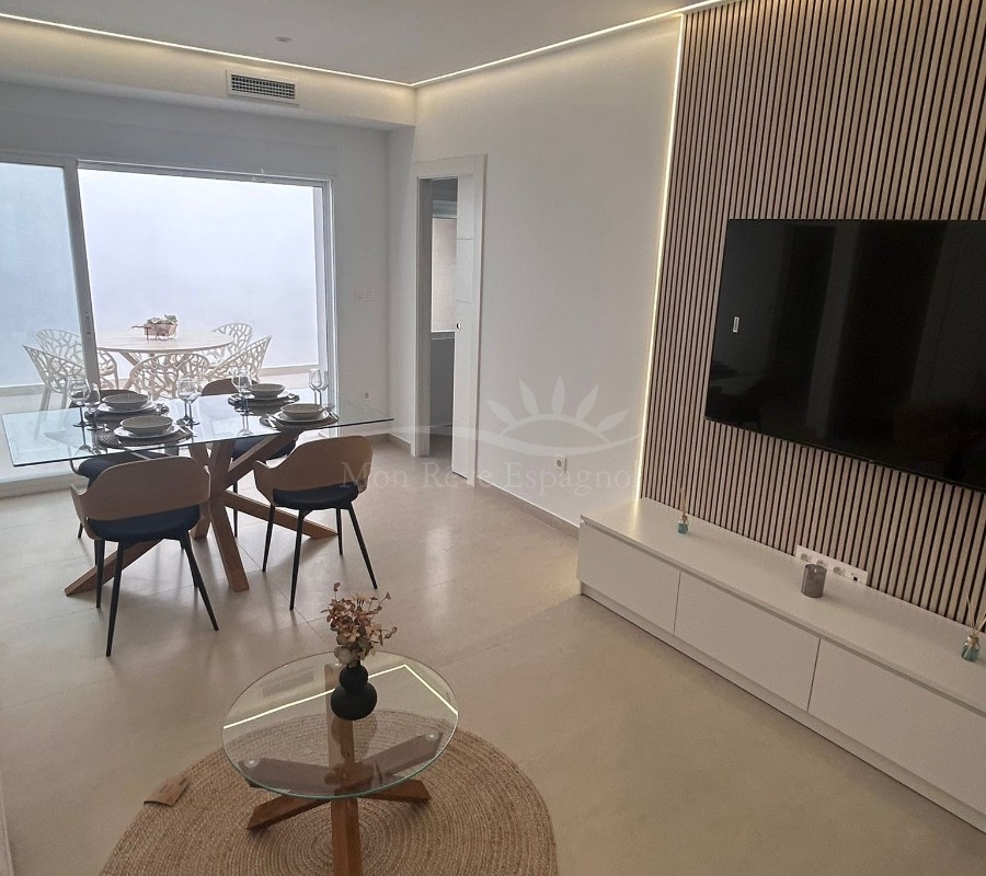 Step into this stunning fully renovated ground-floor terraced bungalow, perfectly located just 100 metres from the beach in the sought-after area of Lo Pagán.