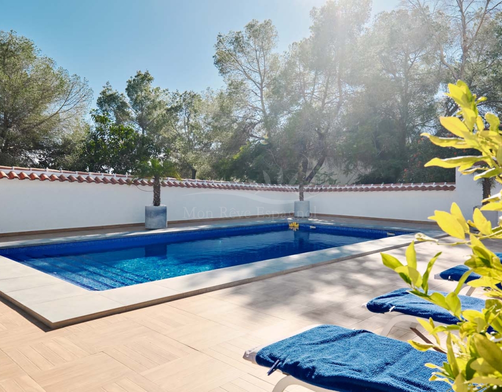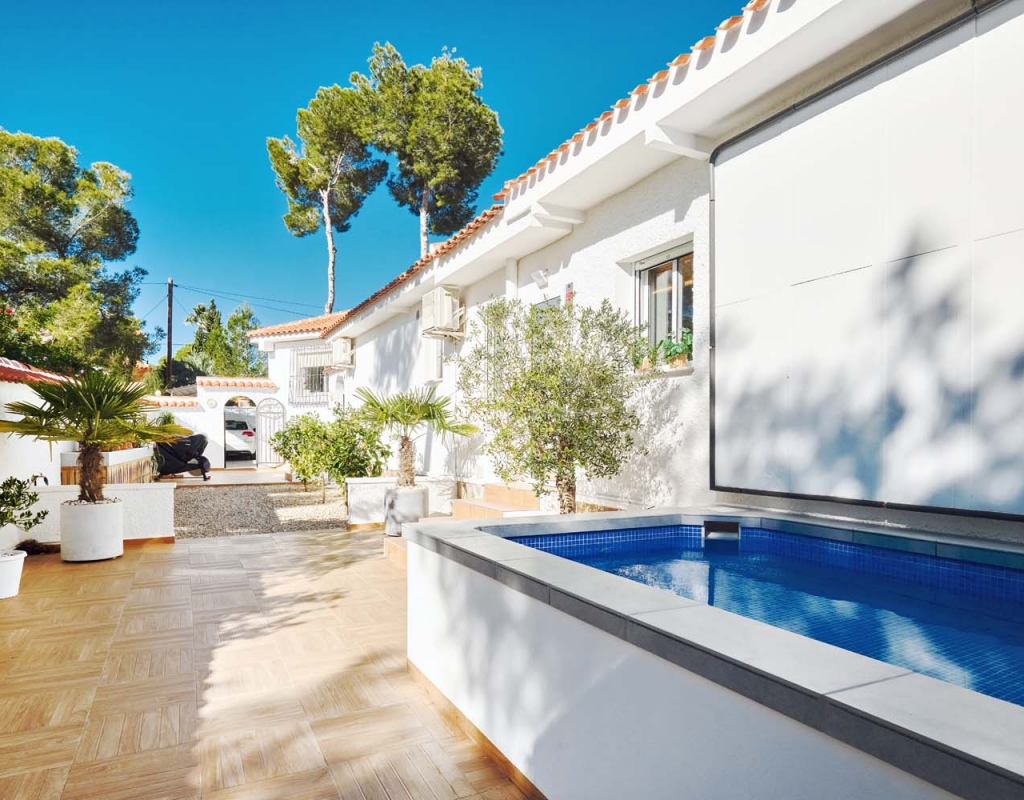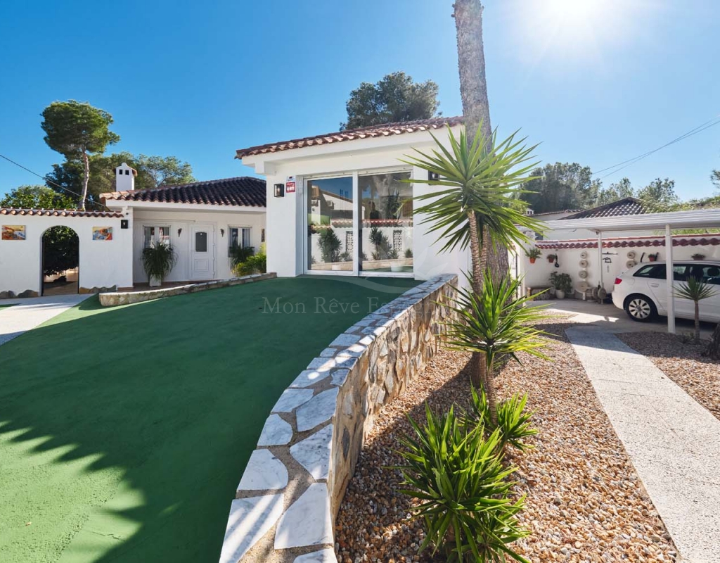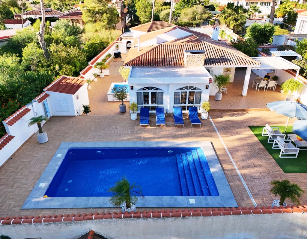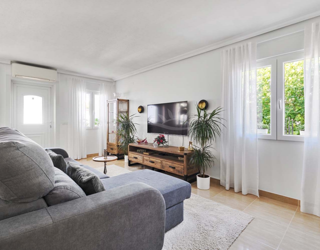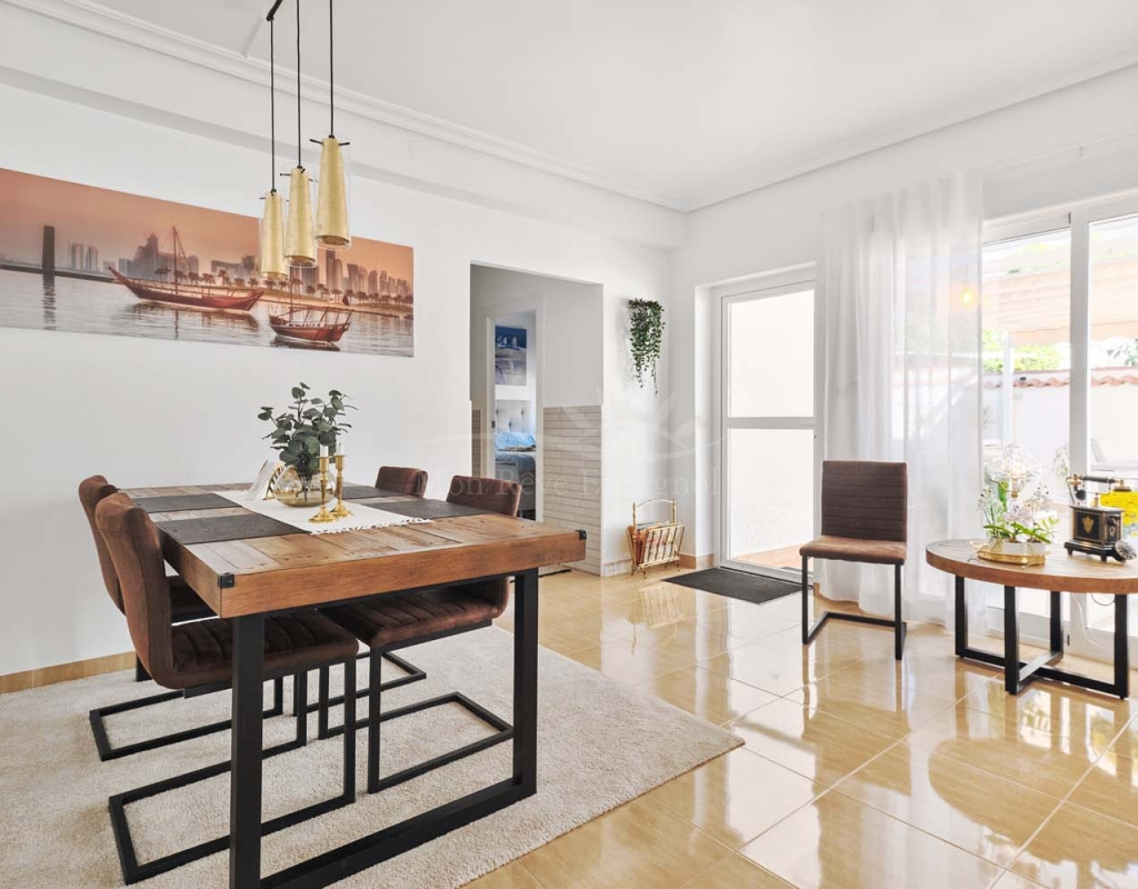 Located in the sought-after village of Pinar de Campoverde, this magnificent 3-bedroom, 2-bathroom villa is a true haven of peace. Nestled in a quiet cul-de-sac bordering the Rio Seco Natural Park, it offers complete privacy while being only 10 km from the Blue Flag beaches of Torre de la Horadada and Mil Palmeras.
