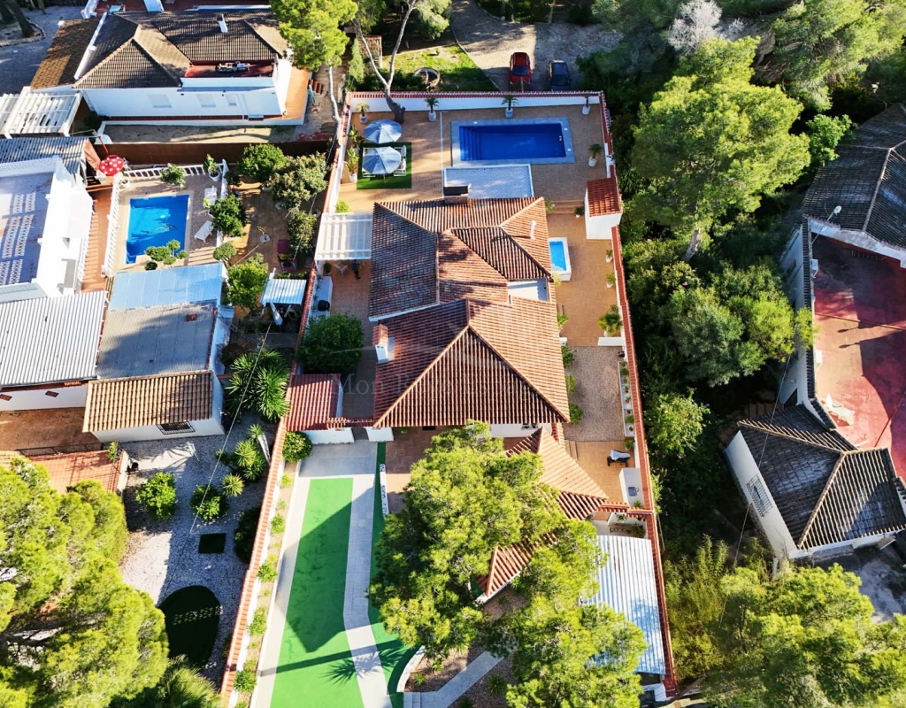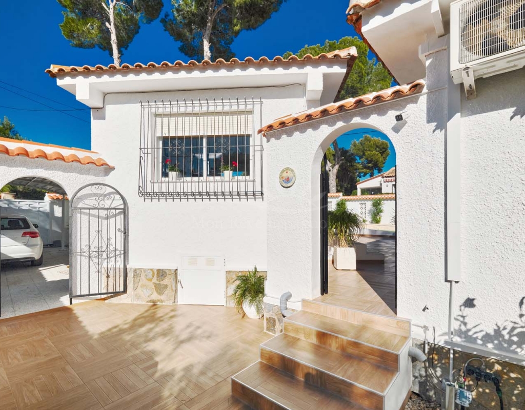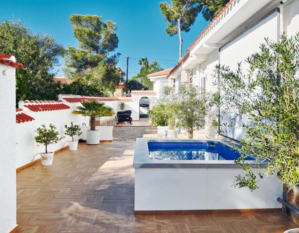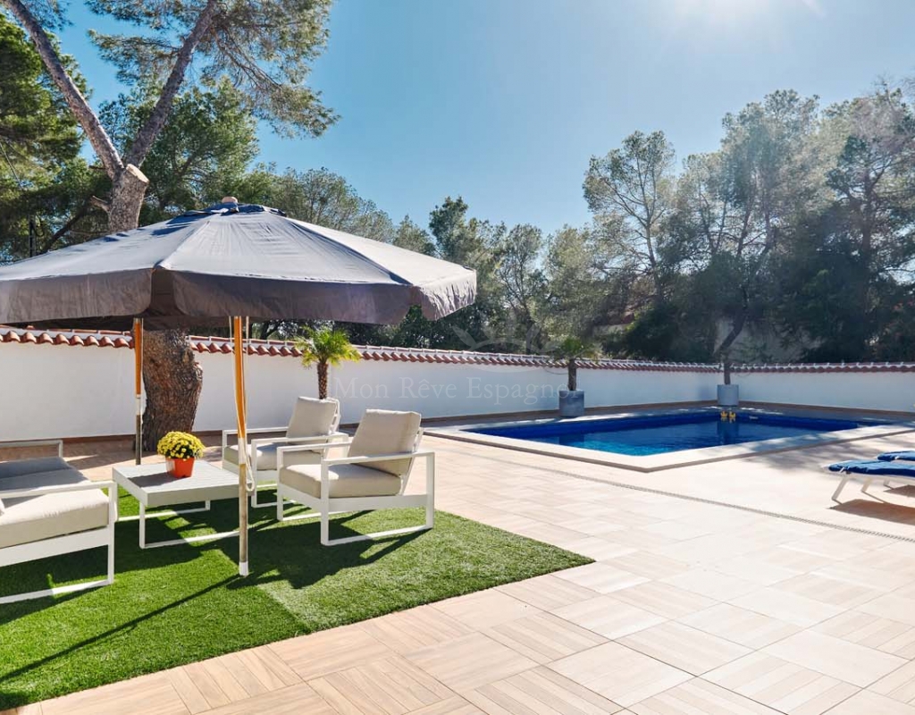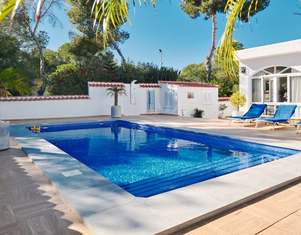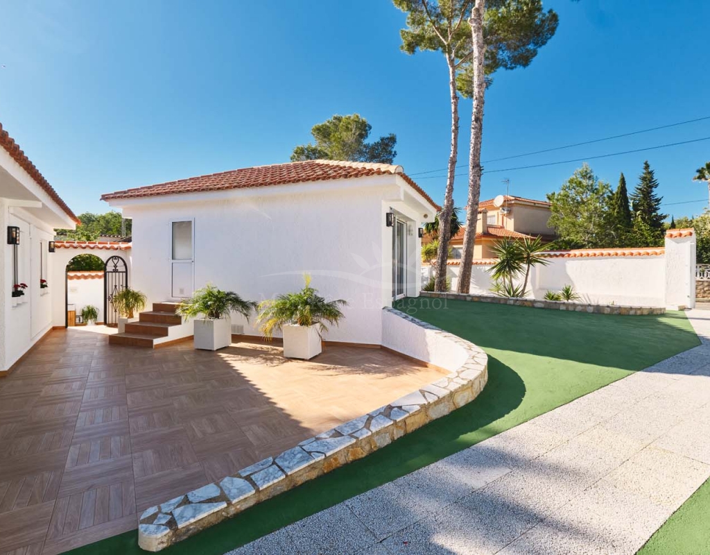 Located in the sought-after village of Pinar de Campoverde, this magnificent 3-bedroom, 2-bathroom villa is a true haven of peace. Nestled in a quiet cul-de-sac bordering the Rio Seco Natural Park, it offers complete privacy while being only 10 km from the Blue Flag beaches of Torre de la Horadada and Mil Palmeras.