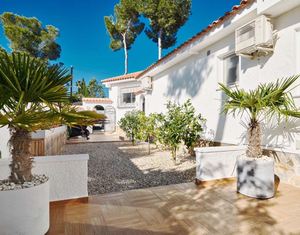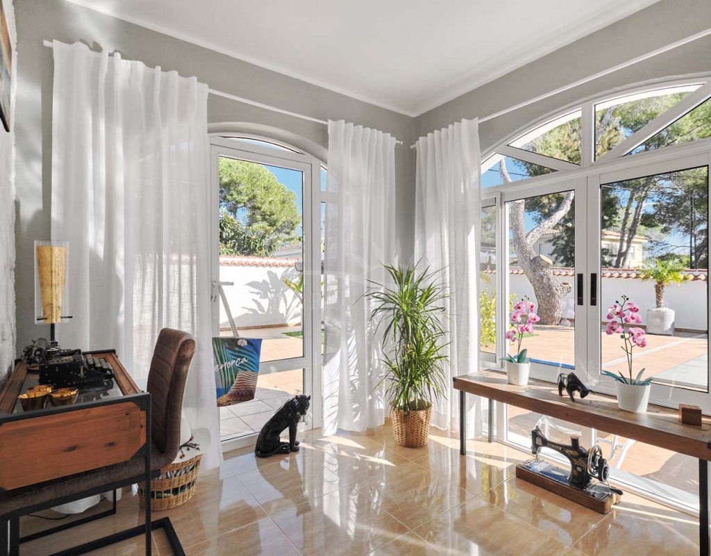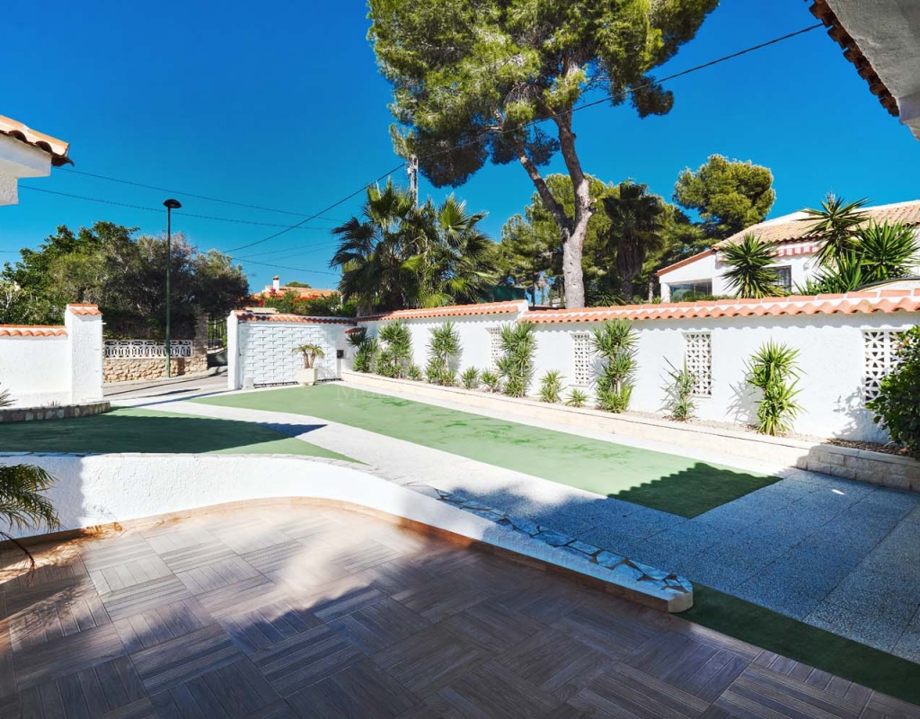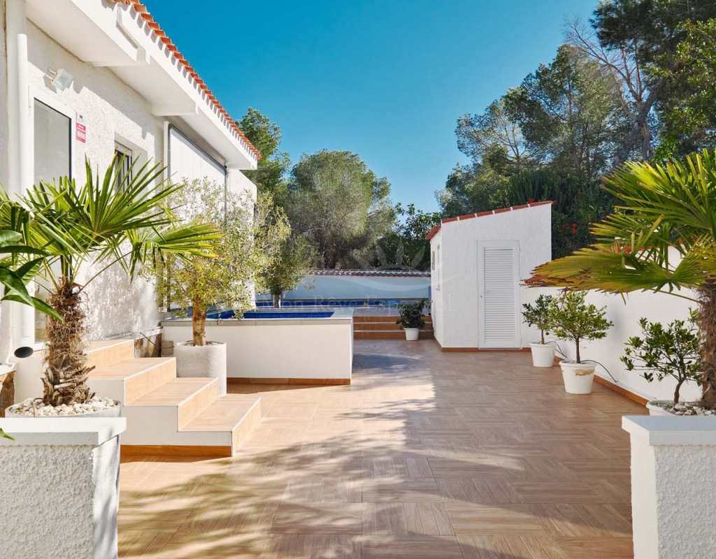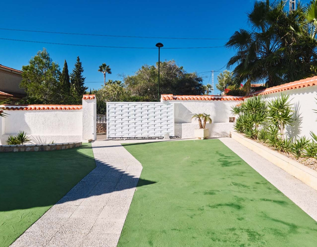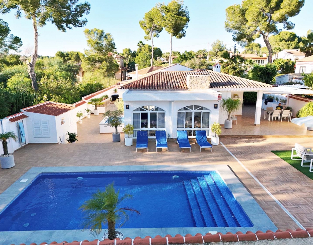 Located in the sought-after village of Pinar de Campoverde, this magnificent 3-bedroom, 2-bathroom villa is a true haven of peace. Nestled in a quiet cul-de-sac bordering the Rio Seco Natural Park, it offers complete privacy while being only 10 km from the Blue Flag beaches of Torre de la Horadada and Mil Palmeras.