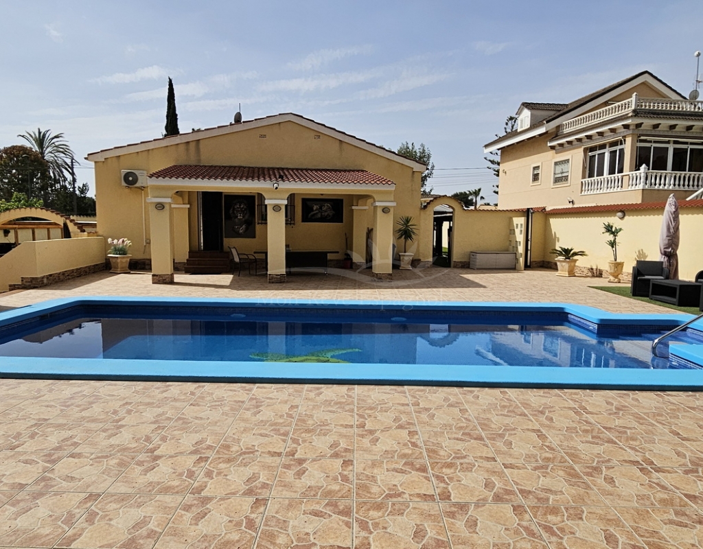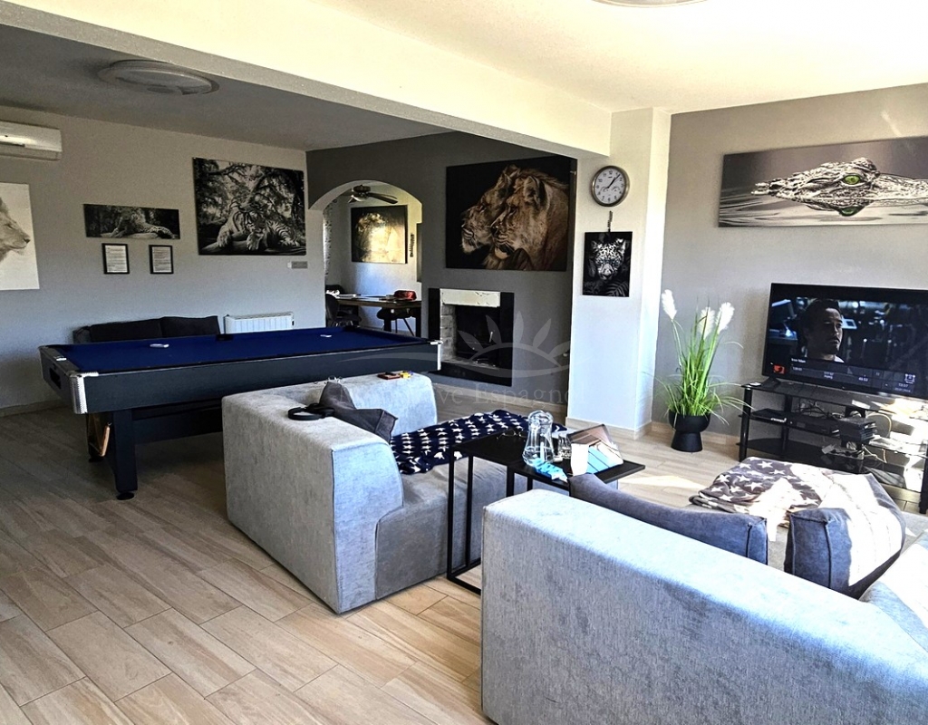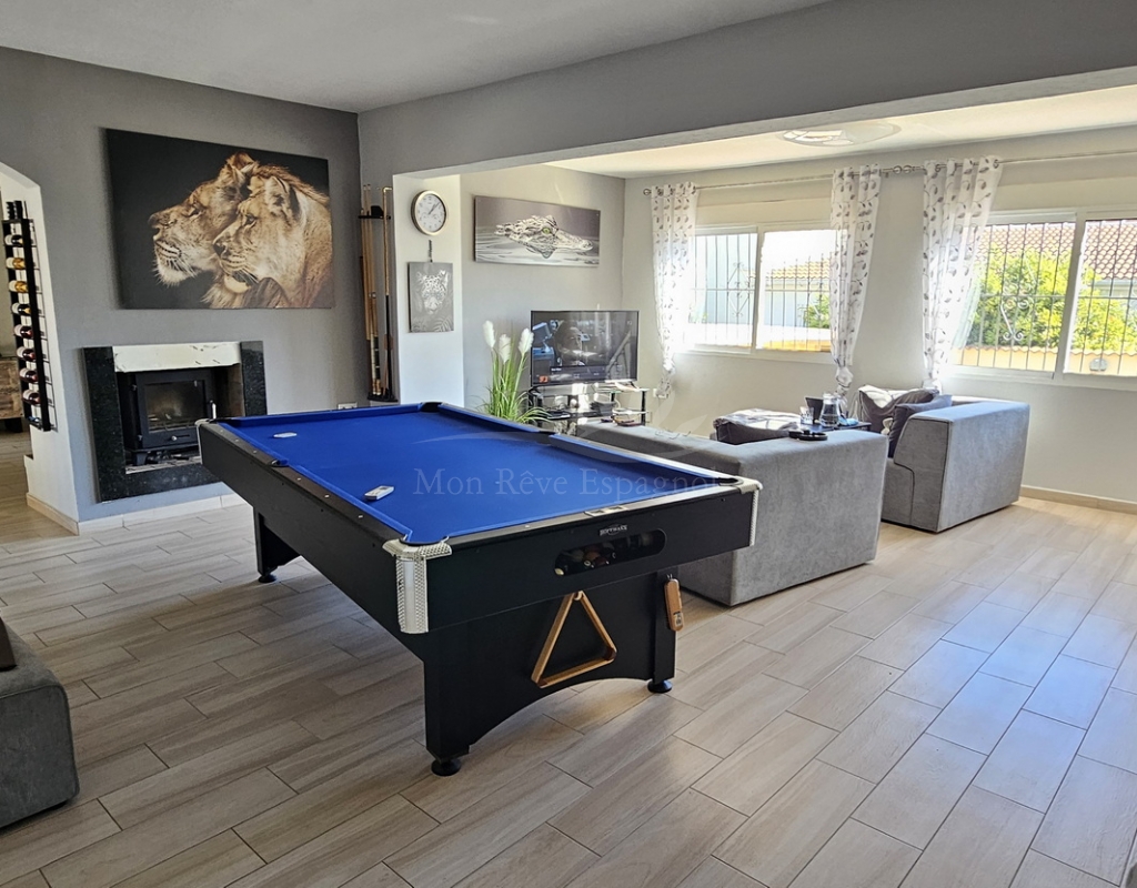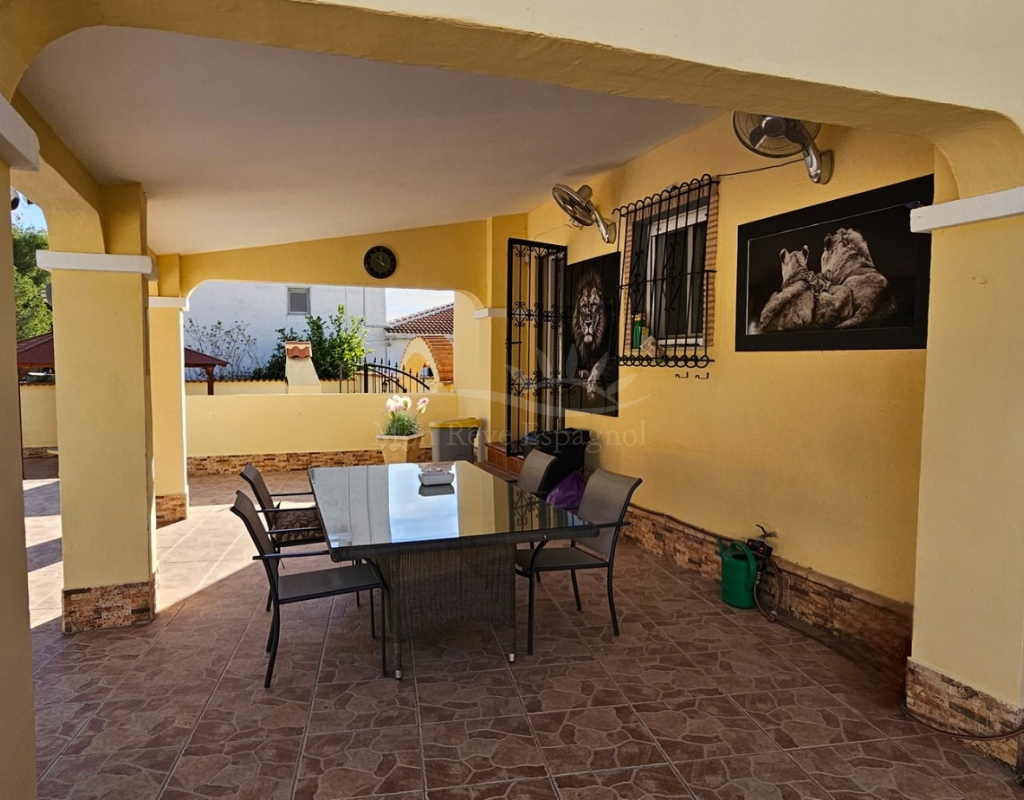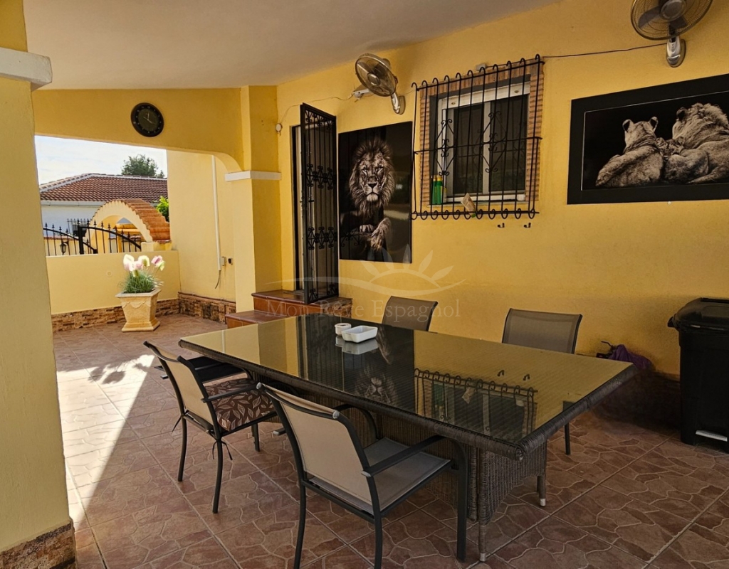 Outside, the property offers parking space for several vehicles, a covered carport for two cars, a gym, barbecue area, wooden shed, swimming pool, covered terrace and a large terrace surrounding the pool.