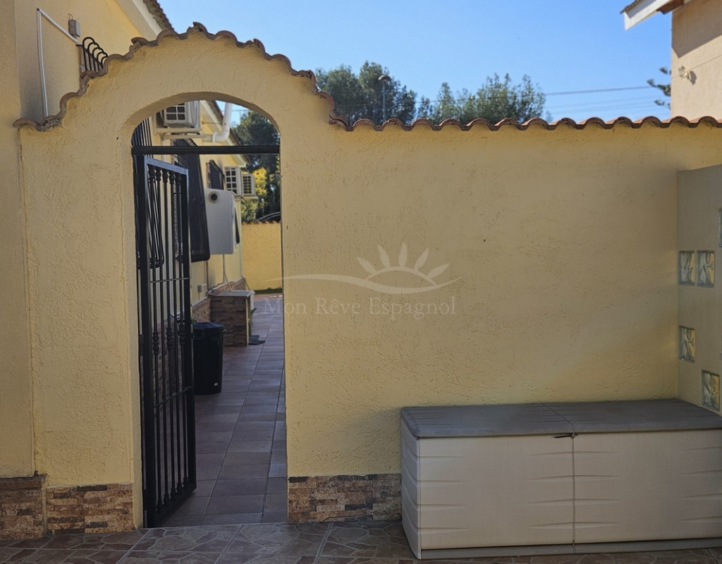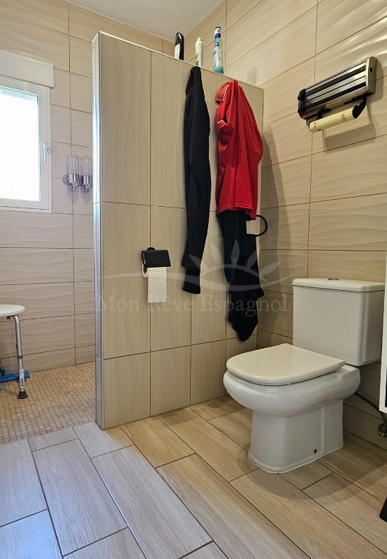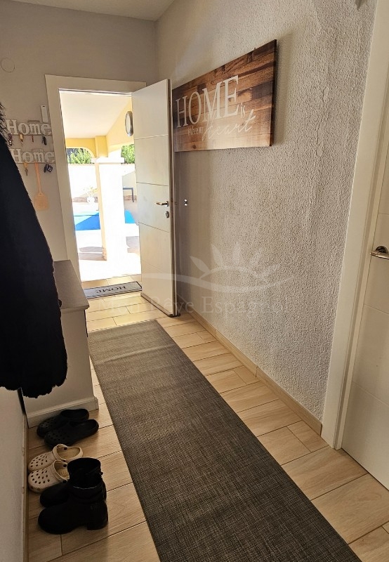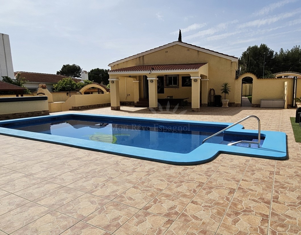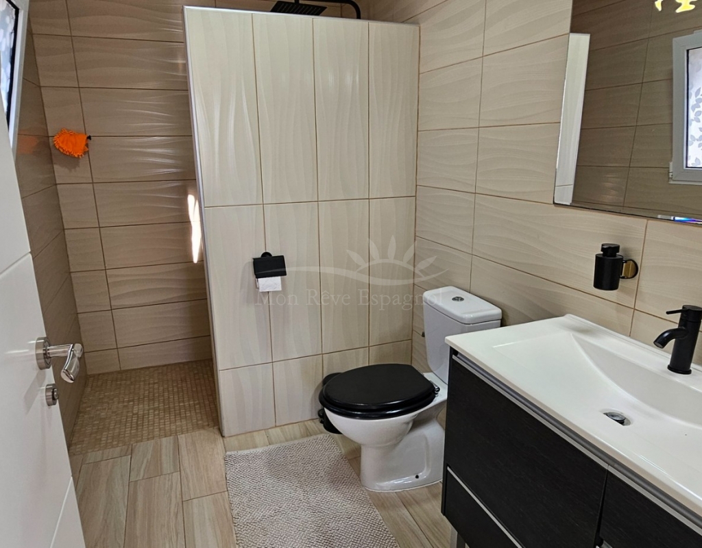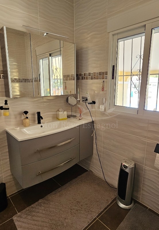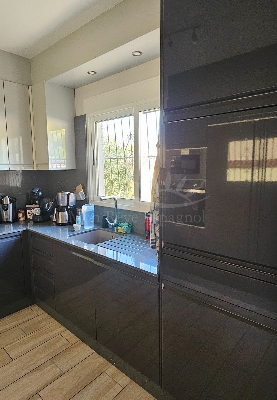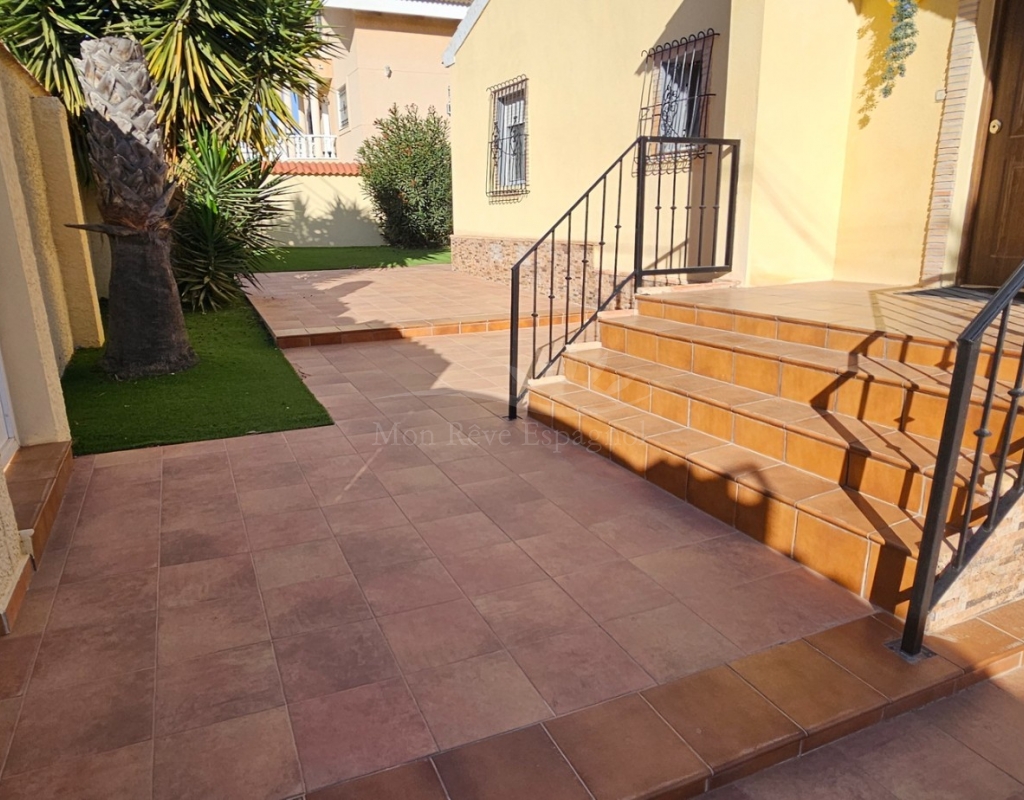 Single-storey villa with 175 m² of built area, set on a completely flat 864 m² plot. The property features a spacious and bright living room, dining area, fully equipped kitchen, four bedrooms and three bathrooms, two of them en suite.