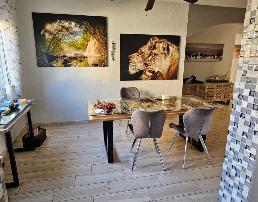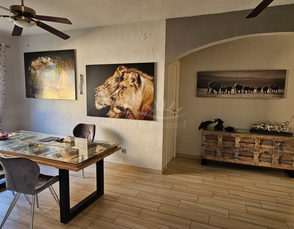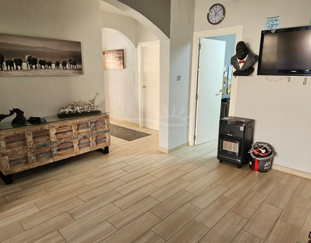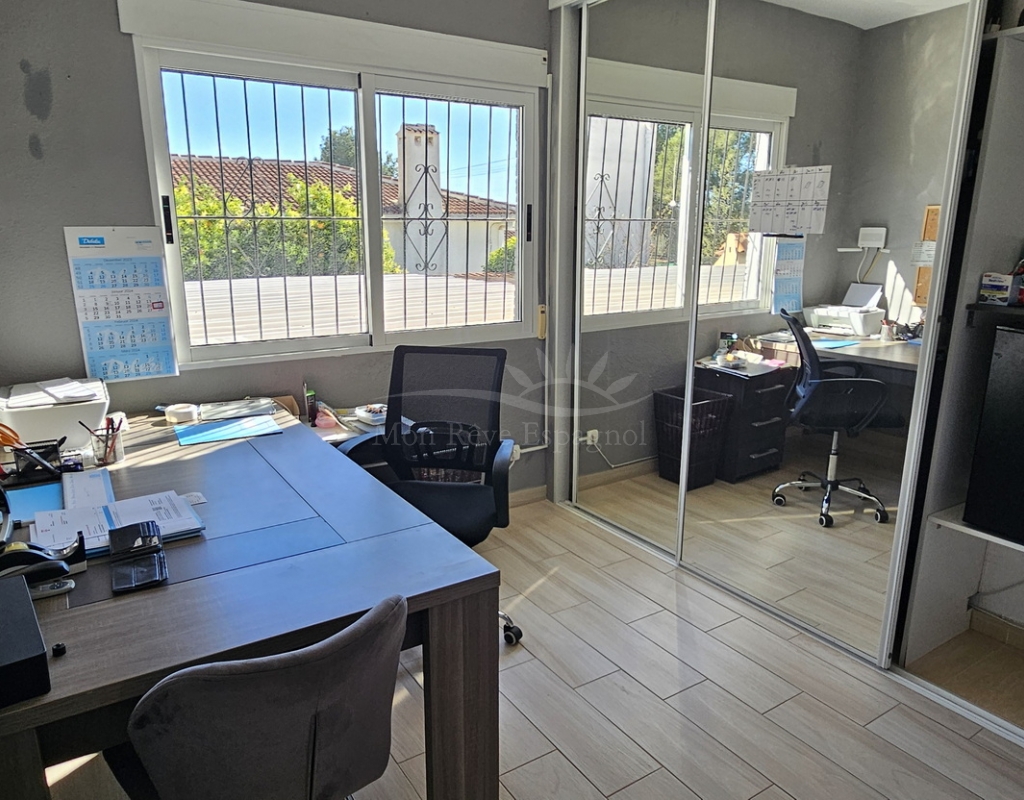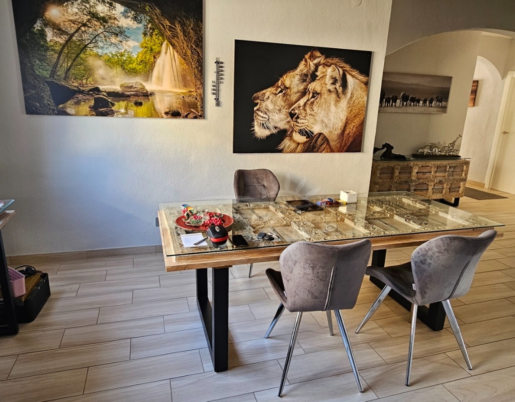 Single-storey villa with 175 m² of built area, set on a completely flat 864 m² plot. The property features a spacious and bright living room, dining area, fully equipped kitchen, four bedrooms and three bathrooms, two of them en suite.