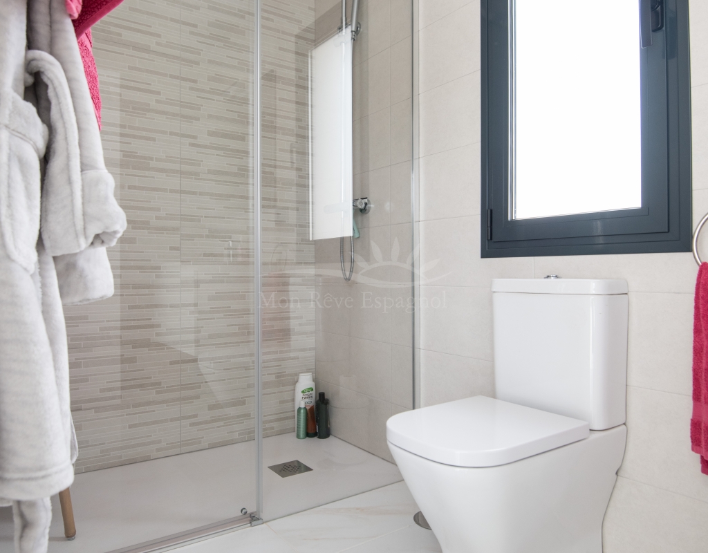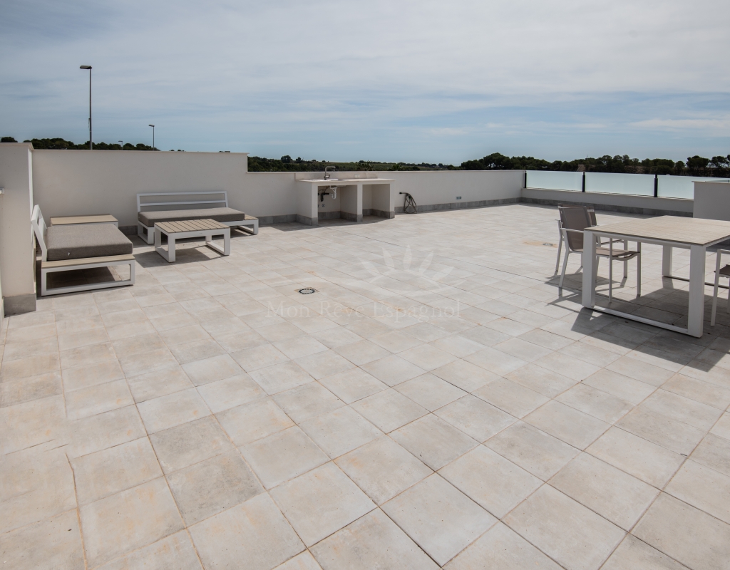 They have a plot that can vary from 300 to 349 m2, fully fenced and all have the option of a private pool, there is also a barbecue area and the solarium is accessed by an external staircase.