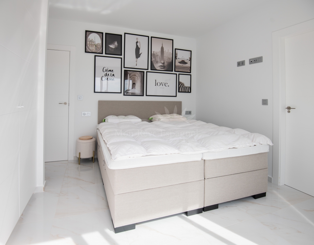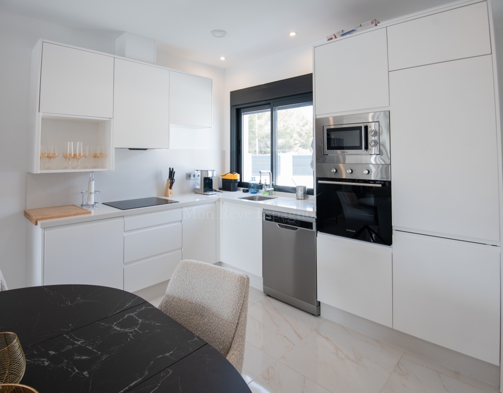 These properties are bright, and are built to high specifications, including pre-installation of ducted air conditioning, video intercom, motorised entrance gate, interior and exterior lighting, TV and telephone sockets in all rooms, double glazed windows with shutters.