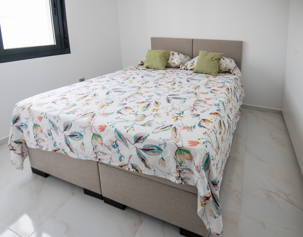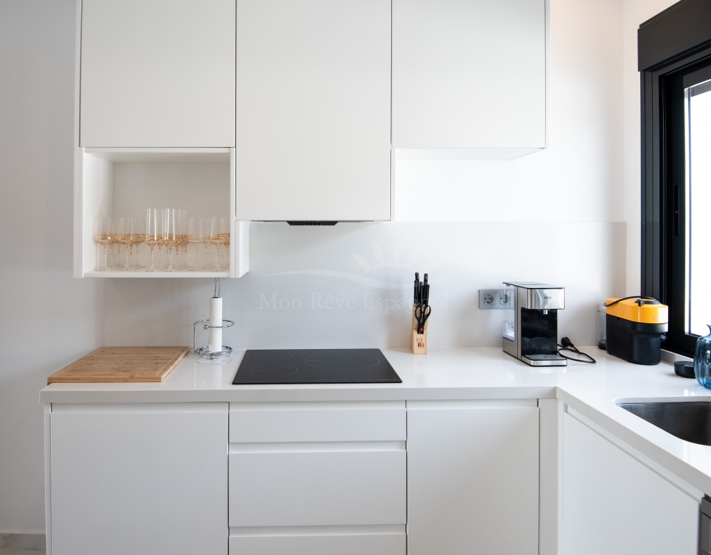 They are distributed on one floor with an entrance hall, living/dining room with open kitchen and views of the pool/garden, 3 bedrooms with fitted wardrobes and 2 bathrooms (one of them en suite).