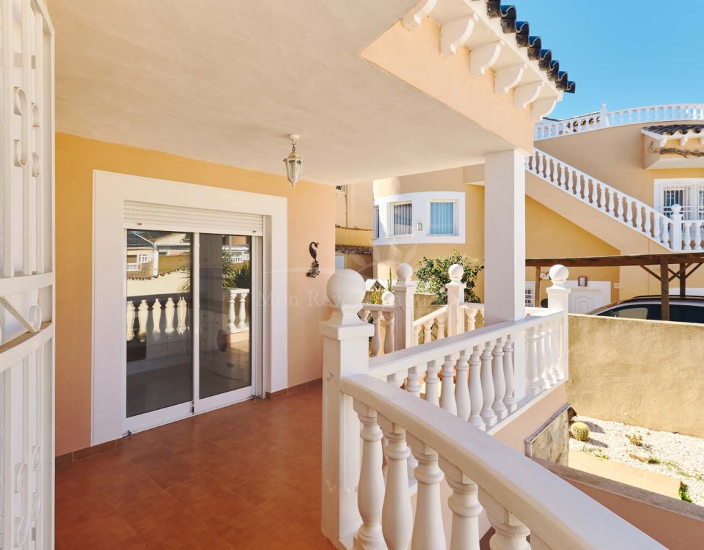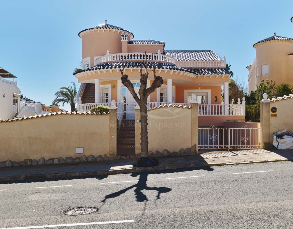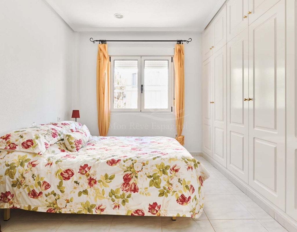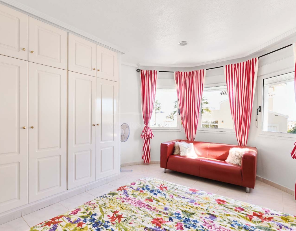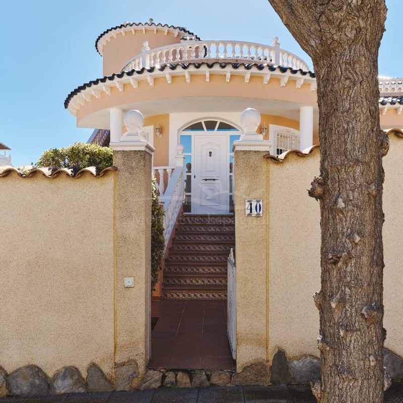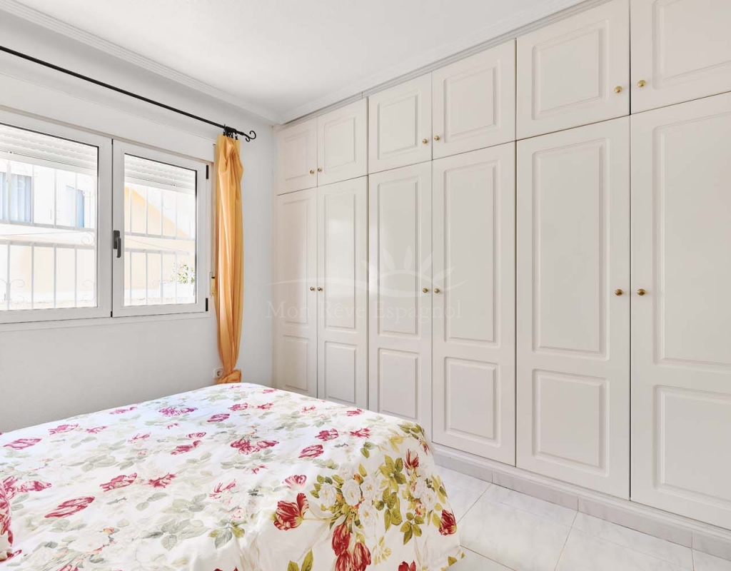 Un punto destacado de esta propiedad es su dormitorio de invitados con baño en suite, ubicado en la primera planta, al que se accede por una escalera exterior lateral. Este dormitorio tiene acceso a un amplio solárium privado con impresionantes vistas al mar. En la misma planta se encuentra un práctico trastero, que muchas propiedades vecinas han reconvertido con éxito en un dormitorio adicional, lo que ofrece la posibilidad de ampliar la superficie habitable y aumentar el valor de la propiedad.