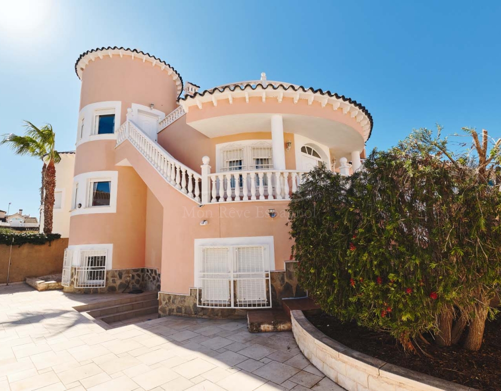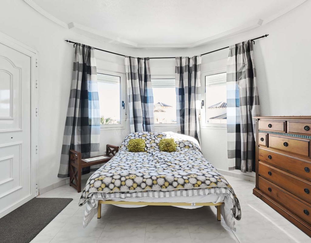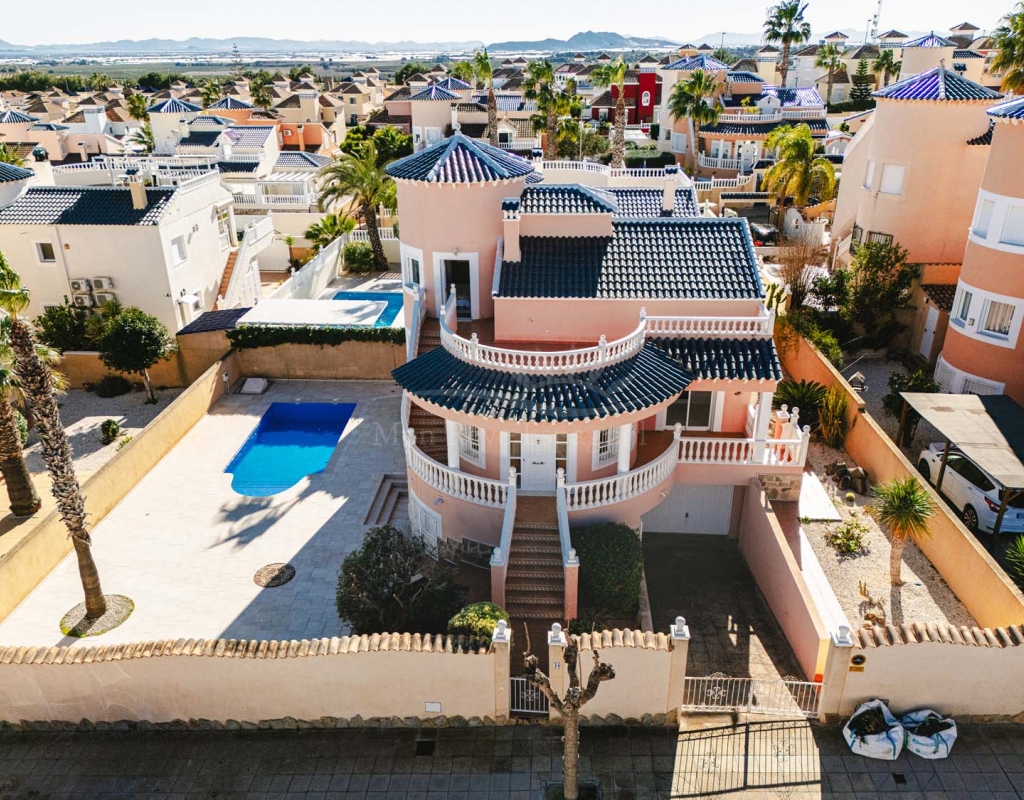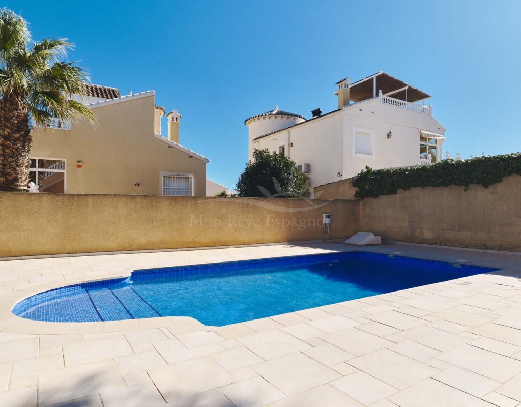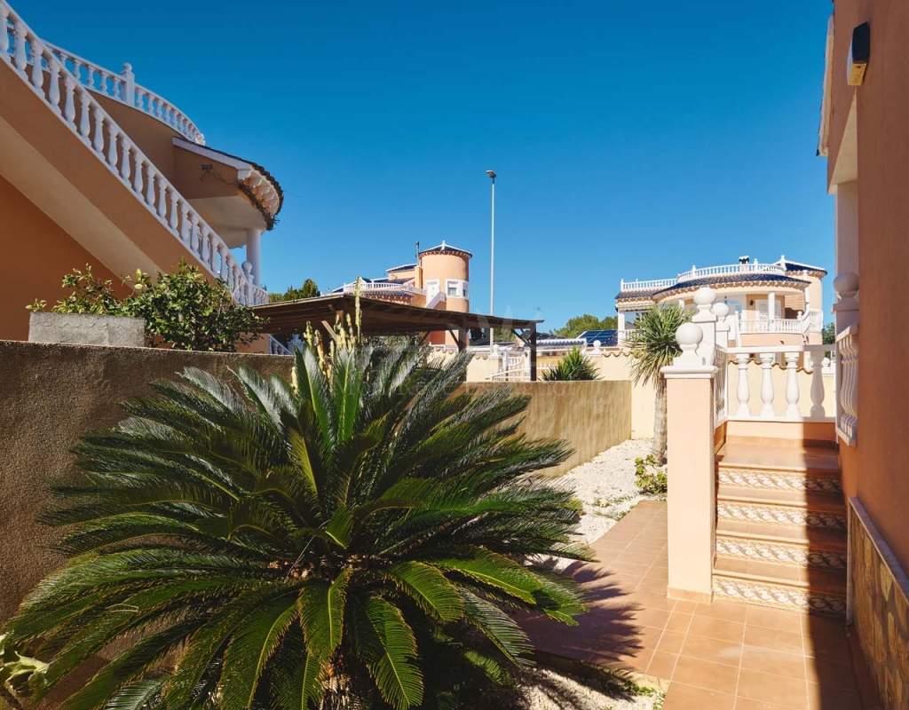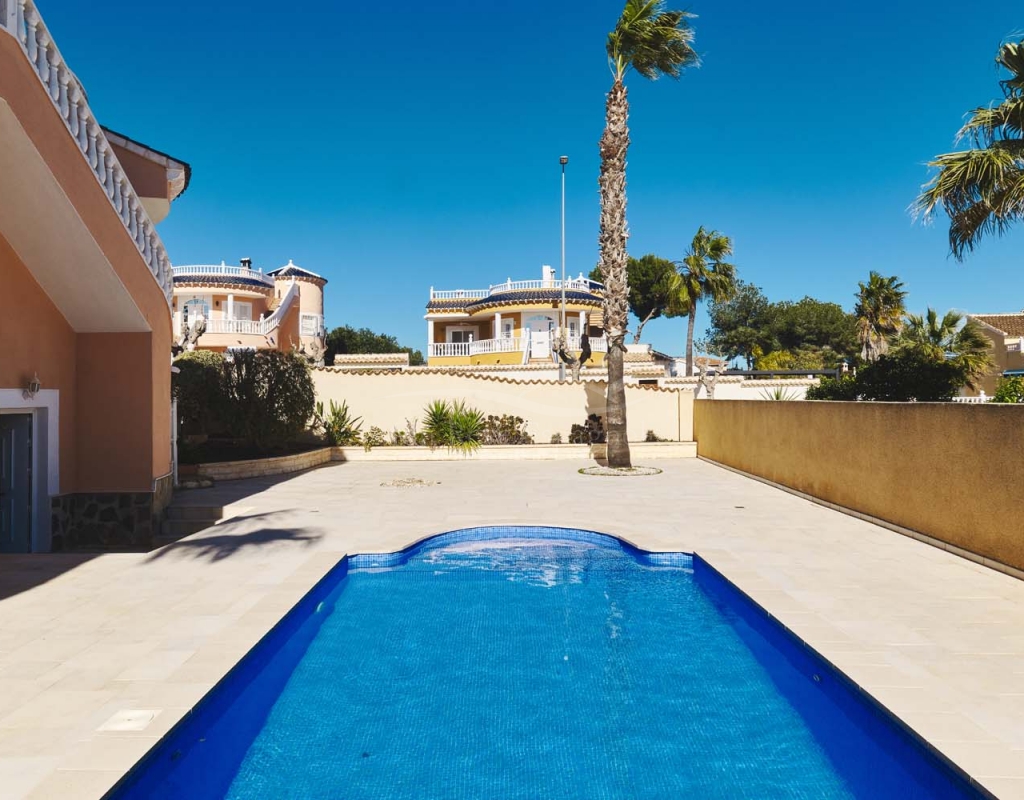 Chalet independiente de tres dormitorios y dos baños, piscina privada y un amplio sótano terminado que ofrece numerosas posibilidades de desarrollo. Ubicado en una zona tranquila y codiciada, cerca de los comercios y servicios del popular pueblo de Pinar de Campoverde, se encuentra a solo 10 km de las playas con Bandera Azul de Torre de la Horadada y Mil Palmeras.