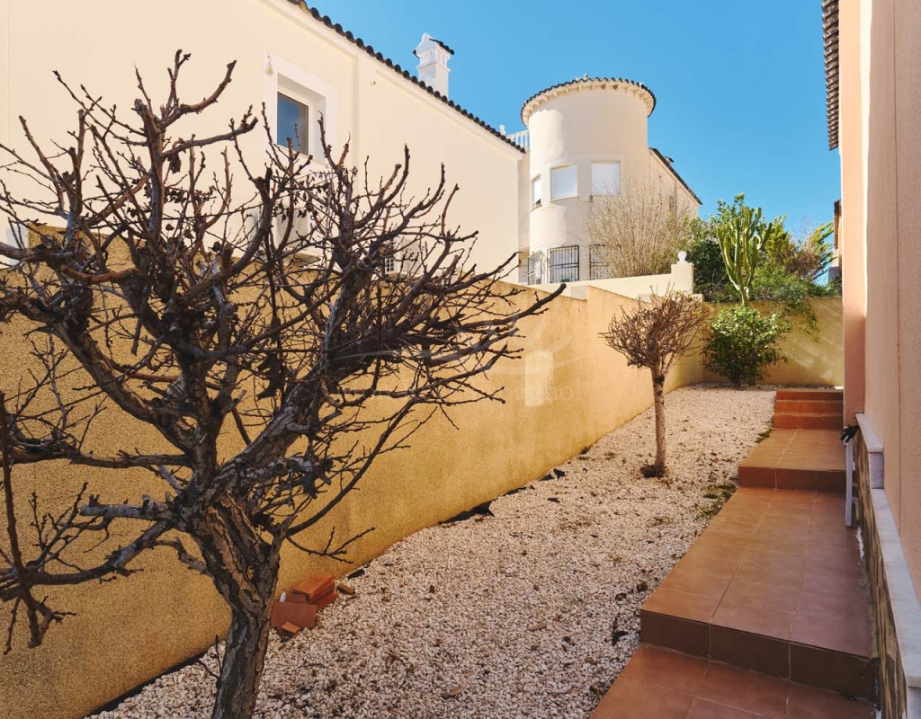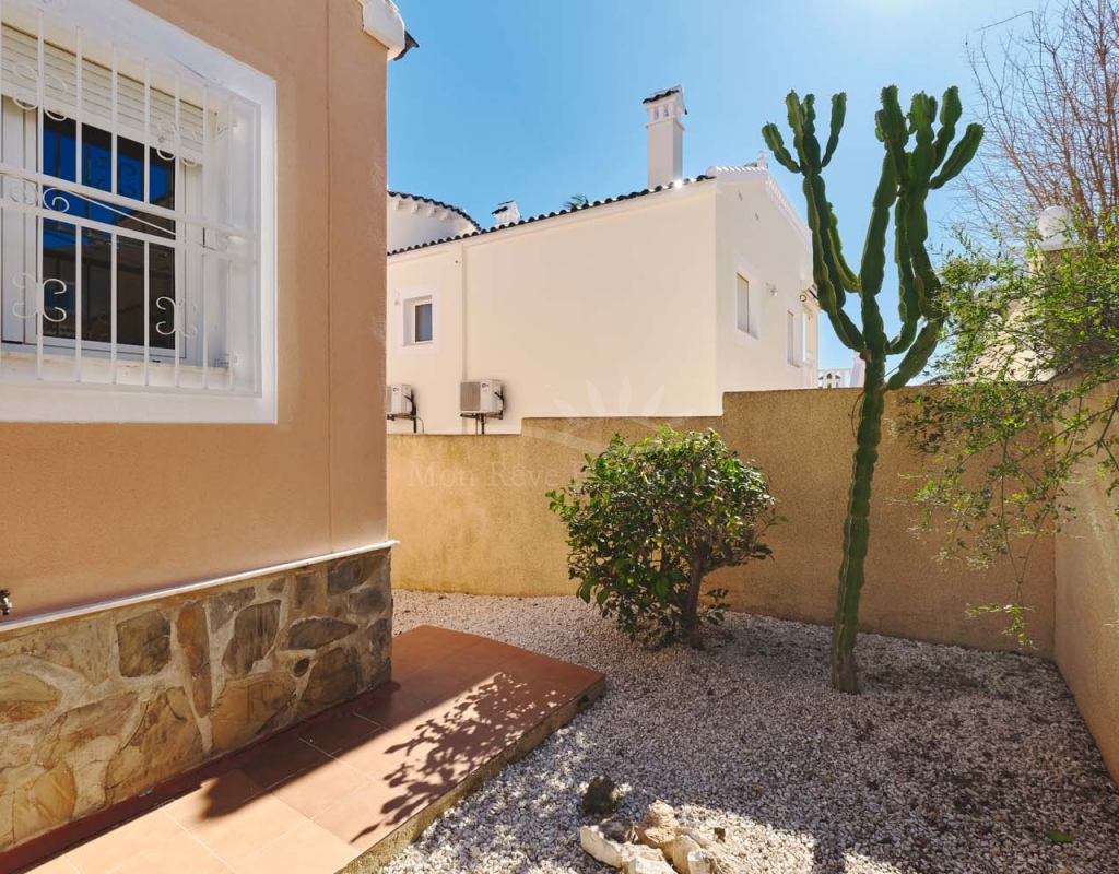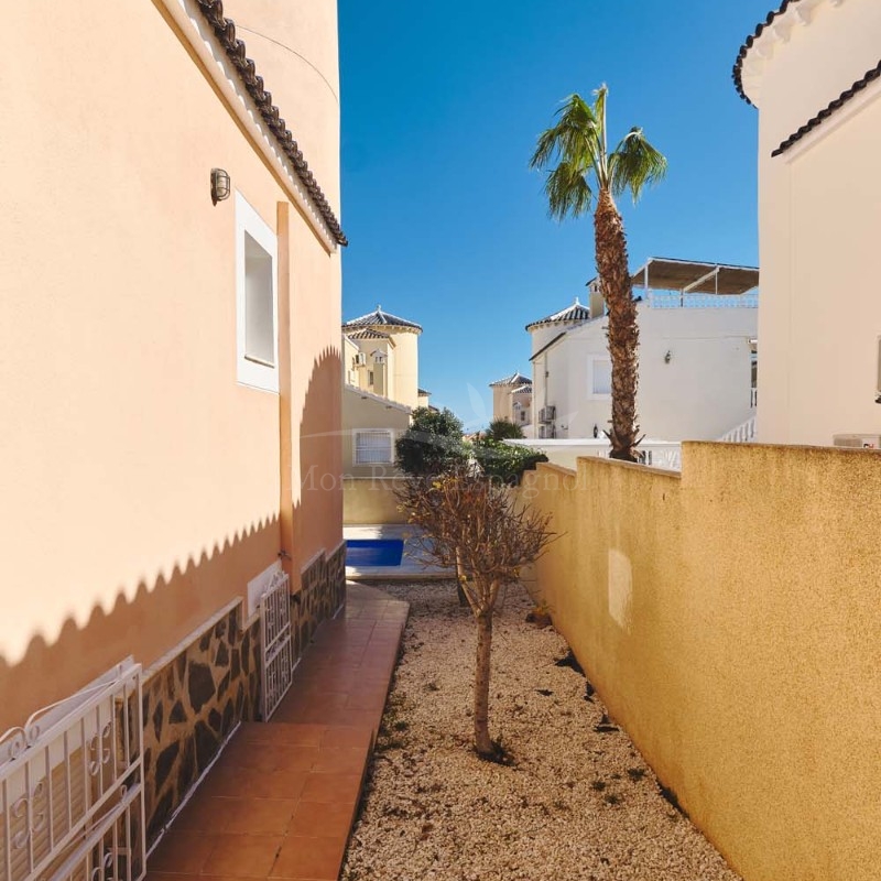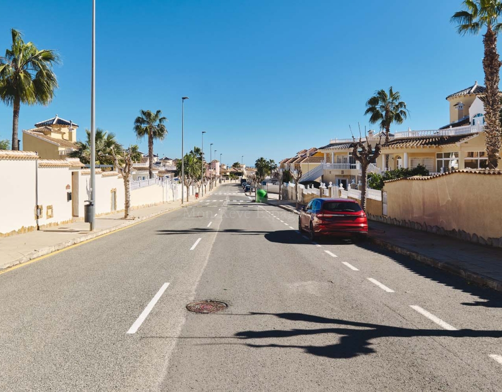 En el exterior, la villa cuenta con una zona exterior privada, ideal para relajarse y disfrutar. El terreno, de fácil mantenimiento, está realzado por árboles y plantas maduras. La zona alrededor de la piscina privada está embaldosada para mayor comodidad y ofrece amplio espacio para una cocina/bar al aire libre y zonas de relax. Se puede aparcar un coche delante de la puerta del garaje y hay amplio aparcamiento en la calle.
