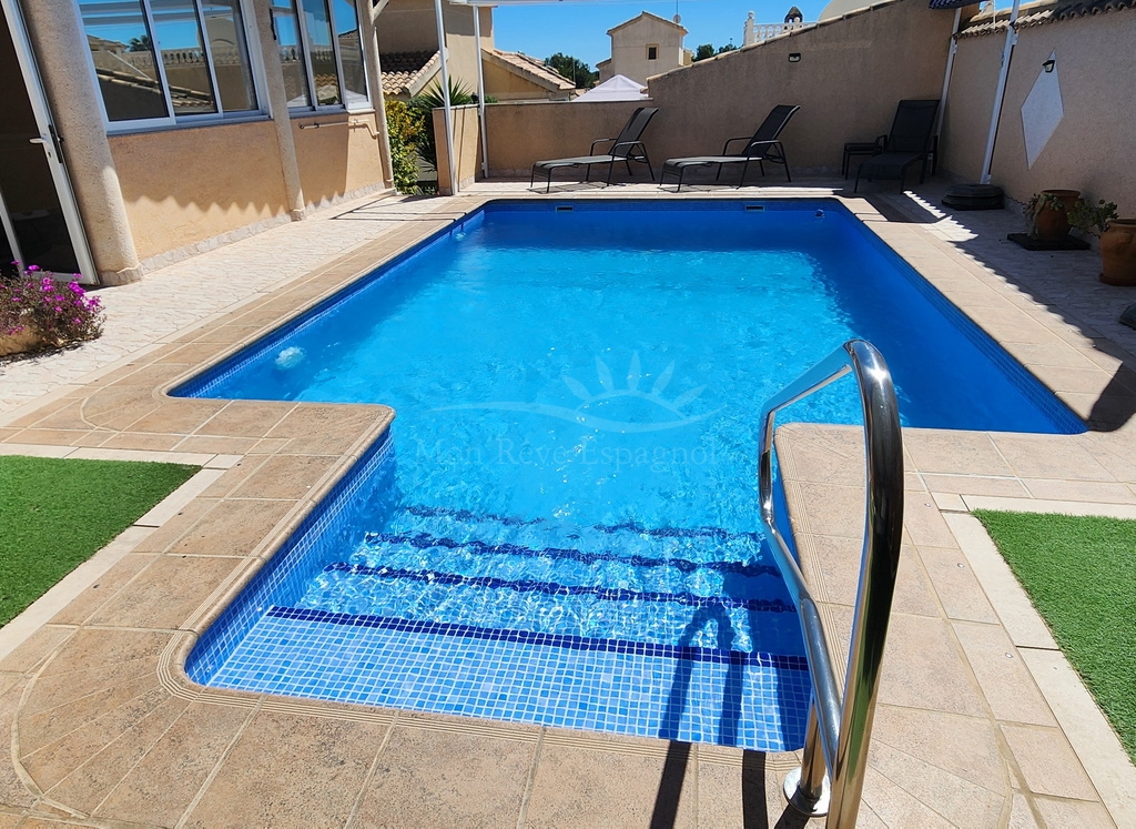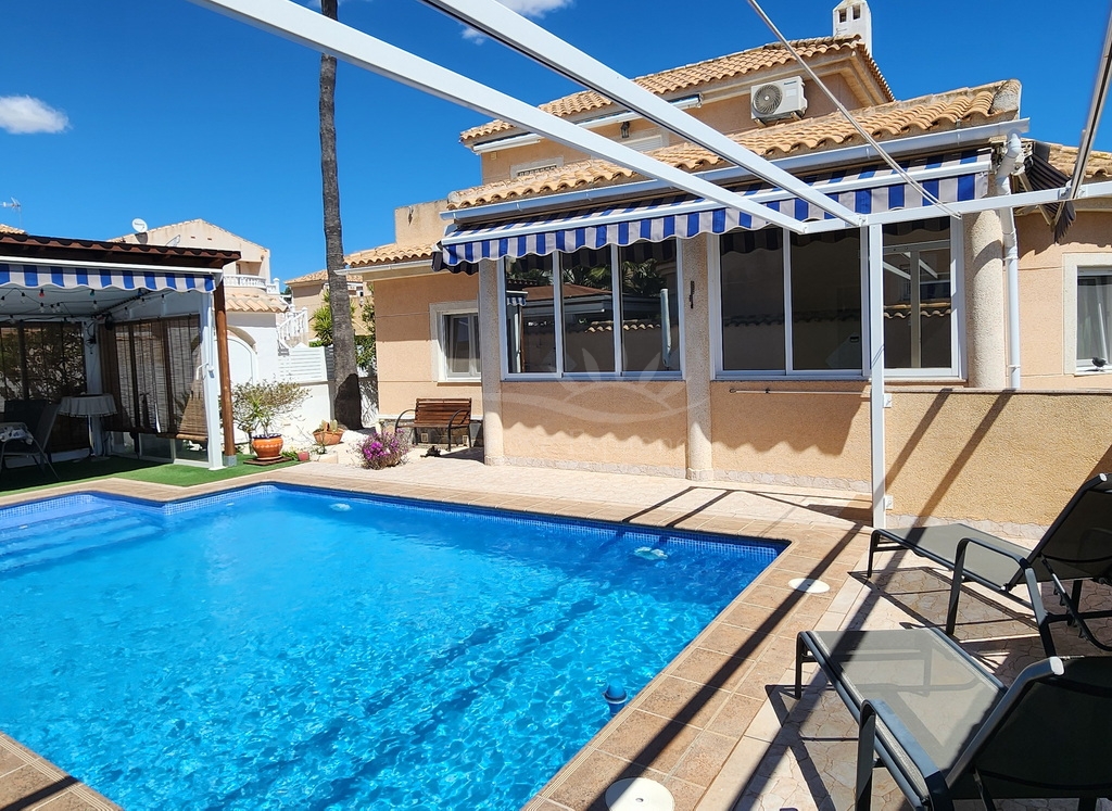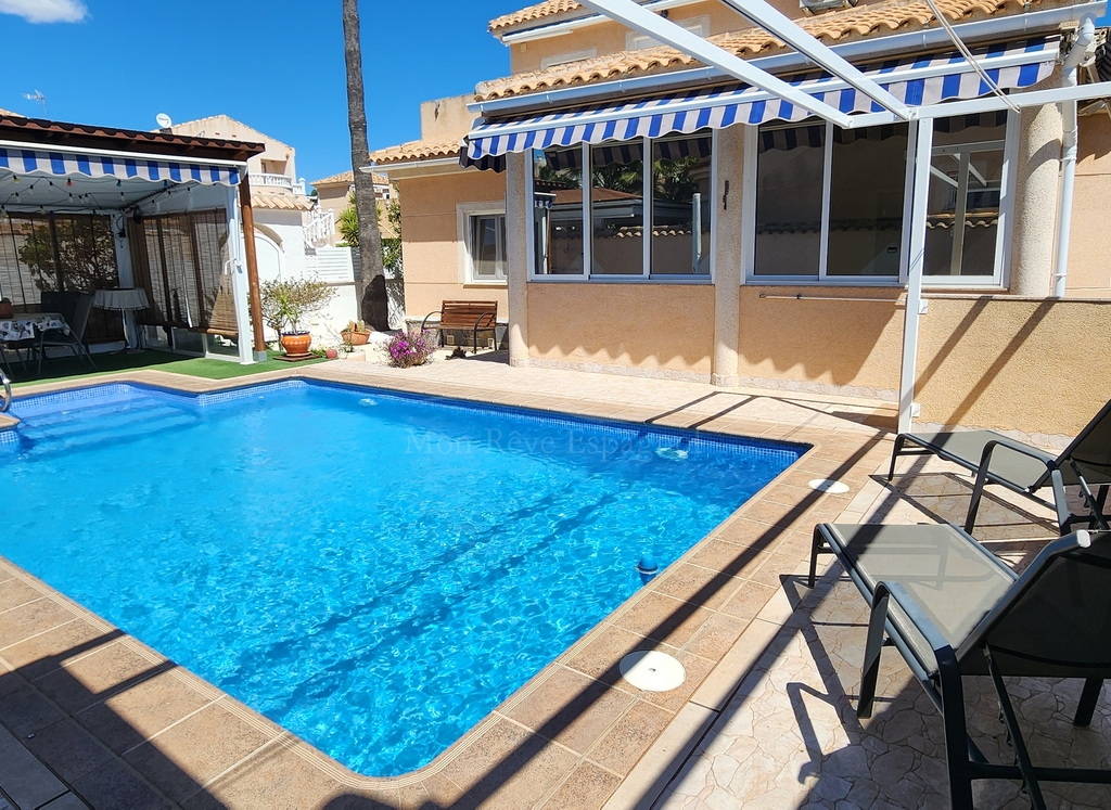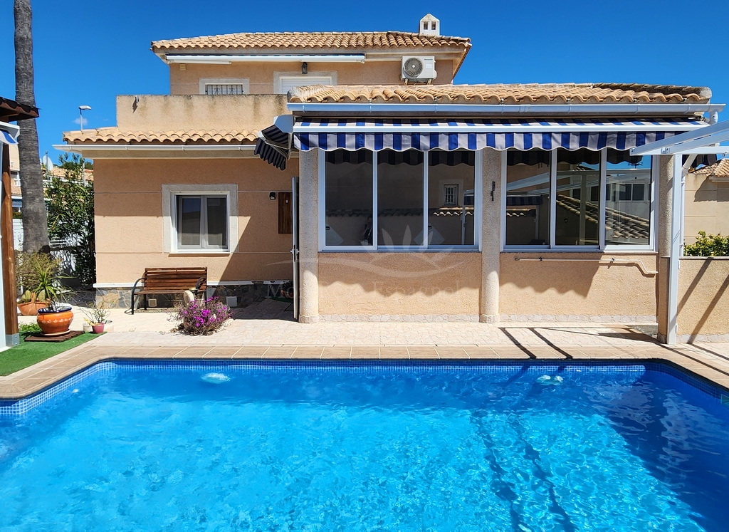 Chalet orientado al sur con vistas al mar, apartamento independiente y piscina privada en Pinar de Campoverde