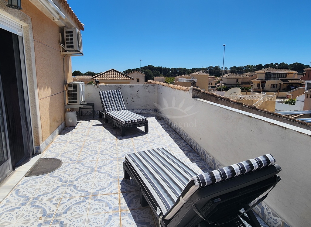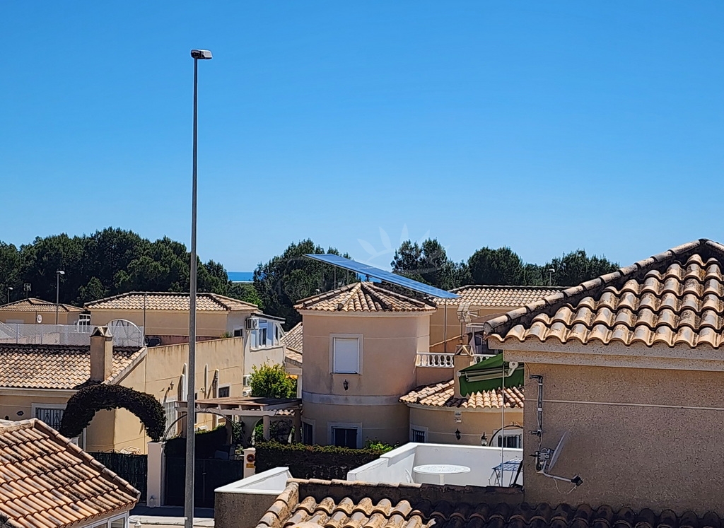 Descubre este encantador chalet orientado al sur, ubicado en una zona privilegiada de Pinar de Campoverde, a poca distancia de zonas verdes y del paraje natural del Río Seco. La propiedad ofrece agradables vistas al mar desde el solárium y se asienta sobre una parcela llana de aproximadamente 365 m², de fácil mantenimiento.